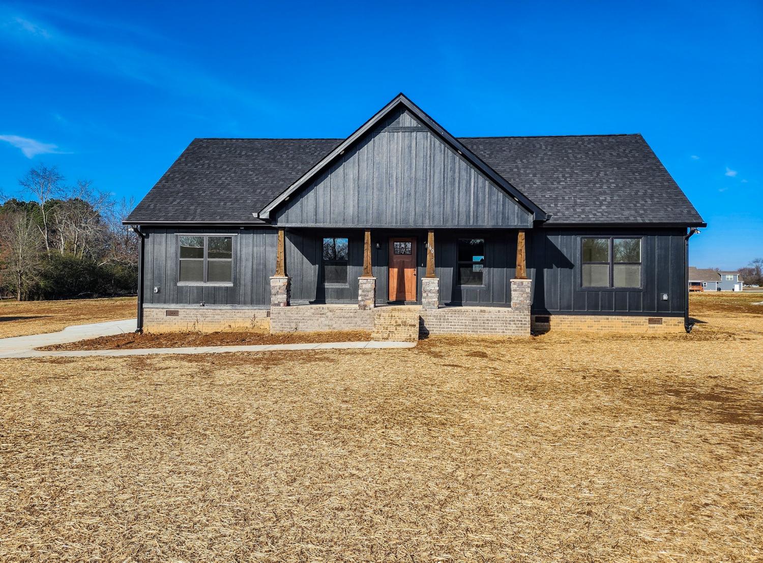 This stunning home showcases custom-built cabinets, quartz countertops, walk-in closets, custom light fixtures, and a luxurious primary bathroom featuring a separate soaking tub and tiled shower. The striking black Hardie board siding, covered front porch, and spacious back deck add to its curb appeal and outdoor enjoyment. Sitting on 1.322 acres, the property offers a huge, flat, and cleared backyard—perfect for kids, pets, or entertaining—giving the entire home a true custom-home feel. Nestled in a peaceful, newly developed neighborhood, the layout also includes a flexible 4th bedroom that can function as a bonus room, office, or playroom. Ideally situated between Winchester and Lynchburg, this home is just about a mile from Tim's Ford Lake and approximately 12 miles from Jack Daniel’s Distillery. Xfinity provides high-speed internet. Schedule your private tour today!