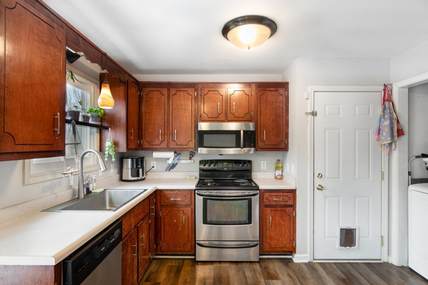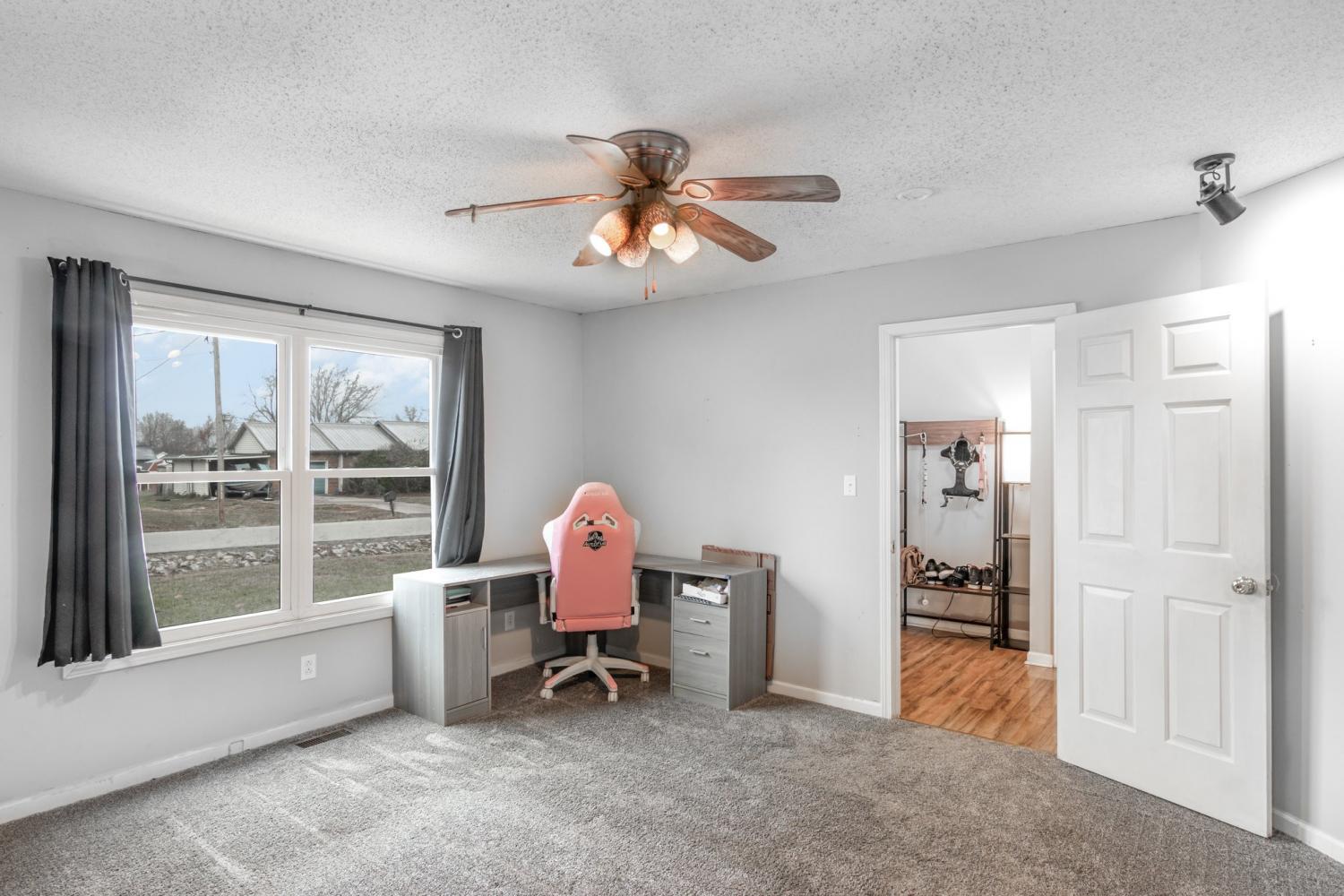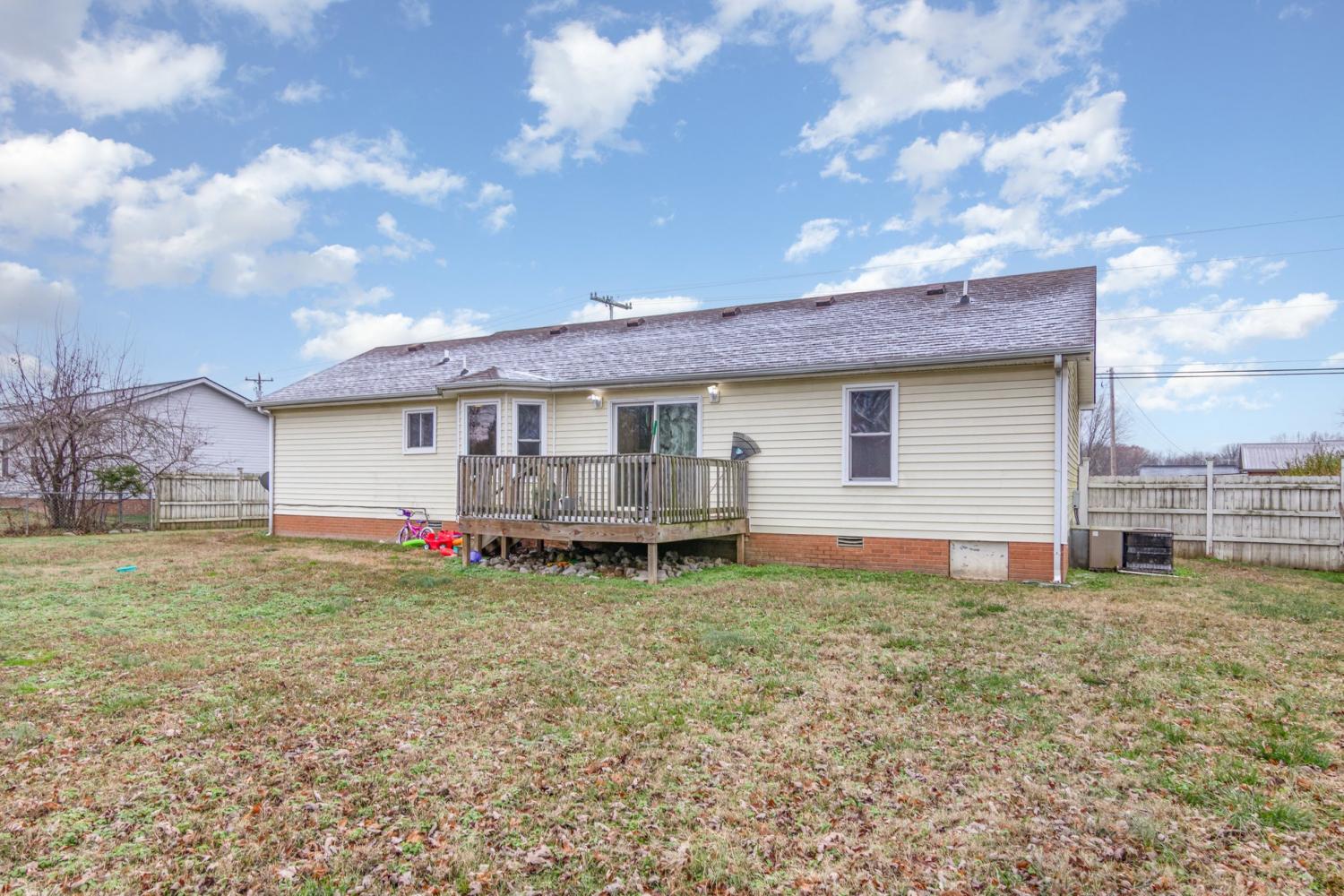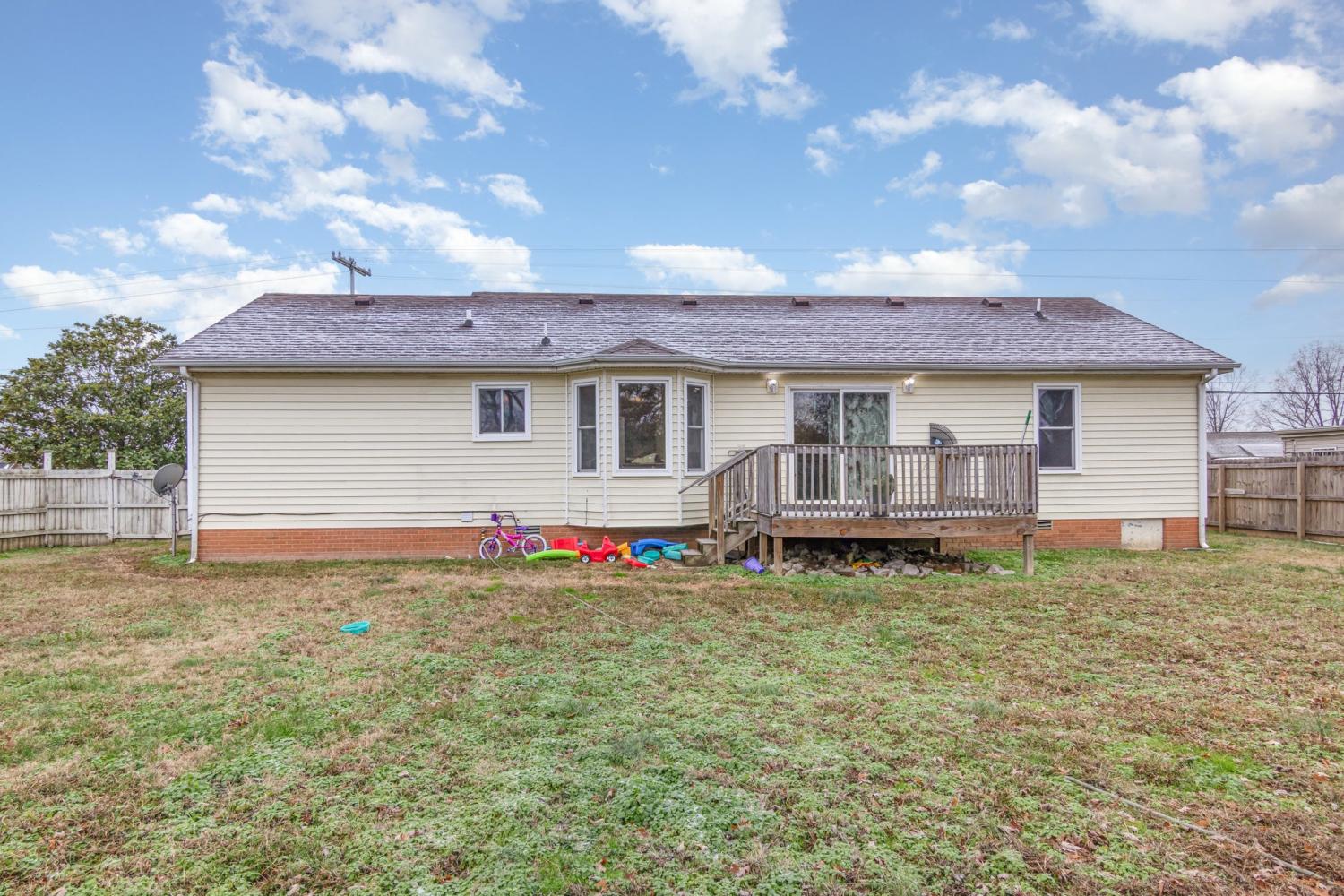 2.75% Assumable VA with Roam! Client is motivated to sell. VA loan is assumable. Welcome to this charming 3-bed, 2-bath ranch in Hand Estates! Built in 1993, this 1,210 sq ft home features a bright eat-in kitchen that opens to a spacious living area — perfect for gathering and entertaining. A cozy covered front porch welcomes you each morning. The fully fenced 0.32-acre backyard is ideal for pets, play or outdoor fun. Bonus: a secure in-ground tornado shelter located in the garage gives added peace of mind. With classic brick and vinyl siding, central air, and private, well-maintained outdoor spaces, this home offers both comfort and safety. Don’t miss the chance to make it yours!