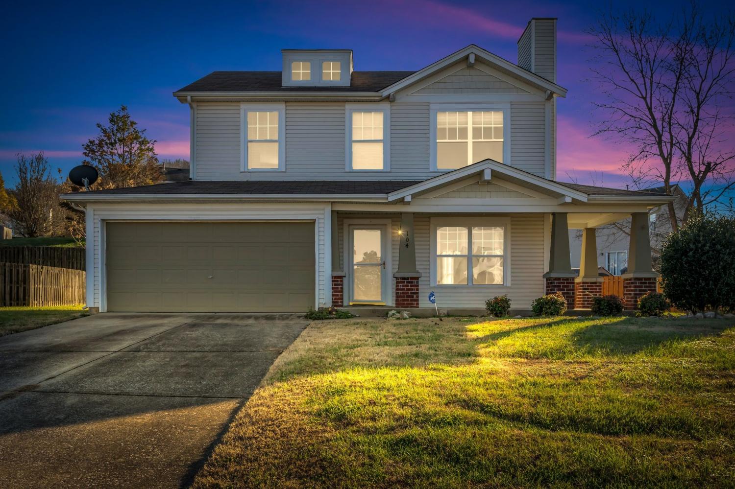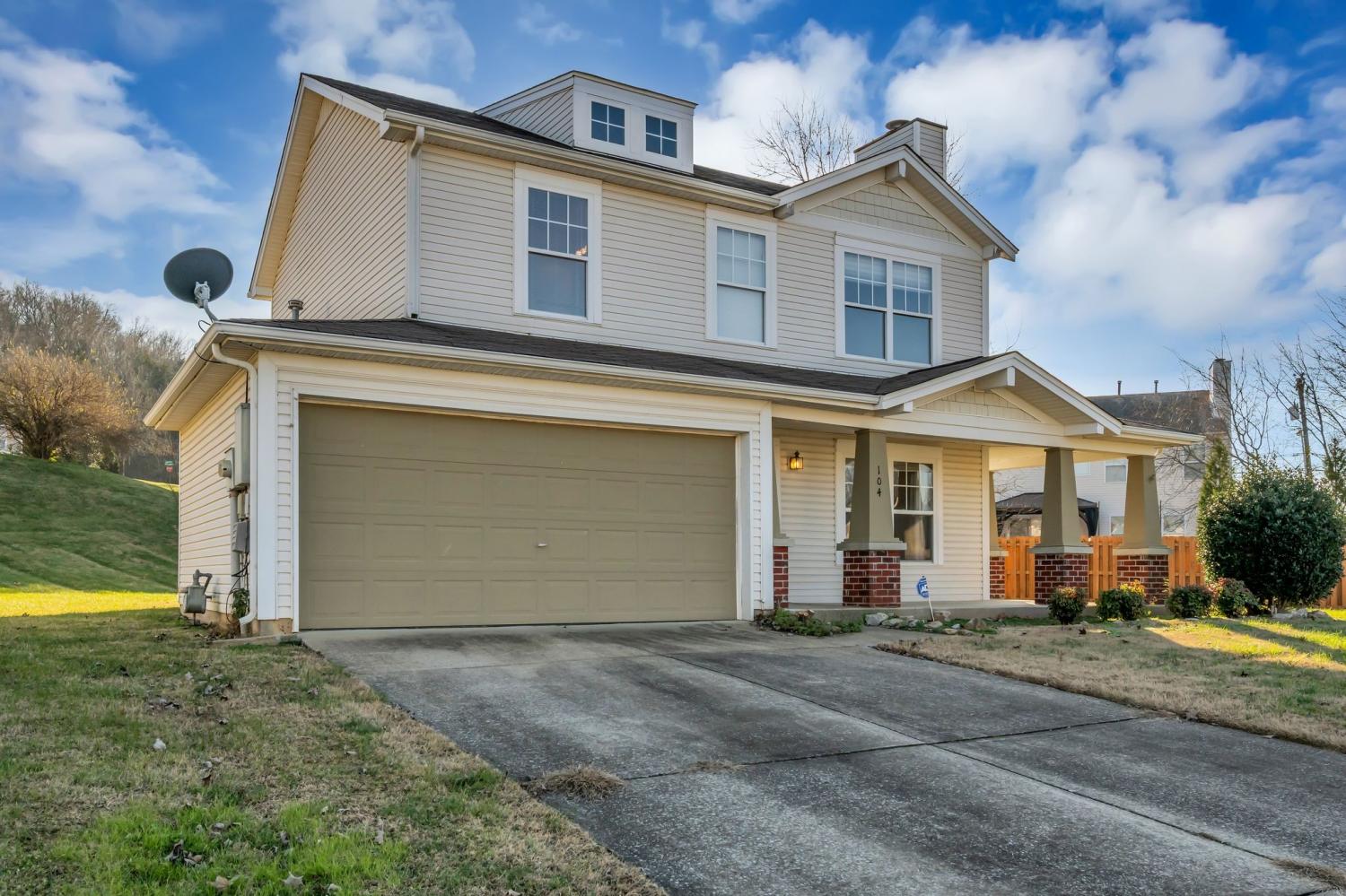 Adorable Craftsman in Lexington Pointe! Great lot in the cul-de-sac with the perfect yard for kids and pets! Living Room w/Fireplace* Designated Dining Space that is open to the Living Area and Kitchen* New Dishwasher was just installed* Half Bath on the Main Floor* Large Primary Suite offers Full Bath and walk-in closet* Second and Third Bedroom connected by Jack and Jill Bathroom* 2 Car Garage* Concrete Patio and Covered Front Porch* Gas Heat and Gas Water Heater* Maytag Washer and Dryer Remain* Well Maintained! Convenient Bellevue Location Right off I-40 at Exit 192