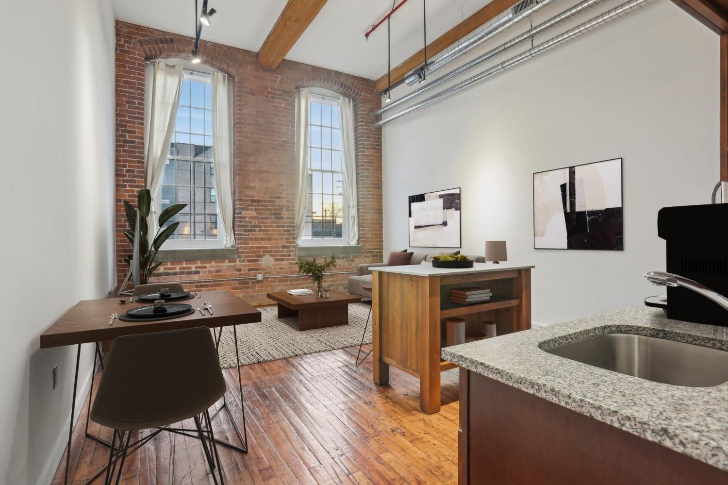 Experience the best of Nashville living in this stunning industrial loft located in the heart of historic Germantown. Blending urban character with modern comfort, this beautifully updated condo features an open-concept design with soaring ceilings, exposed brick walls, and original wood beams that showcase true loft-style charm. Sunlight pours through oversized windows, highlighting the rich hardwood floors and expansive living area- perfect for entertaining or relaxing at home. The sleek kitchen is equipped with stainless steel appliances, a spacious island, and ample counter space. The large bedroom includes an en-suite bath and in-unit laundry for ultimate convenience. Set within the sought-after Werthan Lofts, residents enjoy resort-inspired amenities including secure gated parking, two sparkling pools, a fitness center, yoga studio, bocce ball court, and an outdoor cabana with kitchen and lounge area. There’s even a dedicated dog run for your furry companion. Step outside your door and explore Germantown’s vibrant neighborhood - home to Nashville’s top restaurants, boutique shopping, local coffee spots, and entertainment venues- all within walking distance. With quick access to I-65 and downtown Nashville, this location truly offers the ultimate blend of historic charm and contemporary city living.