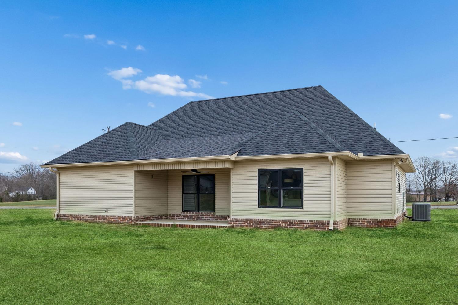 Brand new home on large lot in neighborhood with large lots which allows for privacy. The home features a brick front, black edged windows, 3/4 glass French front door, BI blinds in back door, large covered back porch, white cabinets with brushed gold handles and quartz tops, gorgeous designer brushed gold kitchen faucet, large 06x06 flex room for pantry or office space, top of the line 7" LVP flooring, mosaic tile baths and utility room flooring, large tile master shower with niche and penny tile floor, black bathroom cabinets with quartz tops, upscale lighting, large bonus room, pedestrian door to garage. Andersen single hung windows, interior door levers, farmhouse sink, quartz tops in baths, upgraded insulated garage door with pedestrian entry, linen closet in both baths, raised height bath cabinets, edgeless shower door, under cabinet lighting in kitchen. Quality construction.