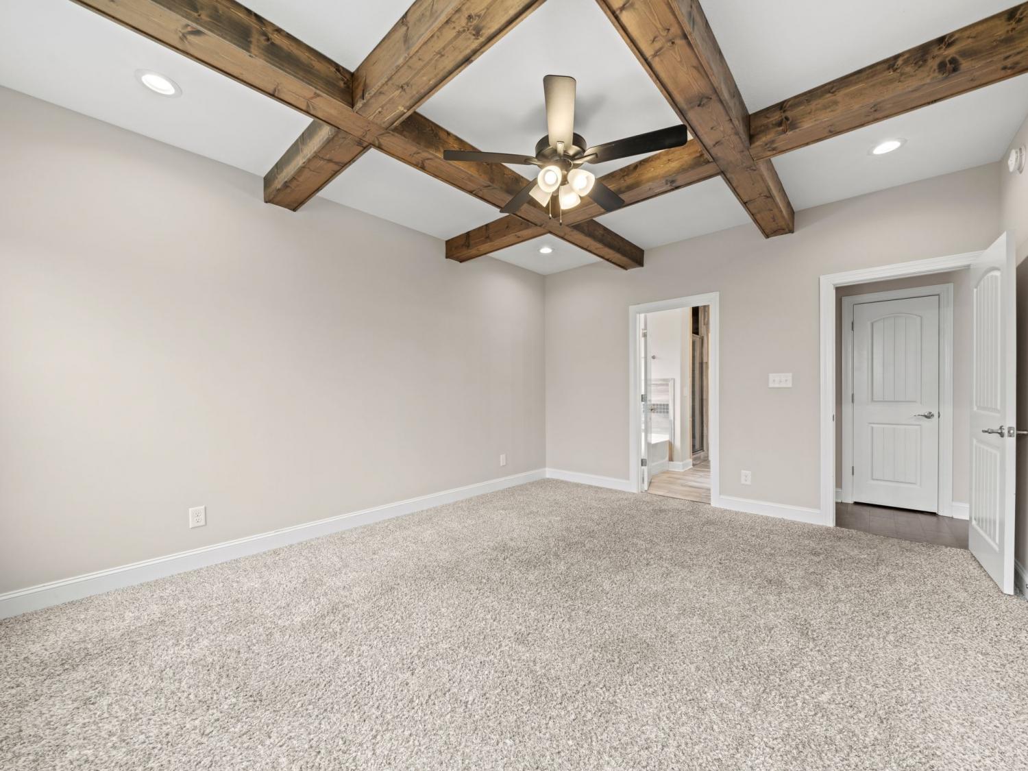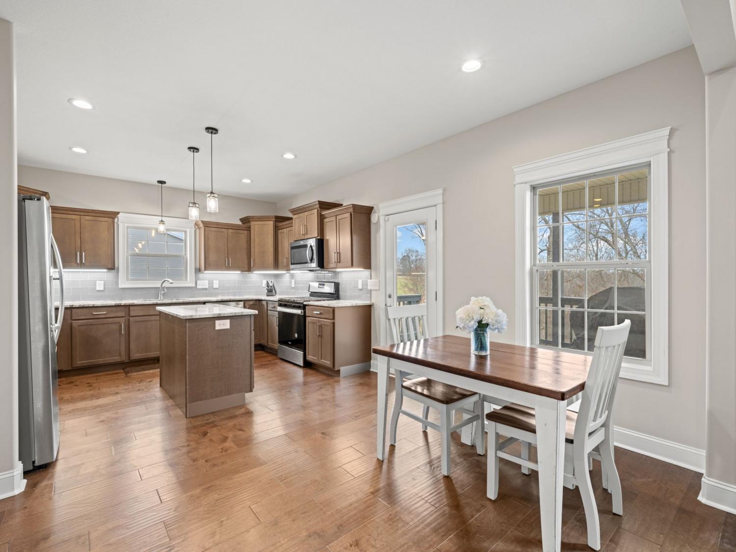 This 4-bedroom, 3.5-bath home stands out for its well-designed layout and generous space. With two full bedroom suites—one upstairs and one down—you get built-in flexibility, whether you need separation, privacy, or room for long-term guests. The great room makes an immediate impression with its high ceilings, wood beams, and stone fireplace. The kitchen ties it all together with granite countertops, a glass tile backsplash, under-cabinet lighting, and stainless-steel appliances—an easy place to cook, gather, and stay connected to the main living area. The front room, finished with barn doors, currently serves as an office but can easily shift back to a dining room when you want a dedicated gathering space. Upstairs, the oversized bonus room adds another layer of possibility—movie nights, fitness, hobbies, or a second hangout area. Step outside to the covered deck and take in the 1.5-acre lot, a rare find with room to play, plant, build, or simply enjoy some breathing room. With thoughtful builder upgrades, a 2-car garage, and a floor plan that supports everyday living and special moments alike, this home offers space, function, and a lot of potential—inside and out.