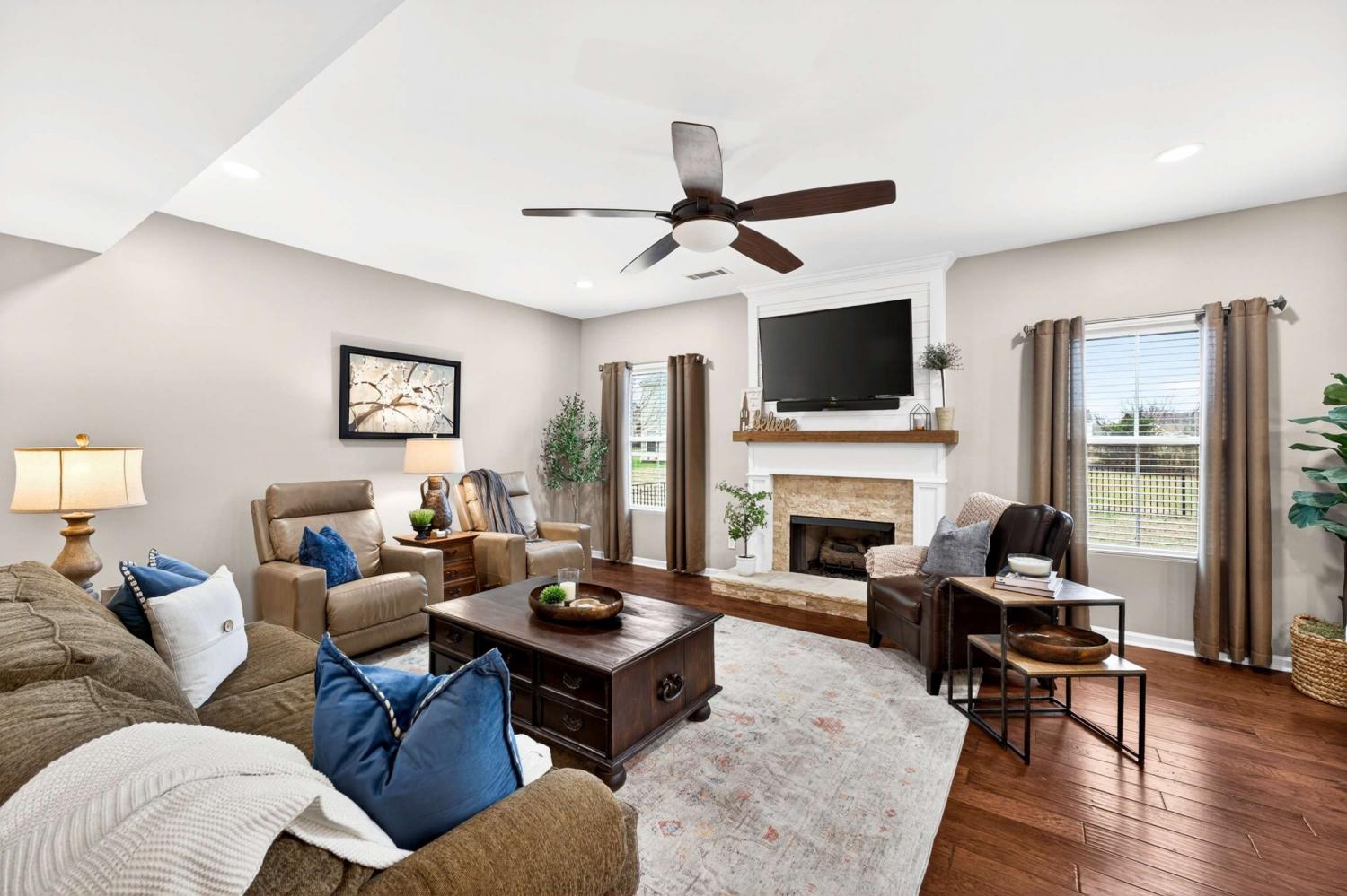 Discover comfort, style, and convenience in this gorgeous 3-bedroom, 2.5-bath Murfreesboro home tucked away at the end of a peaceful cul-de-sac, offering the private setting and modern design today’s buyers are searching for. A welcoming covered porch and inviting foyer lead into a bright open floor plan with beautiful hardwood floors, and a cozy fireplace that creates the perfect place to unwind.The spacious kitchen stands as the heart of the home with an island, granite counters, recessed lighting, sleek cabinetry, stainless steel appliances, and a bar - the perfect spot for meal prep, casual dining, or gathering. It flows seamlessly into the dining and living areas, creating a warm, welcoming atmosphere. The first floor also includes a dedicated office and convenient powder room. A convenient first-floor powder room adds functionality. Upstairs, the oversized primary suite feels like a retreat with two walk-in closets and a spa-like bath featuring a separate tub and shower with double vanities. Two additional large bedrooms plus a versatile bonus room provide flexible space for an office, media room, or guest accommodations. Step outside to a covered patio ideal for summer BBQs, quiet evenings, or outdoor dining under the stars, overlooking a fully fenced backyard designed for privacy and relaxation. Enjoy access to community amenities including a pool, playground, tennis club, and more. Nestled in a cul-de-sac that offers a pleasant country feel while remaining close to top-rated Murfreesboro schools, shopping, dining, medical facilities, and major roads for an easy commute, this home delivers unmatched convenience and livability. Schedule your showing and experience why this Murfreesboro gem stands out!