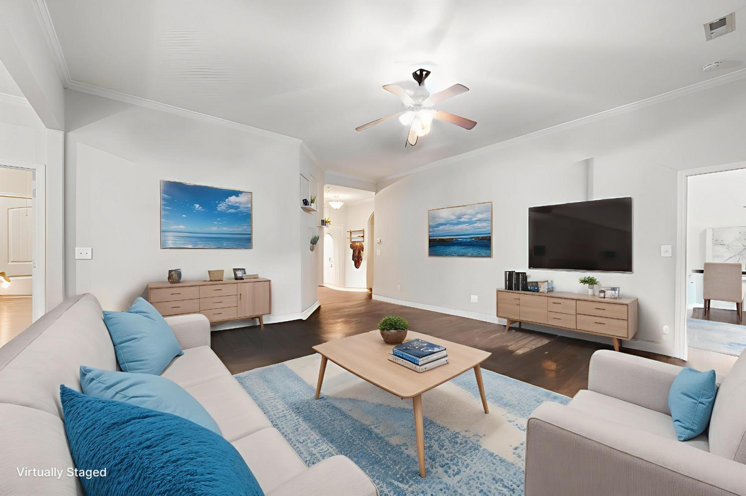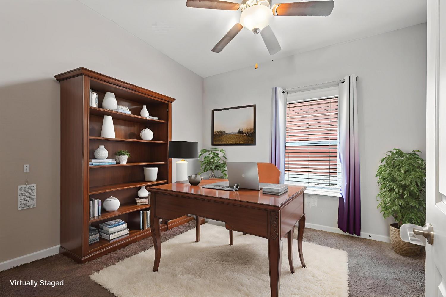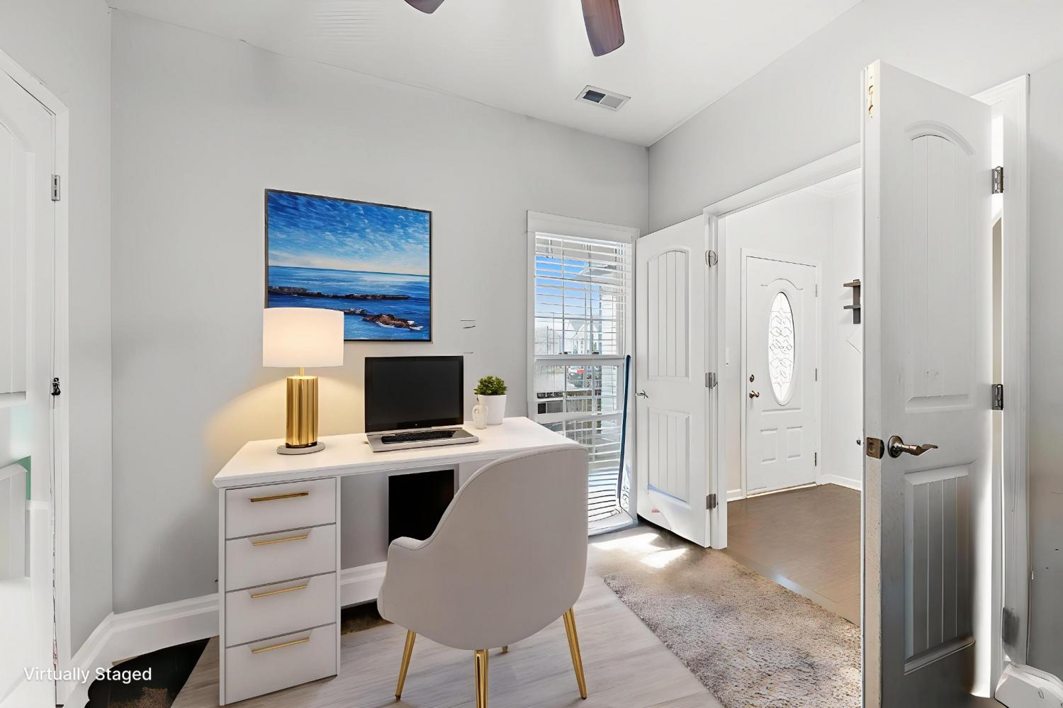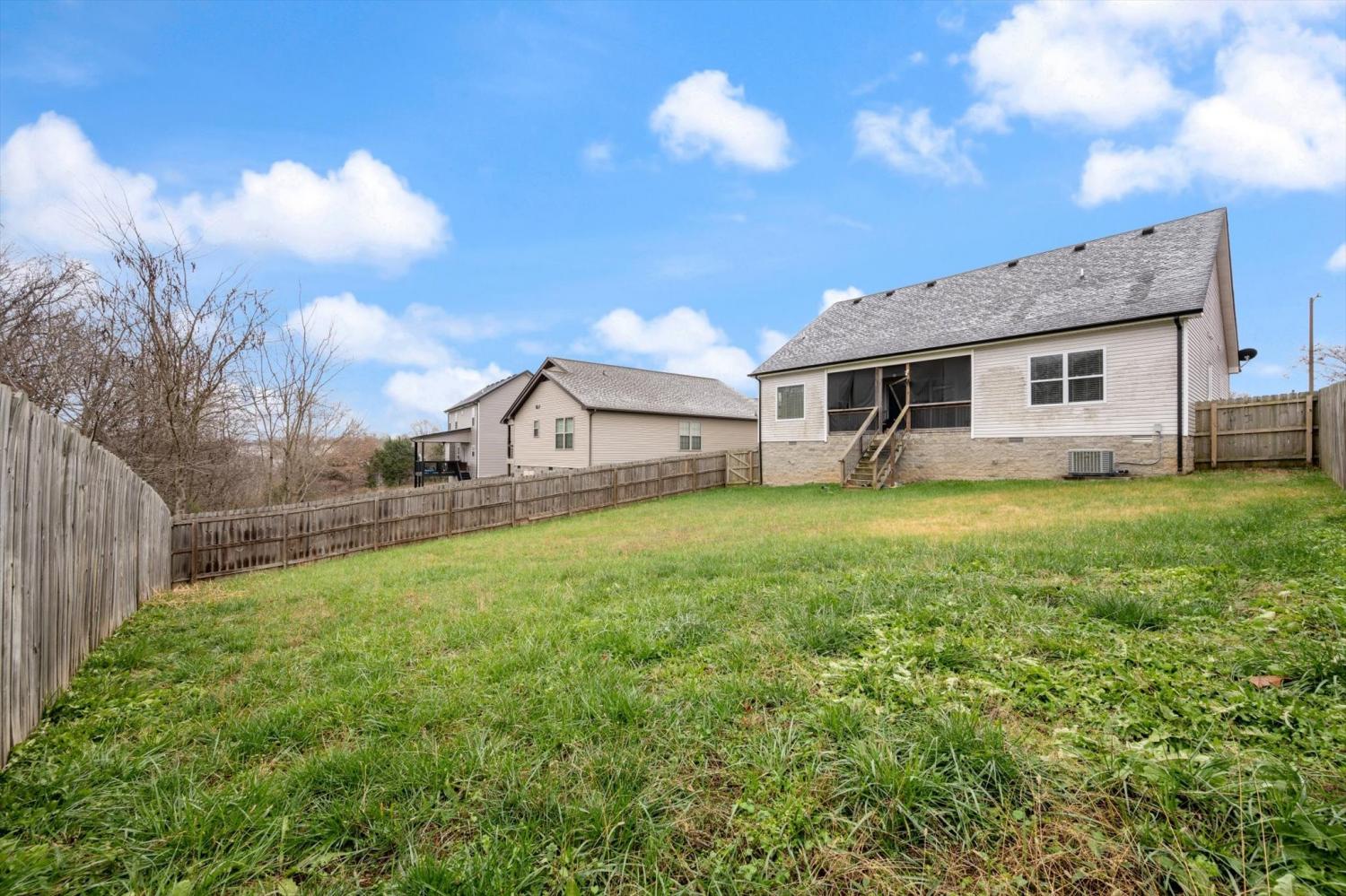 Perfectly situated near 101st Airborne Division Parkway in Clarksville, TN, this charming one-level home offers 4 bedrooms and 2 full bathrooms. The primary ensuite impresses with high ceilings, a soaking tub, and a separate shower, while all bedrooms feature ceiling fans for added comfort. A dedicated office with double doors provides a private workspace, and the kitchen with pantry and island opens to the living room, seamlessly connecting to the dining area. Outside, a fenced backyard provides an ideal space for entertaining or relaxing. Schedule a tour today to see this wonderful home for yourself. Discounted rate options and no lender fee future refinancing may be available for qualified buyers of this home. **Current interest rate may be assumable** Some of the pictures are virtually staged.