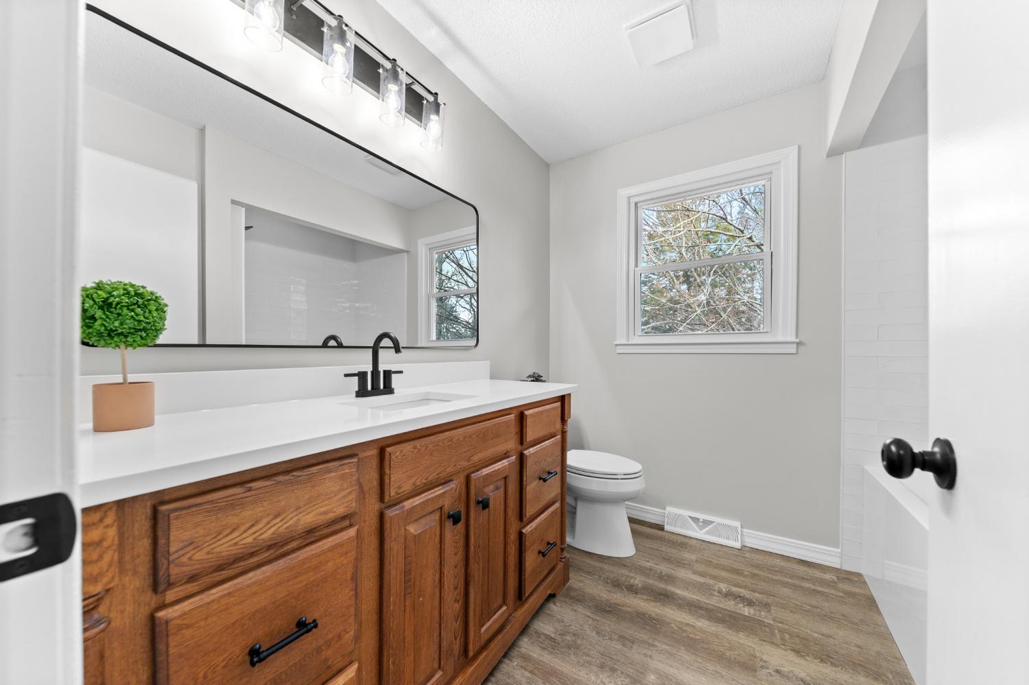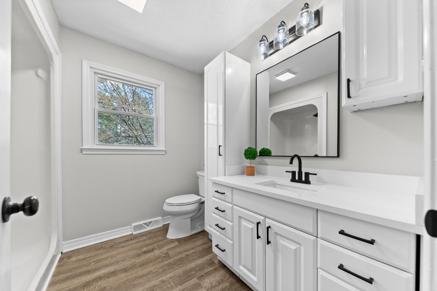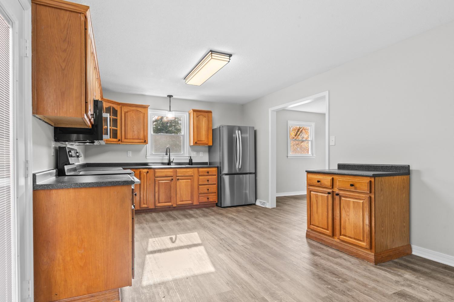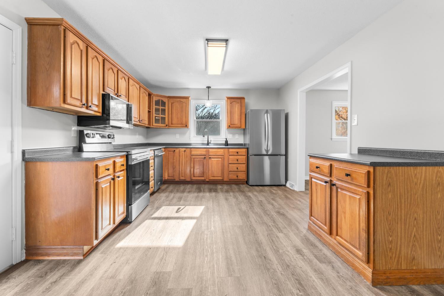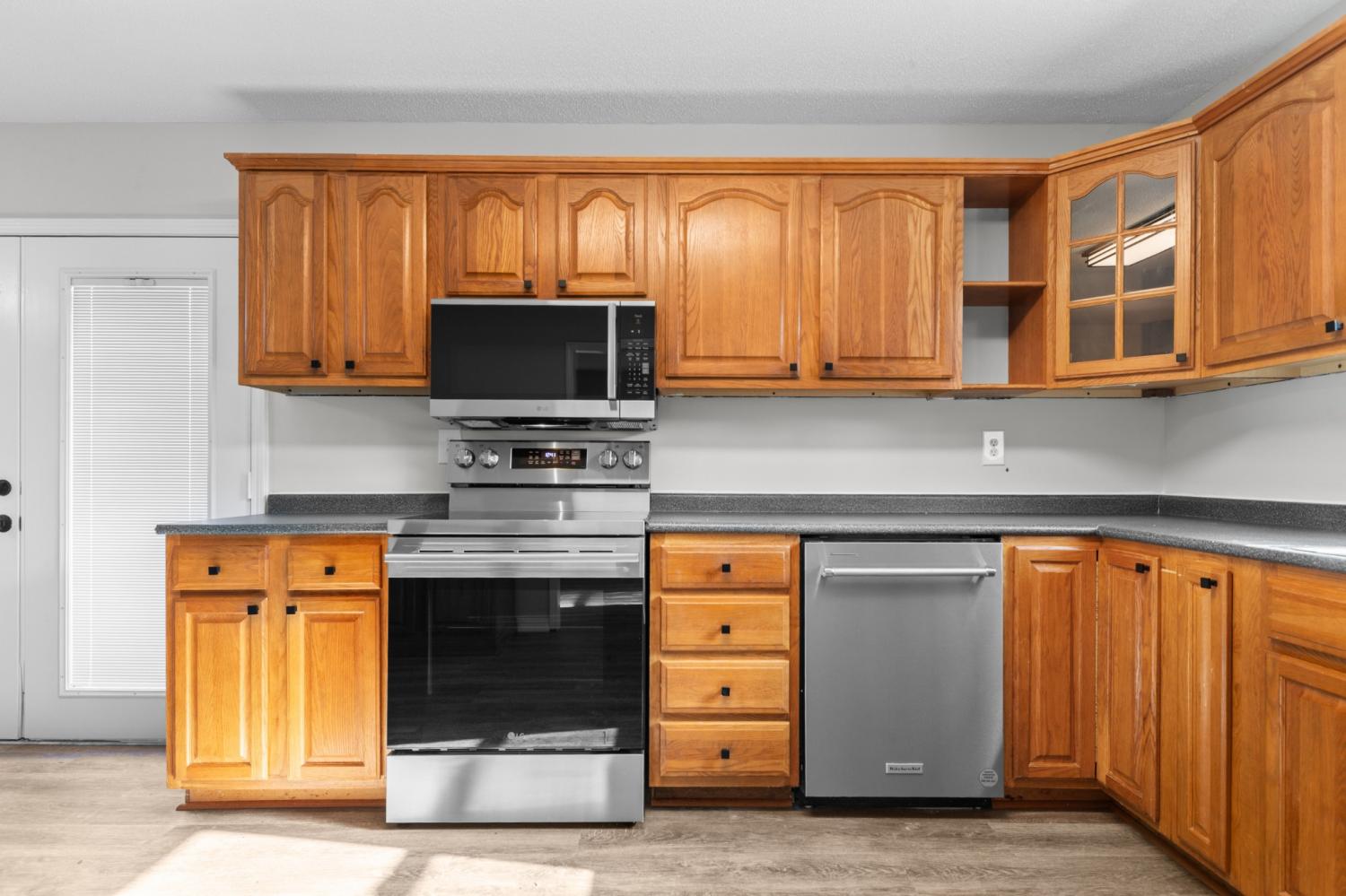 Newly remodeled home! Upstairs you have 3 beds, 2 full baths - 1 with new tub w/tile surround and 1 with shower, quartz countertops, new faucets & fixtures, large living room and kitchen with dining area with all new stainless steel appliances; downstairs you have 1 oversized bedroom with wood fireplace, 1 bath with tub, new faucets & fixtures, large bonus room, a grand utility room and tons of storage! Laminate flooring, new fixtures, new paint throughout, new windows. HVAC has been serviced, safe room located under the front porch, 1-car garage downstairs, large yard, concrete driveway, all of this is located in a very desirable neighborhood! You really can't go wrong with this home! Call today for a private tour!