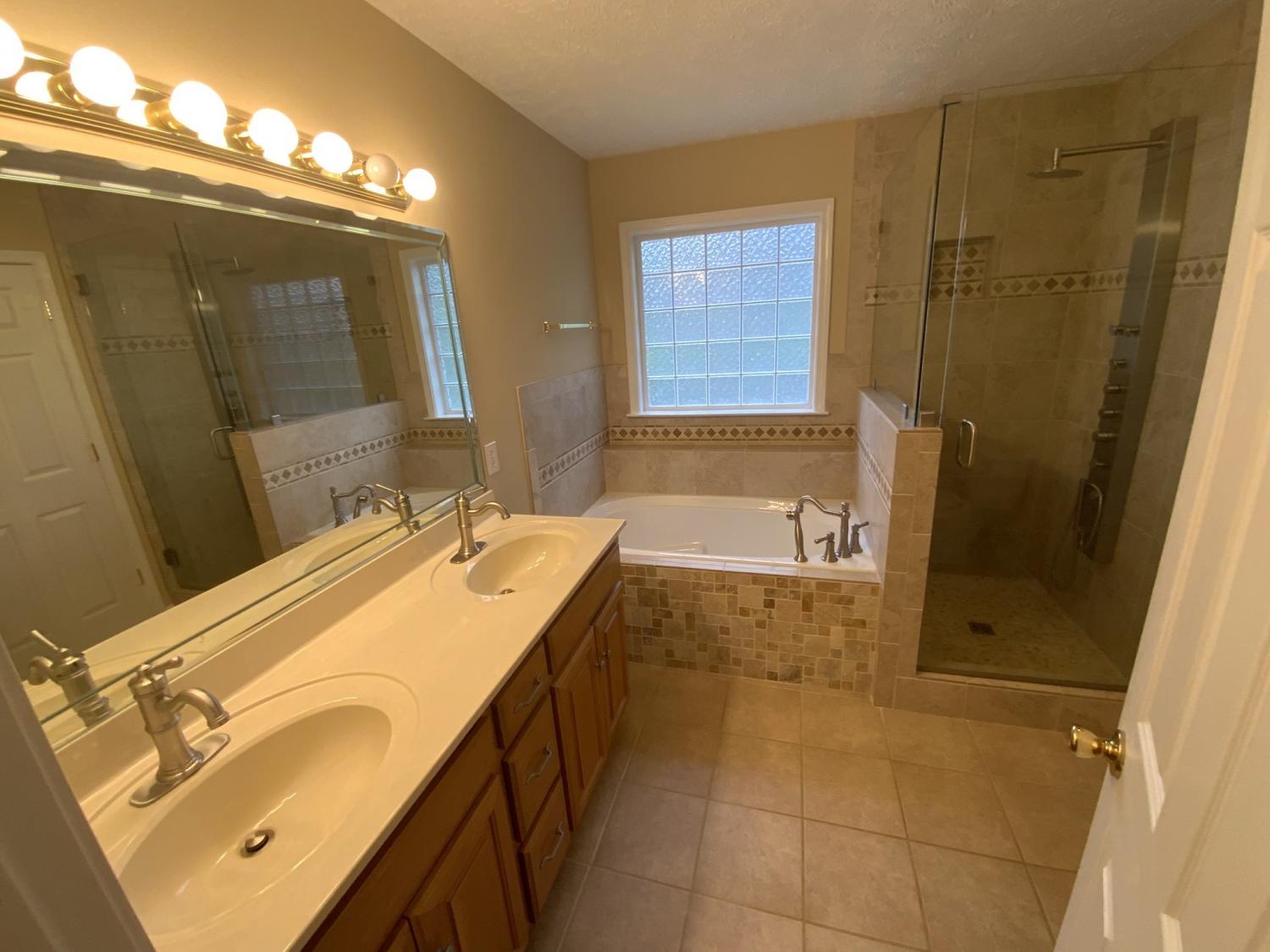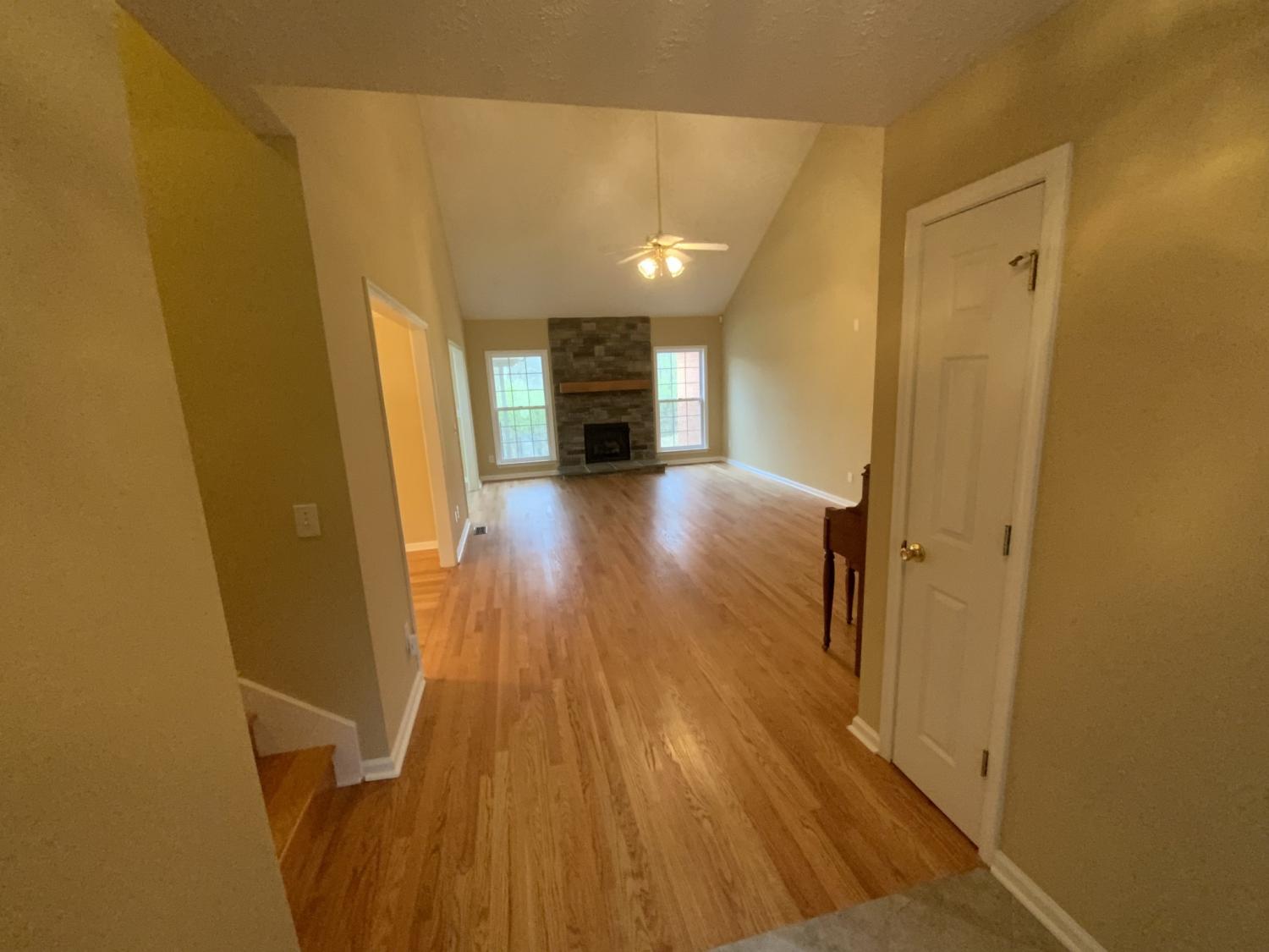 Well-maintained brick home with modern updates and a private setting. The main living area features hardwood floors, vaulted ceilings, and a stone fireplace. The kitchen was updated in 2010 and includes granite countertops, newer appliances, under-cabinet lighting, and a whole-house water filter. The spacious primary suite offers a renovated bath with a jetted tub and tiled walk-in shower. Additional features include a Navien tankless water heater, HVAC replaced in 2020, roof replaced in 2012, and a one-year-old dishwasher. Enjoy the covered back deck overlooking a fenced backyard and wooded view. Two-car garage with Bluetooth app access and an extra-large crawl space for storage. No pets.