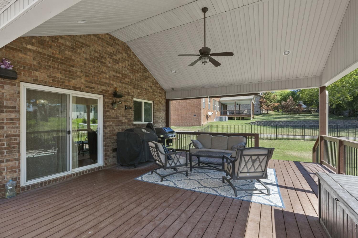 Incredible all-brick home in the highly sought-after Hunt Club community offering 5 bedrooms, a 3-car garage, and a beautiful fenced, level backyard with an expansive 19x20 covered deck plus a 16x14 uncovered deck—perfect for entertaining and everyday living. The huge primary suite is located on the main level and features a spacious walk-in closet. All guest bedrooms are generously sized with exceptional closet space and storage throughout. The open kitchen flows into the den and showcases granite countertops, a large island, stainless steel appliances, gas cooktop, tile backsplash, and a massive pantry. The living area features a cozy gas fireplace with logs. You’ll love the hardwood and tile floors, surround sound, newer roof and HVAC units, and true move-in-ready condition. Family- and pet-friendly neighborhood with walking trails and a community pool. Zoned for Jack Anderson Elementary and Station Camp schools. Minutes to the lake and lots of boating access. Convenient to shopping, dining, schools, and just minutes to Nashville. A rare opportunity in one of Gallatin’s most desirable communities!