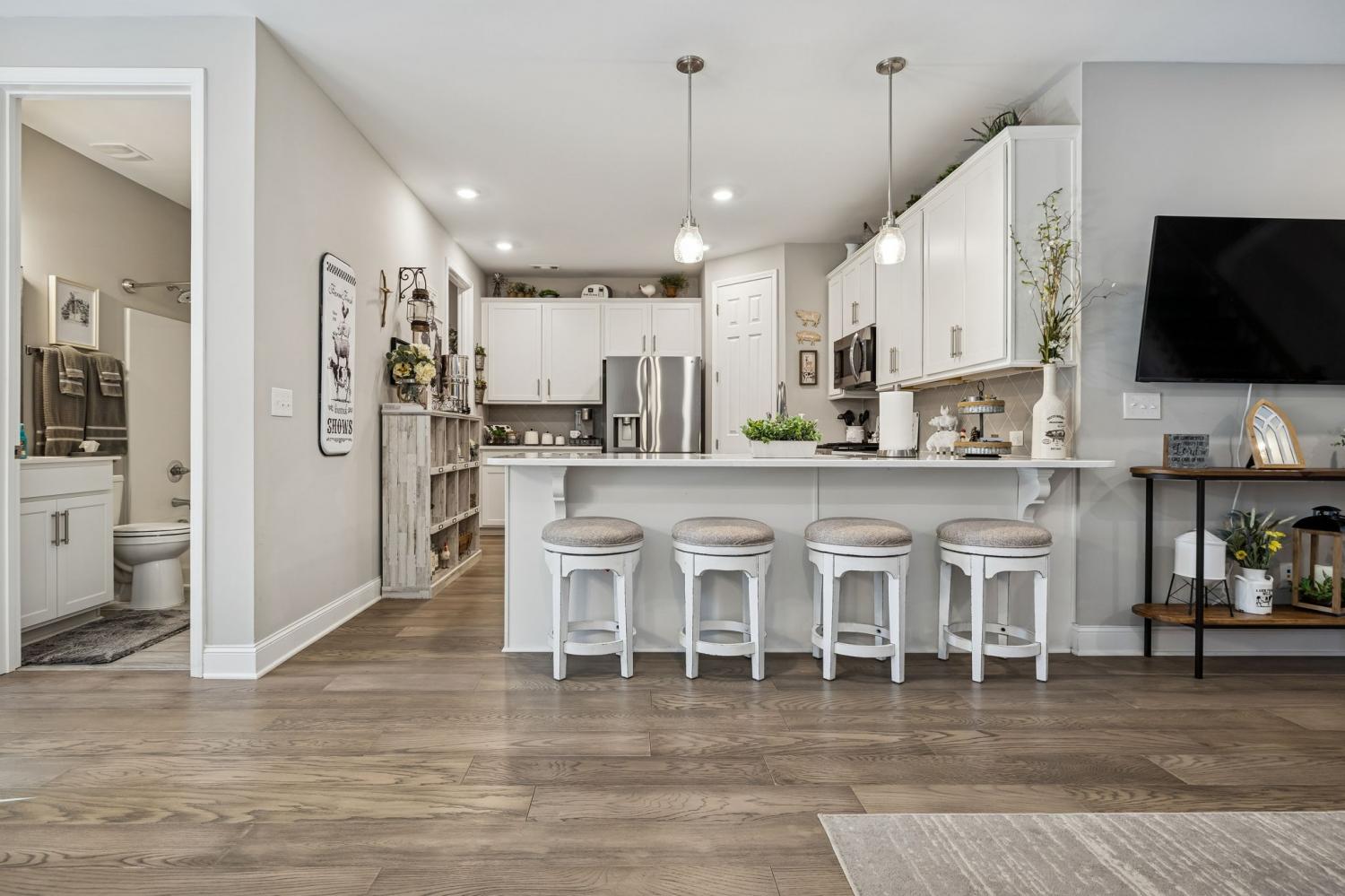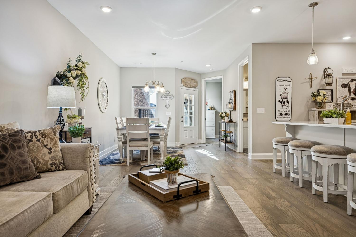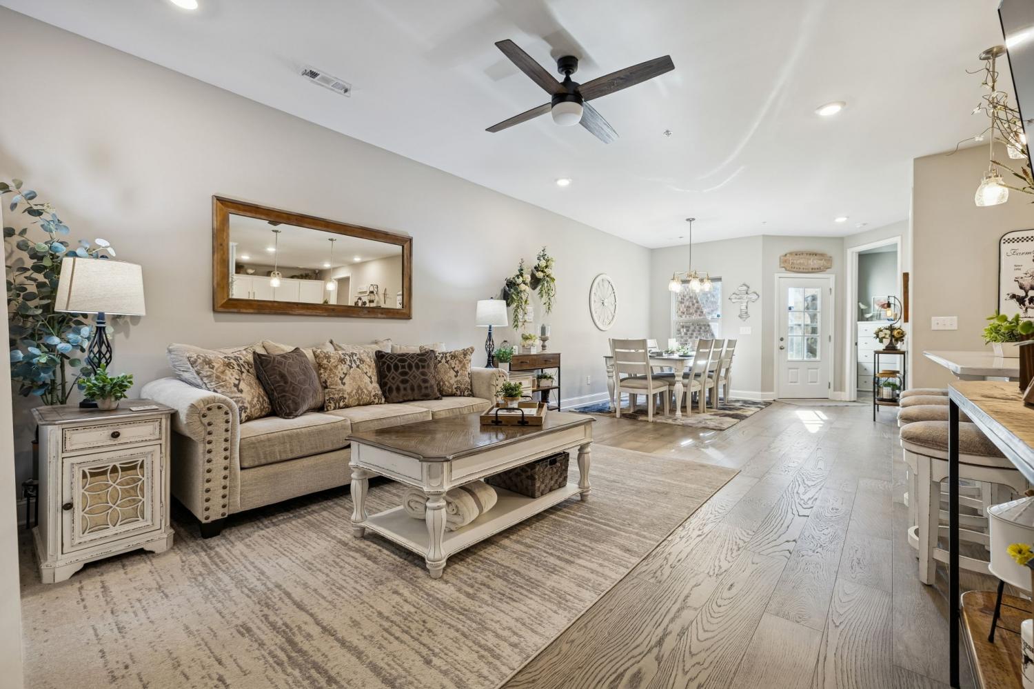 Welcome Home to 308 Buckner Circle, a beautifully maintained home in the sought-after 55+ Groves Reserve community in Mt. Juliet. This charming residence offers easy, low-maintenance living with a thoughtful layout that includes two main-level bedrooms and an upstairs flex/guest space perfect for hobbies, visitors, or extra storage. The private back patio and 2-car garage add extra convenience. The bright, modern kitchen stands out with white cabinetry, soft-close doors and drawers, upgraded quartz countertops, under-cabinet lighting, a large gas range, and a top-tier appliance package. Ample workspace and a seamless flow to the dining and living areas make everyday living and entertaining effortless. Throughout the home, upgraded lighting enhances the warm, inviting feel. Just off the main living space, the inviting Florida room/den offers a peaceful, private view—ideal for morning coffee, reading, or simply relaxing. The primary suite provides a calm retreat with great natural light and convenient access to the main living areas, while the second bedroom works perfectly for guests or a home office. A two-car garage, low-maintenance exterior, and HOA-managed lawn care add to the convenience. Residents love Groves Reserve for its quiet, friendly atmosphere and unbeatable location. Shopping, dining, medical services, parks, and major roads are all just minutes away, making this one of Mt. Juliet’s most desirable active-adult neighborhoods. 308 Buckner Circle offers comfort, connection, thoughtful upgrades, and an easy, relaxed lifestyle…ready to welcome its next owners!