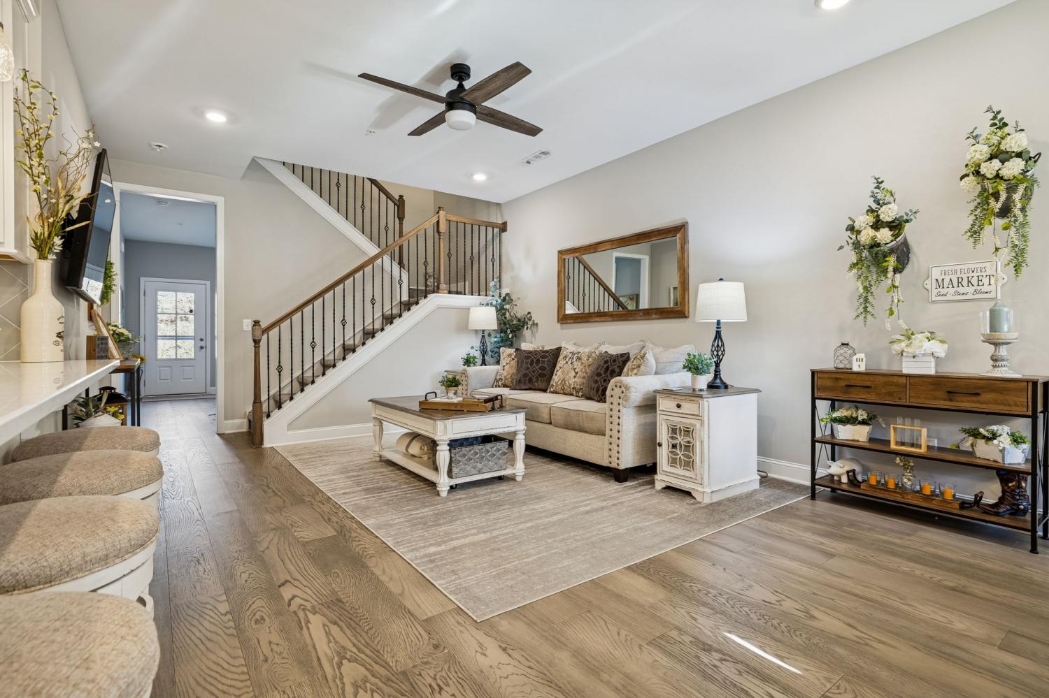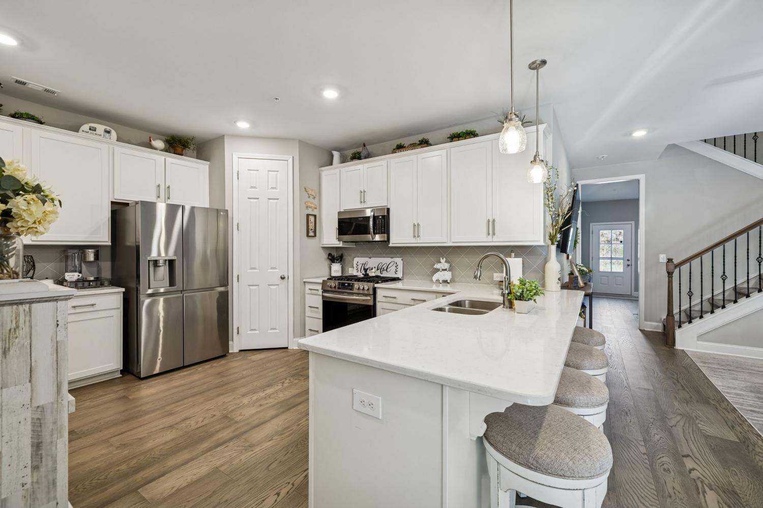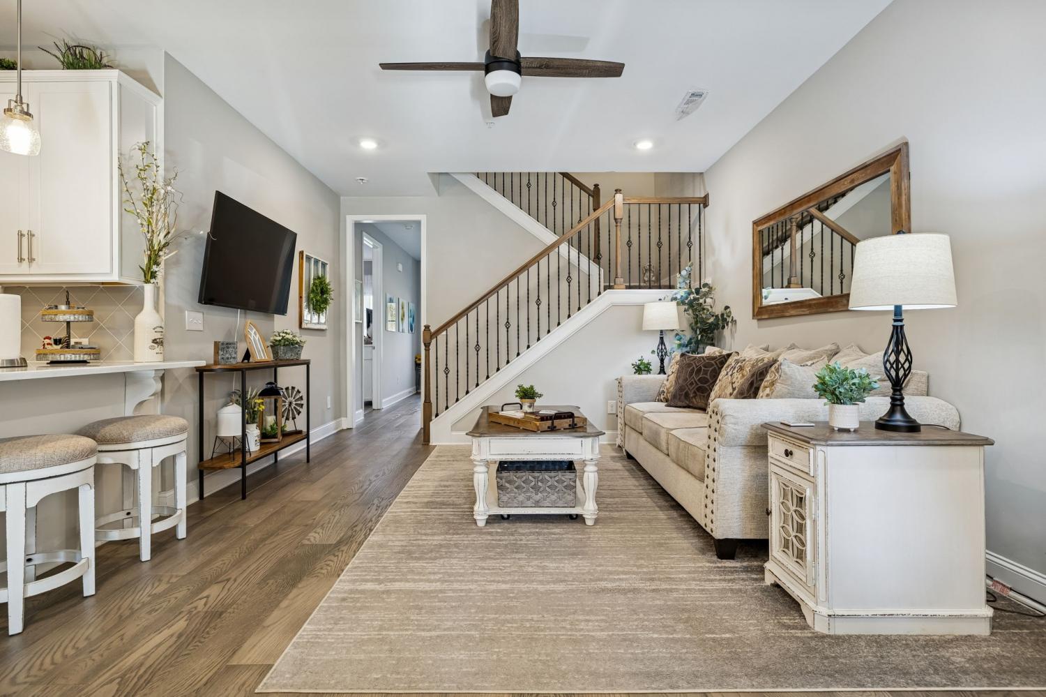Welcome Home to 308 Buckner Circle, a beautifully maintained home in the sought-after 55+ Groves Reserve community in Mt. Juliet. This charming residence offers easy, low-maintenance living with a thoughtful layout that includes two main-level bedrooms and an upstairs flex/guest space perfect for hobbies, visitors, or extra storage. The private back patio and 2-car garage add extra convenience. The bright, modern kitchen stands out with white cabinetry, soft-close doors and drawers, upgraded quartz countertops, under-cabinet lighting, a large gas range, and a top-tier appliance package. Ample workspace and a seamless flow to the dining and living areas make everyday living and entertaining effortless. Throughout the home, upgraded lighting enhances the warm, inviting feel. Just off the main living space, the inviting Florida room/den offers a peaceful, private view—ideal for morning coffee, reading, or simply relaxing. The primary suite provides a calm retreat with great natural light and convenient access to the main living areas, while the second bedroom works perfectly for guests or a home office. A two-car garage, low-maintenance exterior, and HOA-managed lawn care add to the convenience. Residents love Groves Reserve for its quiet, friendly atmosphere and unbeatable location. Shopping, dining, medical services, parks, and major roads are all just minutes away, making this one of Mt. Juliet’s most desirable active-adult neighborhoods. 308 Buckner Circle offers comfort, connection, thoughtful upgrades, and an easy, relaxed lifestyle…ready to welcome its next owners!