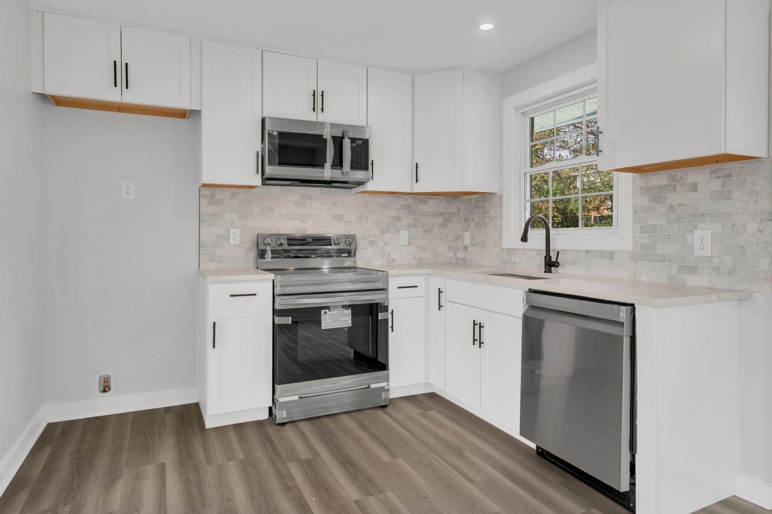 Welcome to this beautifully renovated one-level home just minutes from the heart of Downtown Nashville! Every detail has been thoughtfully upgraded by a highly experienced general contractor using premium materials and a modern design that you’ll love from the moment you walk in. Step inside to find brand-new luxury hardwood floors flowing throughout the home, complemented by fresh paint, new lighting, and stylish ceiling fans in every room. The chef-inspired kitchen features quartzite countertops, a ceramic tile backsplash, and sleek new cabinetry that blend function and beauty perfectly. Both full bathrooms have been completely remodeled with high-end ceramic tile floors, elegant wall tile finishes, and modern fixtures for a spa-like feel. Enjoy outdoor living in the wide, freshly seeded backyard, perfect for gatherings, pets, or simply relaxing. The front yard has also been newly landscaped, giving the home outstanding curb appeal. Location is everything—and this one truly stands out! Situated in a prime area only 10 minutes from Downtown Nashville, this home also sits just a street away from a beautiful walking park, ideal for morning jogs or weekend strolls. This is a rare opportunity to own a move-in-ready, fully updated home in one of Nashville’s fastest-growing areas. Schedule your showing today—this one won’t last long!