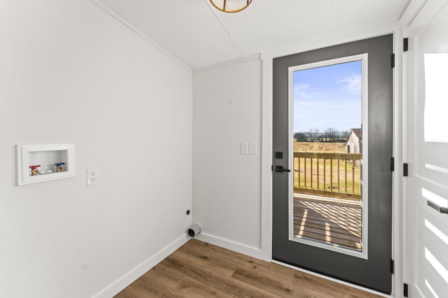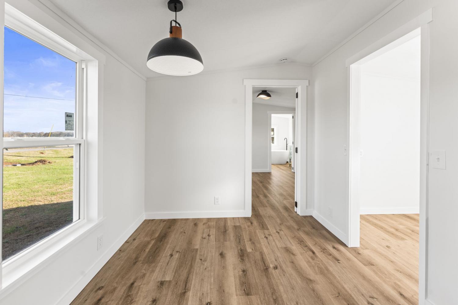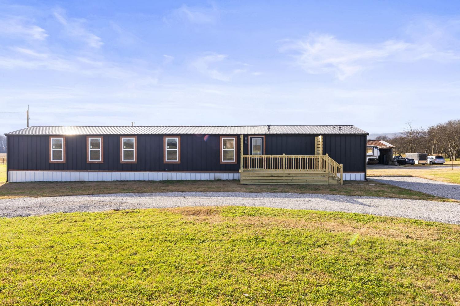 Completely re-done (EVERYTHING IS NEW!) [roof, siding, HVAC (efficient heat pump!!) windows, doors, floors, drywall, paint, flooring, trim, plumbing/elect fixtures, water heater, appliances etc!] Modern-farmhouse style, manufactured home on foundation (skirting over foundation) - wonderful location with beautiful views and desirable open and split floorplan (primary suite on one end, 2 bedrooms and bathroom at other end) Feels larger than the sq footage. Barn does not convey and is being remodeled to match style of house (black with nice wood accents) Buyer to verify anything important (schools, measurements, etc) Owner-agent. Priced to sell! You can't find anything nicer at this price. Must see to appreciate! Tax card does not reflect minor division. Property is .501 +/- acres (see survey in photos). Room to add shop in area between driveways!