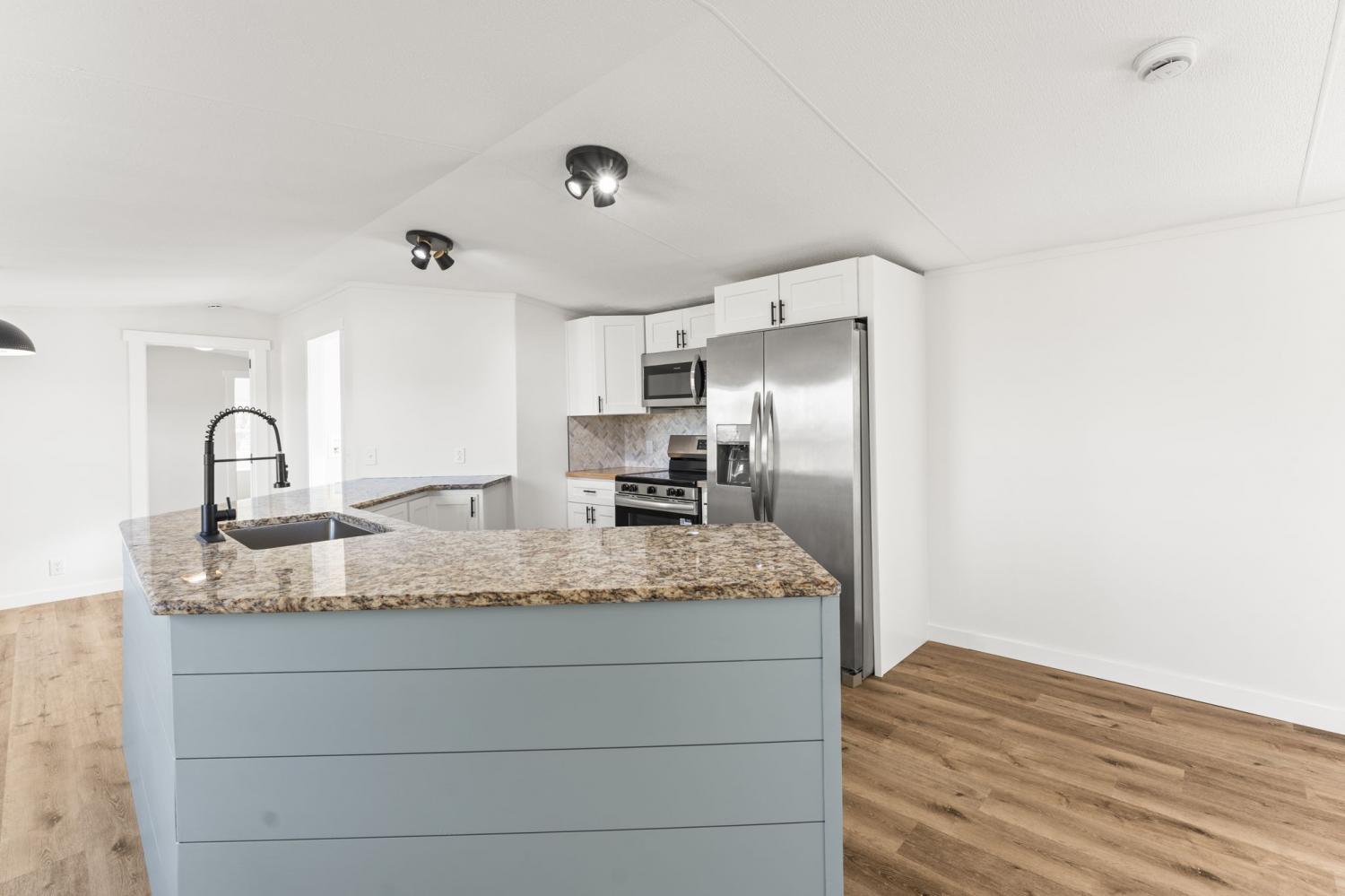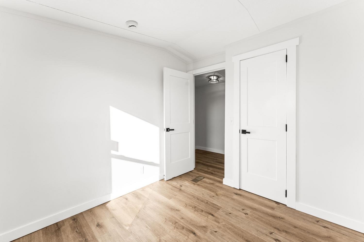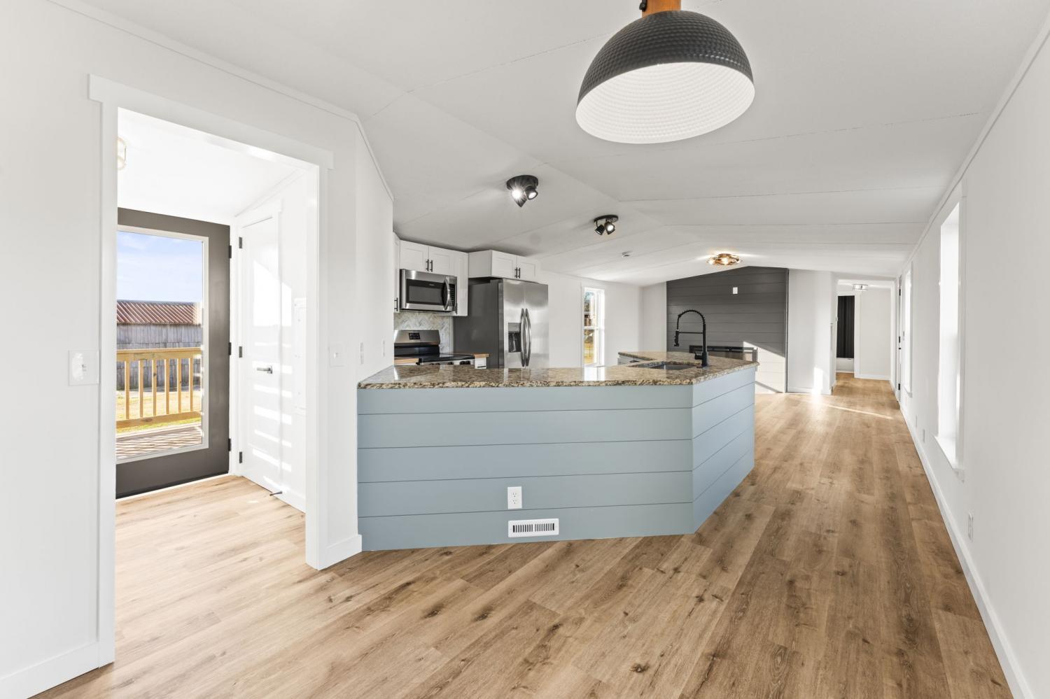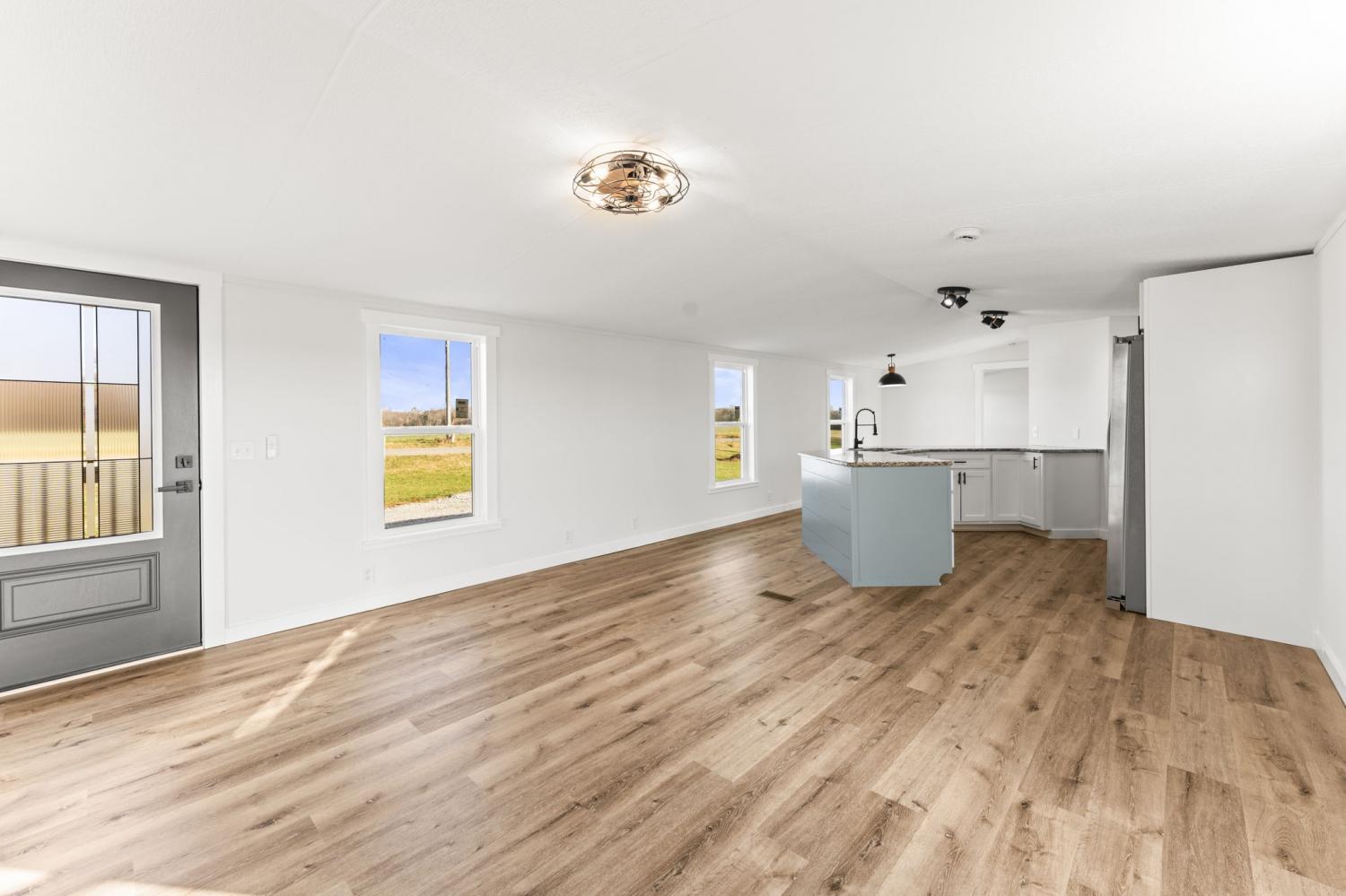 Completely re-done (EVERYTHING IS NEW!) [roof, siding, HVAC (efficient heat pump!!) windows, doors, floors, drywall, paint, flooring, trim, plumbing/elect fixtures, water heater, appliances etc!] Modern-farmhouse style, manufactured home on foundation (skirting over foundation) - wonderful location with beautiful views and desirable open and split floorplan (primary suite on one end, 2 bedrooms and bathroom at other end) Feels larger than the sq footage. Barn does not convey and is being remodeled to match style of house (black with nice wood accents) Buyer to verify anything important (schools, measurements, etc) Owner-agent. Priced to sell! You can't find anything nicer at this price. Must see to appreciate! Tax card does not reflect minor division. Property is .501 +/- acres (see survey in photos). Room to add shop in area between driveways!