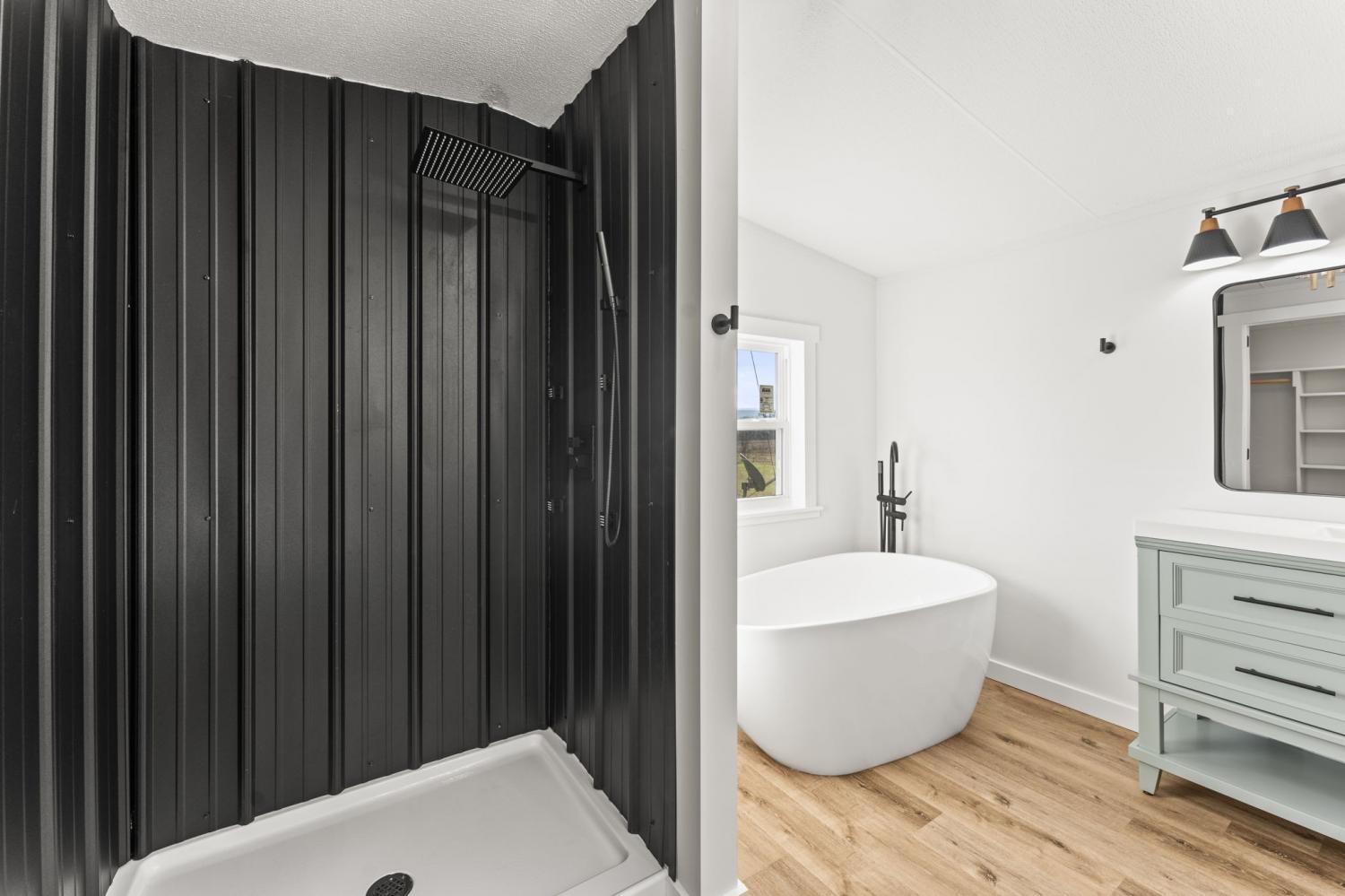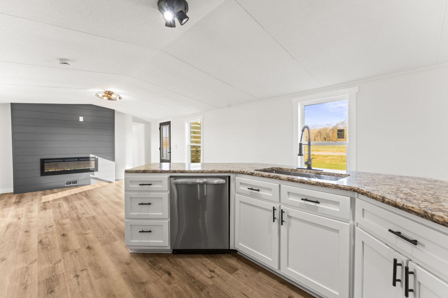 Completely re-done (EVERYTHING IS NEW!) [roof, siding, HVAC (efficient heat pump!!) windows, doors, floors, drywall, paint, flooring, trim, plumbing/elect fixtures, water heater, appliances etc!] Modern-farmhouse style, manufactured home on foundation (skirting over foundation) - wonderful location with beautiful views and desirable open and split floorplan (primary suite on one end, 2 bedrooms and bathroom at other end) Feels larger than the sq footage. Barn does not convey and is being remodeled to match style of house (black with nice wood accents) Buyer to verify anything important (schools, measurements, etc) Owner-agent. Priced to sell! You can't find anything nicer at this price. Must see to appreciate! Tax card does not reflect minor division. Property is .501 +/- acres (see survey in photos). Room to add shop in area between driveways! I have a lender who does manufactured homes, if you dont.