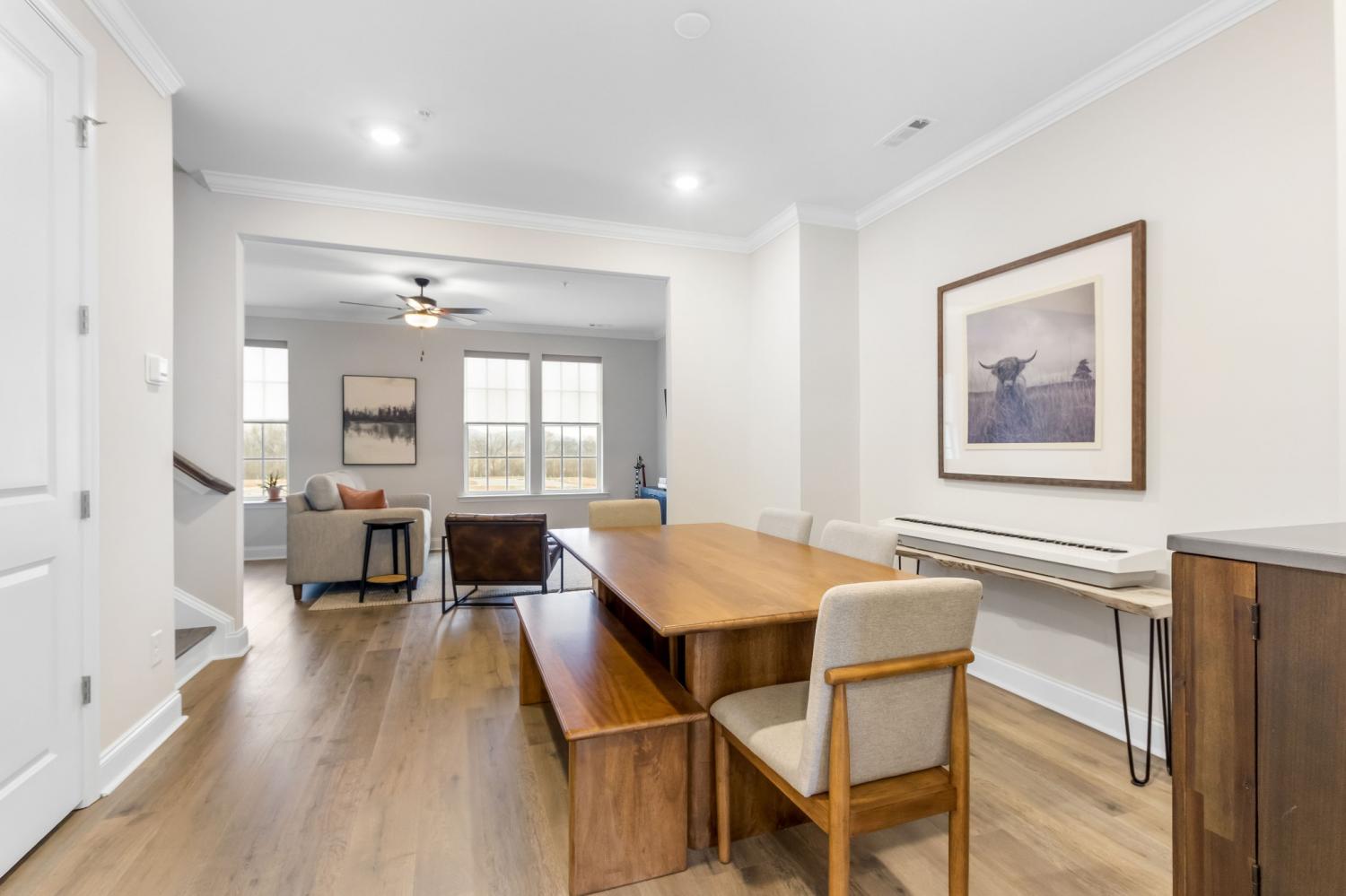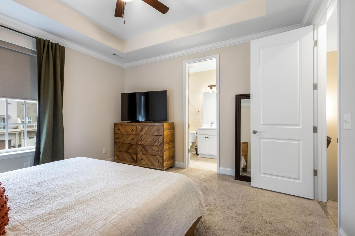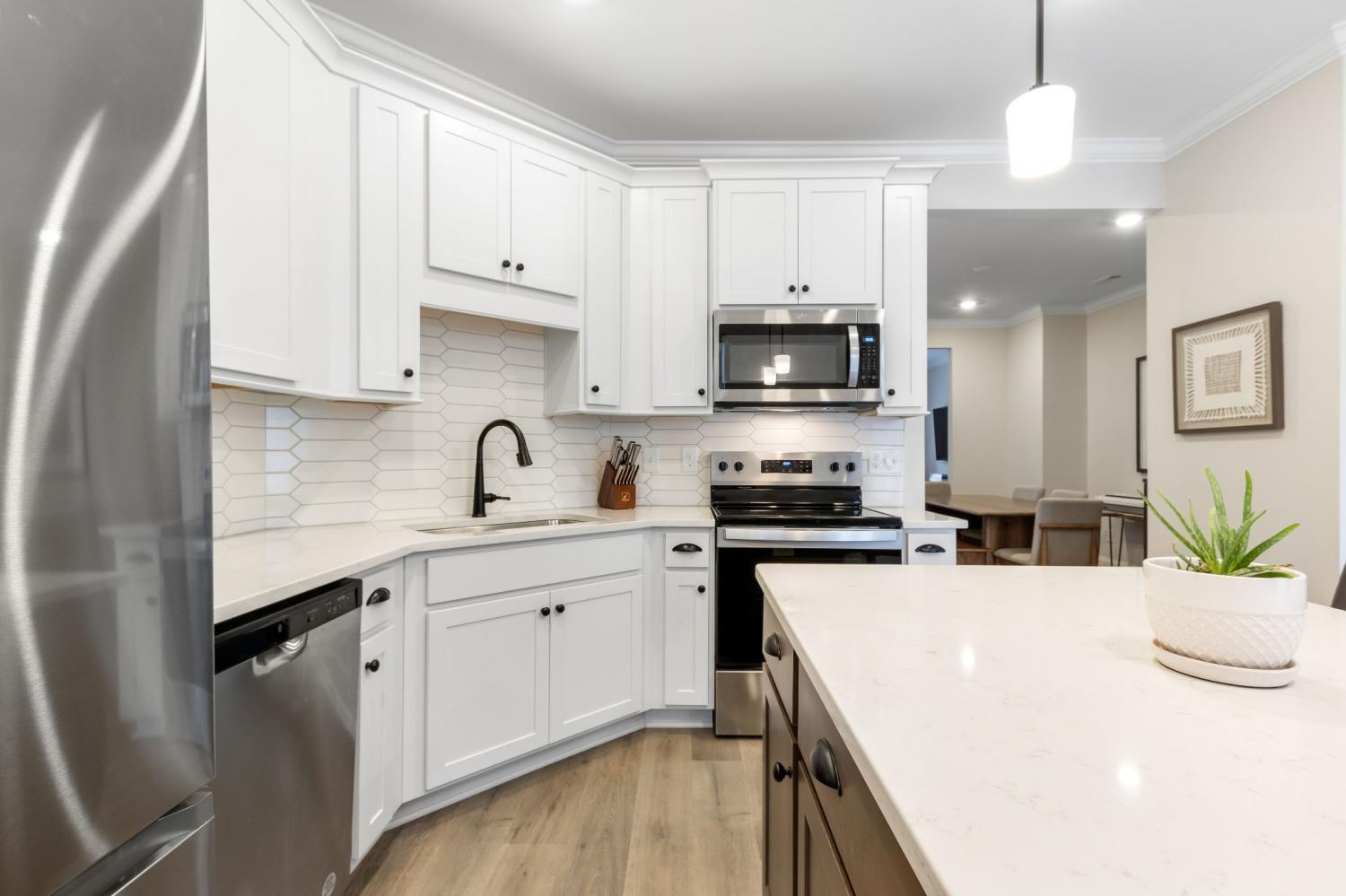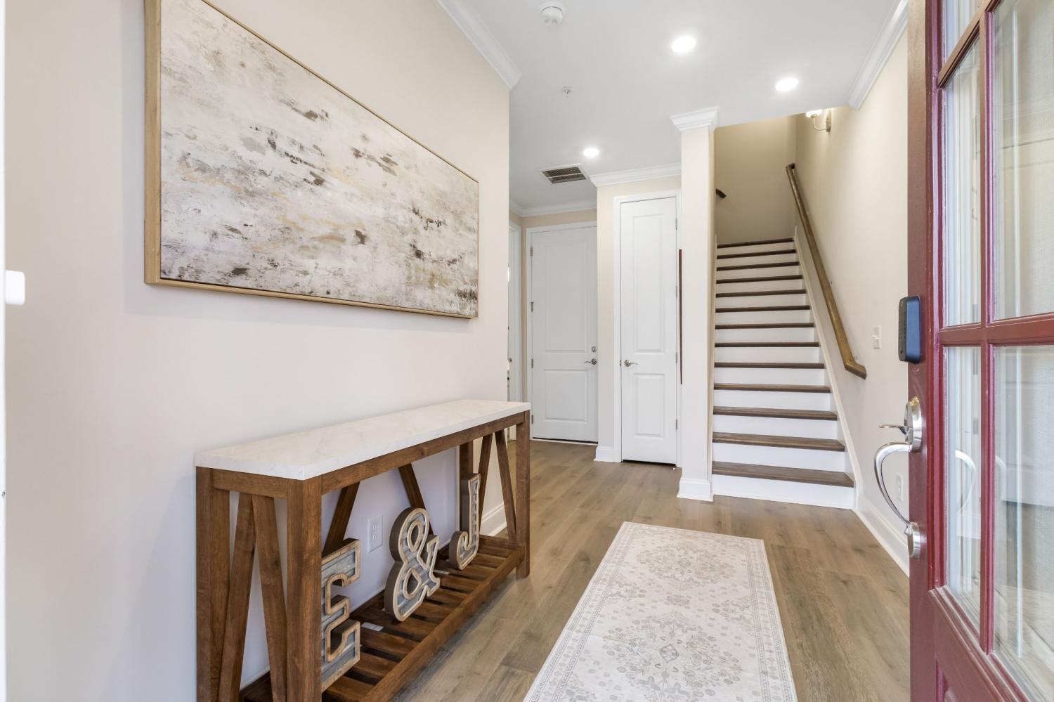 Here’s your chance to get into highly desirable Tollgate Village. Thoughtfully upgraded beyond builder grade, this 3-bed, 3.5-bath townhome offers elevated, move-in-ready living with an attached 2-car garage. The modern three-story layout features open-concept living with 9-foot ceilings, a spacious kitchen with stainless appliances, a breakfast area, and a spacious second-story deck off the kitchen. Owner-added enhancements include additional recessed lighting, custom window shades, pantry upgrades, and a professionally built-out primary closet system, providing the finishes and conveniences you often wish for after buying new construction. Set in the heart of Tollgate’s walkable Town Center, you’re steps from Mojo’s Tacos, coffee shops, salons, hardware store, medical and dental offices, and other local favorites. Zoned for top-rated Williamson County schools and within walking distance to Independence High School. With the next phase of townhomes not expected until 2026 and at a higher projected price point, this is an excellent opportunity to enjoy the Tollgate lifestyle now. Flexible use options make this property equally ideal as a primary residence or a long-term investment.