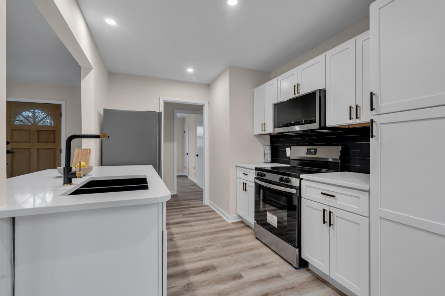Donelson Delight: Fully Renovated & Ready to Impress! Step into this stunning, renovated residence that perfectly blends modern updates with timeless charm. Featuring 3 spacious bedrooms, a beautifully modernized full bathroom, and a convenient one-car garage to utilize for convenient parking or storage. This home is thoughtfully designed for comfortable living. The partially finished basement offers endless possibilities—whether you envision a home gym, office, playroom, tornado shelter, or extra storage space, it’s ready to adapt to your needs. As you arrive, you’ll be greeted by a bright, open living room filled with natural light streaming through brand-new double-pane windows. The luxury vinyl plank flooring throughout adds both elegance and durability, while fresh paint and stylish light fixtures create a welcoming atmosphere. The kitchen is a delight! Boasting new soft-close cabinets, a deep sink, and contemporary finishes that make meal prep a pleasure. The renovated bathroom features modern fixtures and a clean, sophisticated design. Every detail has been carefully considered, including new plumbing, electrical, HVAC system, and a water heater—ensuring peace of mind for years to come. Outside, relax on your private patio or enjoy the spacious backyard shaded by mature trees—perfect for entertaining, family gatherings, or quiet evenings. The exterior has been upgraded with a new 30-year roof, siding, soffits, fascia, and gutters, so you can move in worry-free. Just minutes away from Nashville International Airport (BNA) and Downtown Nashville with the option of commuter train from the Donelson Station. Enjoy local dining, retail and community parks just minutes away. This home is truly move-in ready, offering comfort, style, and reliability. Don’t miss your chance to make it yours and celebrate the holidays in a space you’ll love!