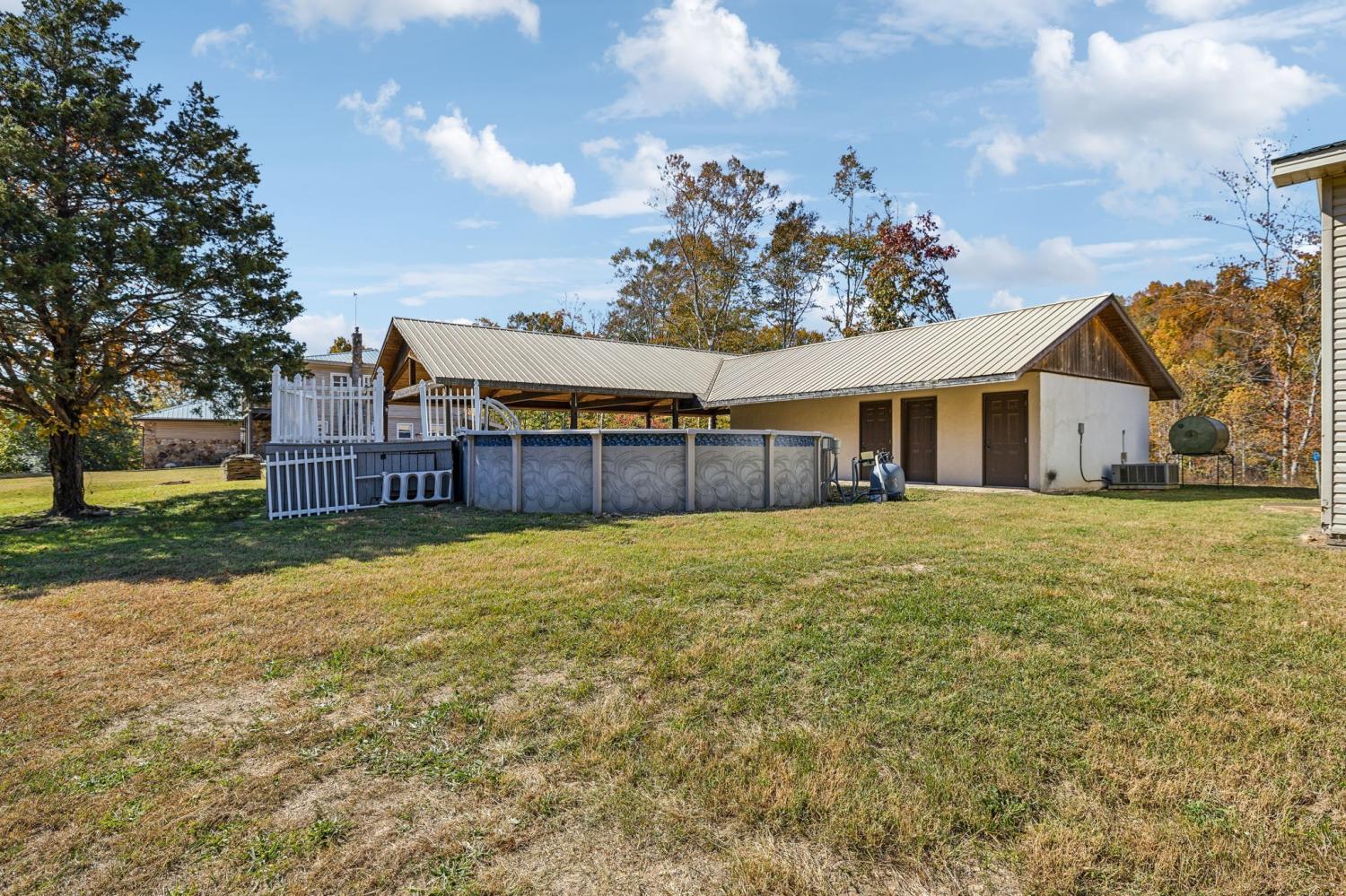 This property spans 110 acres with a creek, providing a vast private retreat. The main home features 5 spacious bedrooms and 3 full baths, offering ample room for family and guests. Along with a canning room. The estate also includes a 1,200 sq. ft. building with a full kitchen, bedroom, two bathrooms, and a convenient shower room connected to the pool area—perfect for guest lodging or entertaining. For outdoor gatherings, a large pavilion provides a comfortable, shaded space for social events or relaxation. Additionally, a detached shop offers generous room for storage, projects, or hobby needs. This property combines luxury, space, and function, making it an ideal choice for anyone looking for a versatile and expansive home setting.