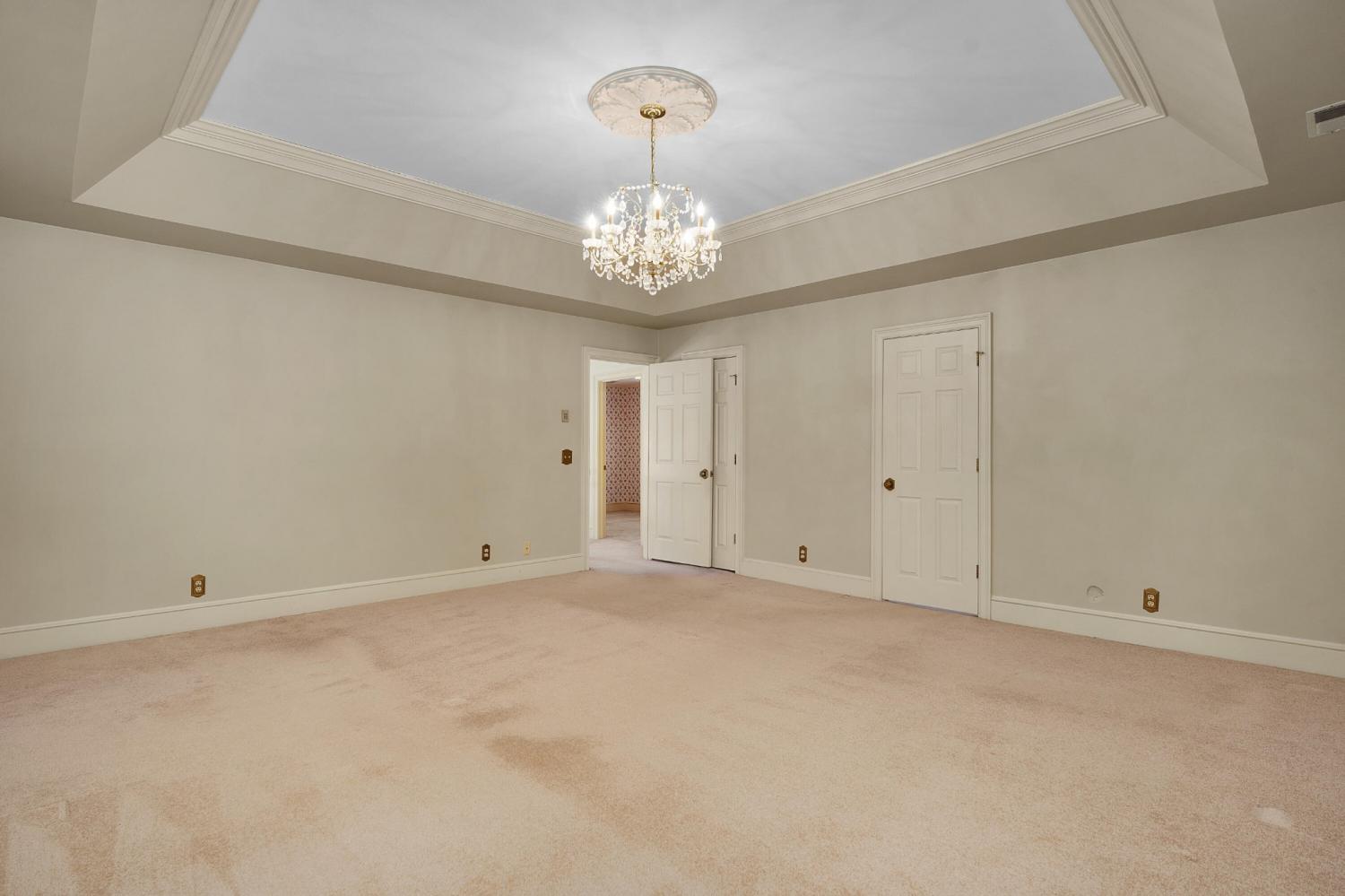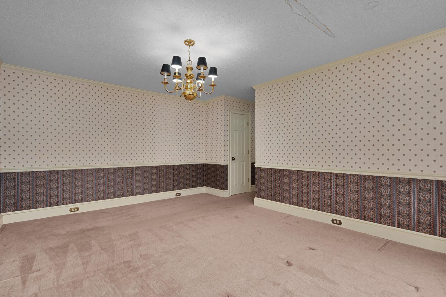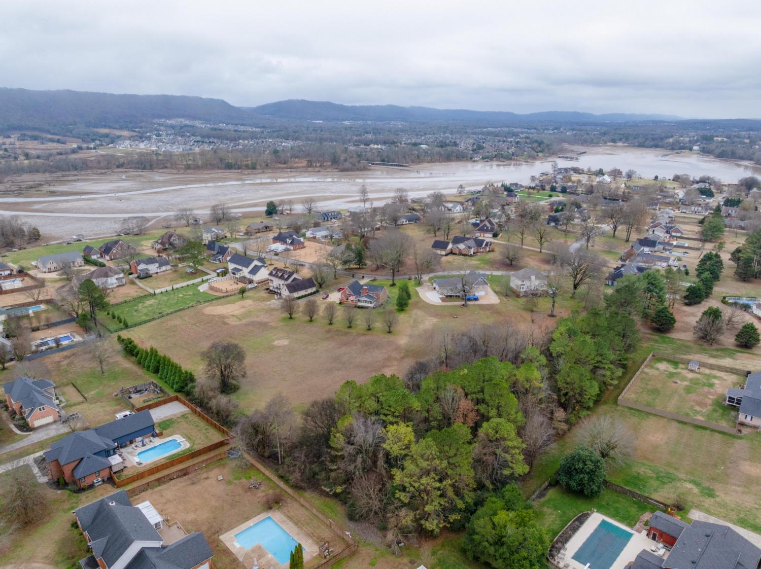 5 bedroom, 4.5 bath home on a 4.6 +/- acre lot in the established Heron Bay neighborhood in the heart of Ooltewah close to schools, shopping, restaurants, the lake and Hwy 58. This one-owner home boasts a versatile floor plan with 2 bedrooms on the main level, including an in-law suite, both formal and informal living spaces, spacious rooms, closets galore, great natural lighting, recessed and decorative lighting, walk-out and walk-up attics, plus an unfinished basement for even more storage or expansion possibilities. Your tour of the main level begins with entry to the dedicated foyer with hardwood flooring, central staircase with dramatic chandelier and enlarged doorways to the living room on the right and the dining room on the left. A central den with a gas fireplace has sliding glass doors to the rear patio and access to an en-suite bedroom and the sunny kitchen. The eat-in kitchen has great counter and cabinet space, black and stainless appliances, and access to the rear 2nd staircase, patio and the side hall leading to the butler's pantry, laundry room, powder room, garage and the in-law suite. The in-law suite has a living room, a bedroom with a walk-in closet and a private bath. Head upstairs where you will find the primary bedroom which has a trey ceiling, crystal chandelier, a walk-in closet, and the primary bath with a dual vanity, jetted tub with crystal chandelier and a separate shower. A study or office is just steps away, and there are also 2 additional bedrooms, another full bath and great storage on this level. The basement was partially finished at one point and there is a large room with a fireplace and sliding glass doors to a patio area that would make a great family or rec room, plus another area that would make a great workshop. Most of the acreage is cleared in back, so there is plenty of room for outdoor fun or your furry friends.