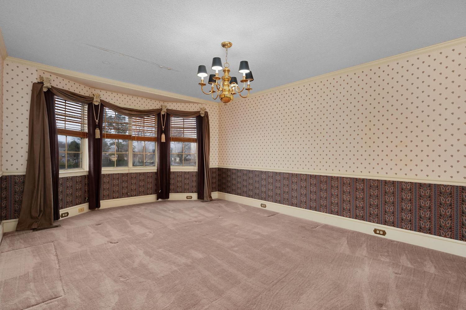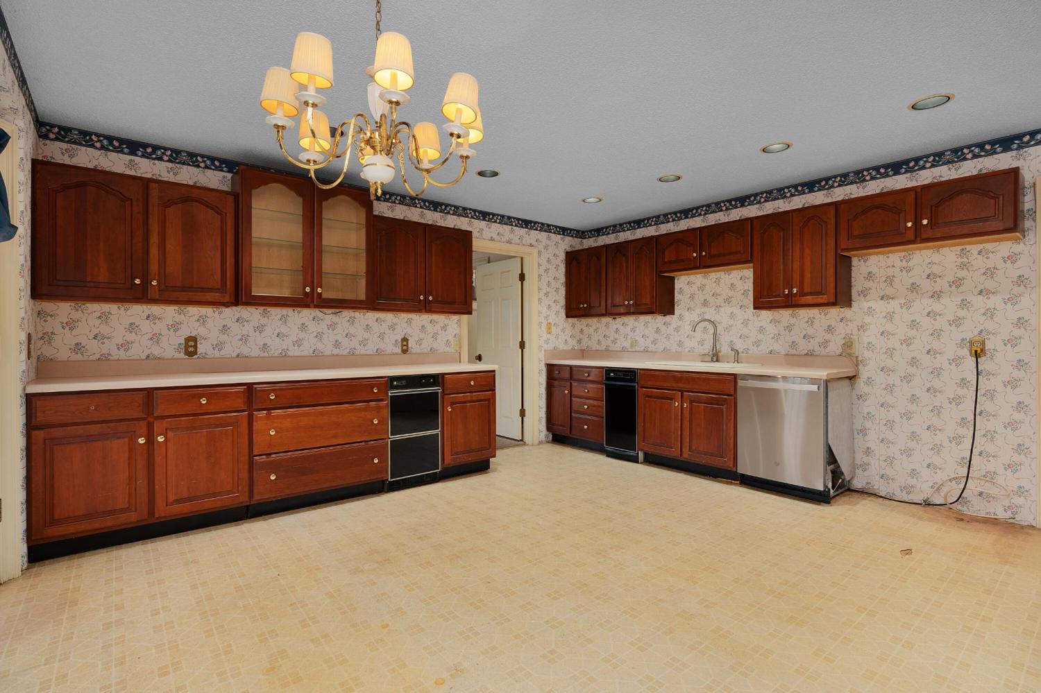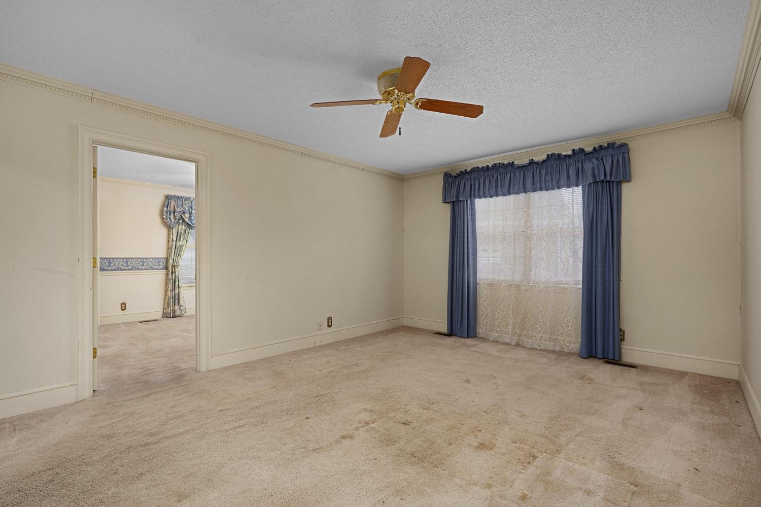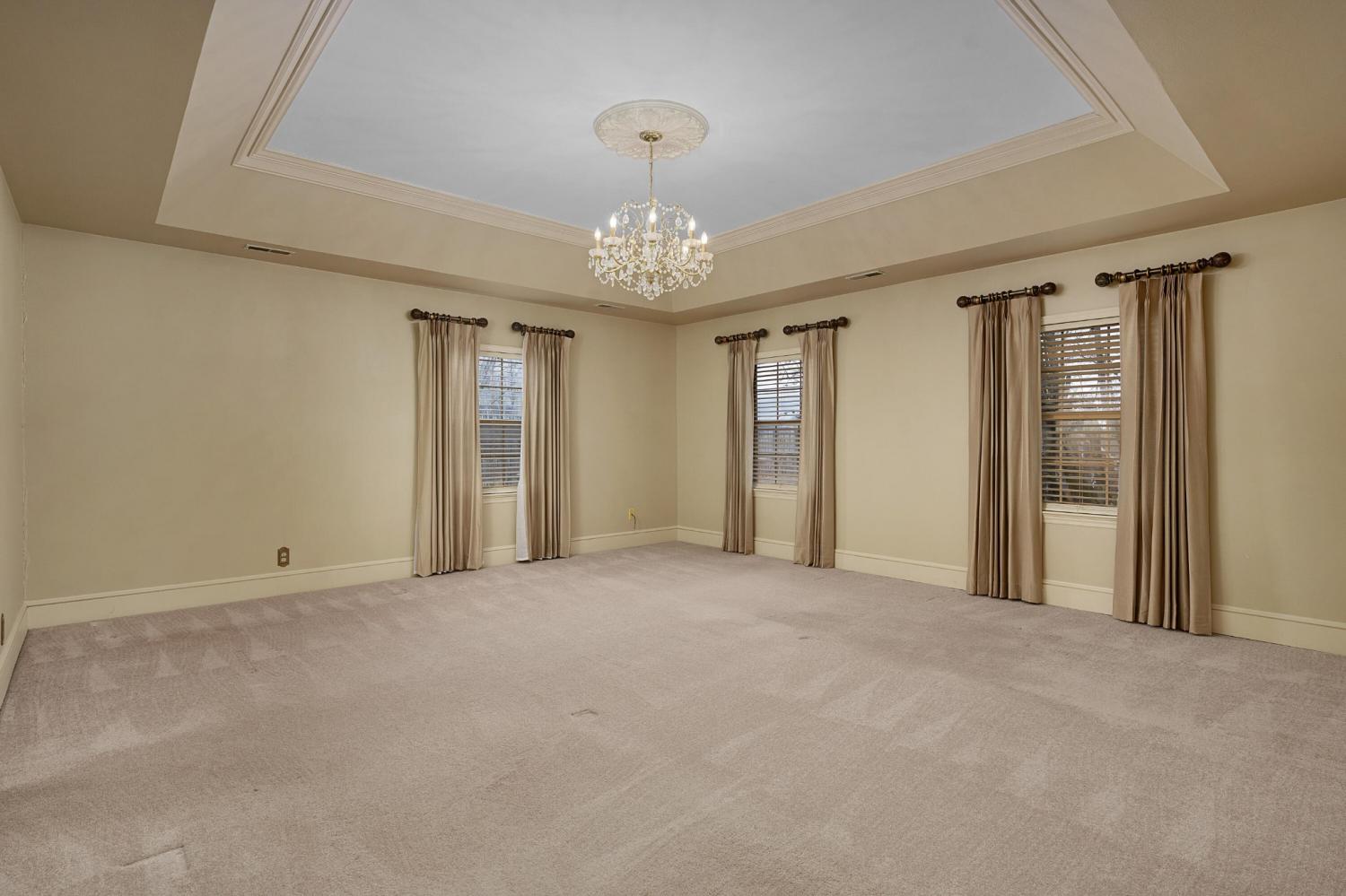 5 bedroom, 4.5 bath home on a 4.6 +/- acre lot in the established Heron Bay neighborhood in the heart of Ooltewah close to schools, shopping, restaurants, the lake and Hwy 58. This one-owner home boasts a versatile floor plan with 2 bedrooms on the main level, including an in-law suite, both formal and informal living spaces, spacious rooms, closets galore, great natural lighting, recessed and decorative lighting, walk-out and walk-up attics, plus an unfinished basement for even more storage or expansion possibilities. Your tour of the main level begins with entry to the dedicated foyer with hardwood flooring, central staircase with dramatic chandelier and enlarged doorways to the living room on the right and the dining room on the left. A central den with a gas fireplace has sliding glass doors to the rear patio and access to an en-suite bedroom and the sunny kitchen. The eat-in kitchen has great counter and cabinet space, black and stainless appliances, and access to the rear 2nd staircase, patio and the side hall leading to the butler's pantry, laundry room, powder room, garage and the in-law suite. The in-law suite has a living room, a bedroom with a walk-in closet and a private bath. Head upstairs where you will find the primary bedroom which has a trey ceiling, crystal chandelier, a walk-in closet, and the primary bath with a dual vanity, jetted tub with crystal chandelier and a separate shower. A study or office is just steps away, and there are also 2 additional bedrooms, another full bath and great storage on this level. The basement was partially finished at one point and there is a large room with a fireplace and sliding glass doors to a patio area that would make a great family or rec room, plus another area that would make a great workshop. Most of the acreage is cleared in back, so there is plenty of room for outdoor fun or your furry friends.