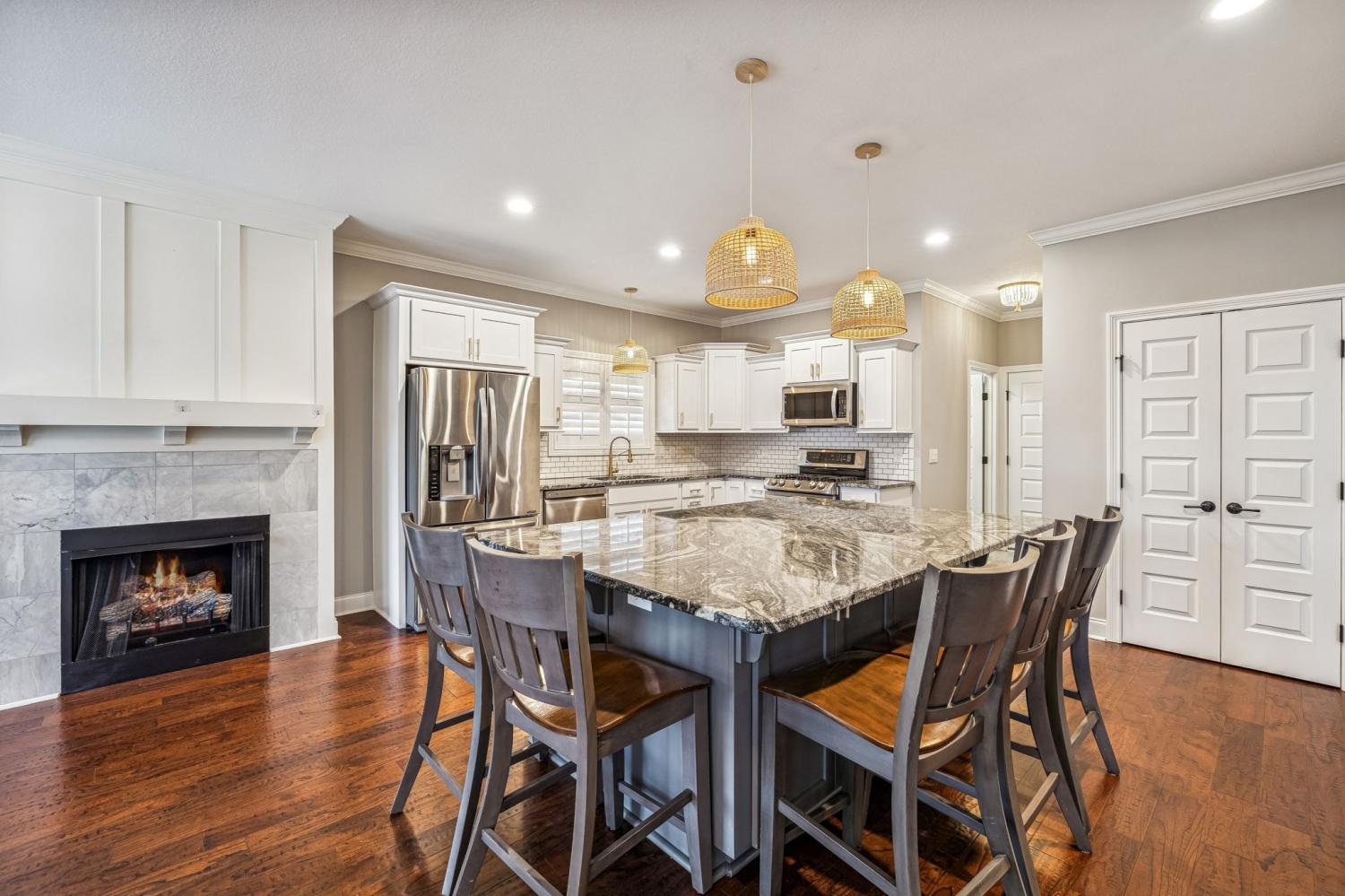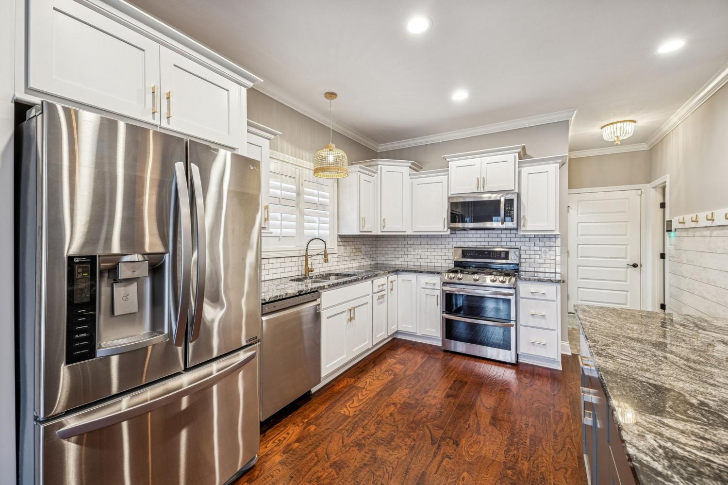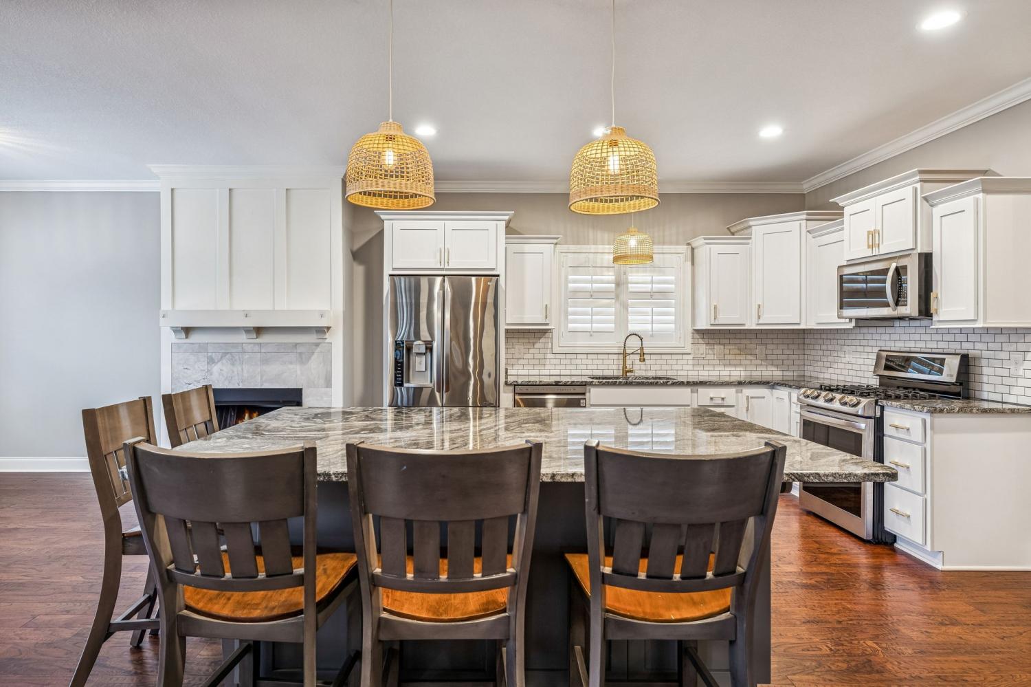 Nestled in the heart of Clarksville's coveted 37043 zip code, 3556 Smith Brothers Ln is more than just a home it's a lifestyle. This stunning property blends modern comfort with timeless charm, offering an inviting retreat for those who appreciate quality and convenience. Step inside to discover an open, light-filled floor plan designed for both relaxation and entertaining. The spacious living area boasts soaring ceilings, two gas fireplaces and windows adorned with custom plantation shutters illuminating premium hardwood floors, open flowing spaces flooded with natural light. The gourmet kitchen is a dream come true, featuring sleek granite countertops, stainless steel appliances, gas cooktop range with double oven and a generous eat at island perfect for casual dining or hosting friends and family. The primary suite on the main level is your personal sanctuary, complete with a spa inspired en suite bathroom with tiled shower, separate soaking tub, dual vanity and a walk-in closet that will have you swooning. Upstairs, three additional bedrooms and a recreation room are equally spacious, with ample storage and flexibility for a growing family, guest rooms, or even a home office. Outside, the backyard beckons with its well manicured fenced in lawn and fully screened in back patio ideal for morning coffee, weekend BBQs, or simply soaking up the Tennessee sunshine. And let’s talk about location: situated in the peaceful and highly desired Easthaven neighborhood where residents enjoy resort style amenities including a in-ground pool, state-of-the-art fitness center, outdoor patio with grills, playground and walking trails. This home is just minutes from top-rated schools, local dining, shopping, and easy access to Interstate 24 to Fort Campbell, KY or Nashville, TN for commuters. Whether you're looking for your forever home or the perfect place to grow into, 3556 Smith Brothers Ln offers everything you need and more. Don’t miss the chance to make this gem yours!
