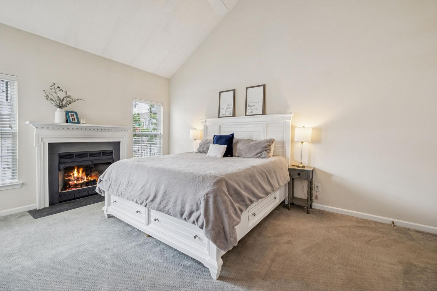 Welcome to this charming home in the heart of Lenox Village! The main residence offers 2,331 sq/ft of beautifully designed living space featuring a bright eat-in kitchen that opens to a sunlit great room with a stacked-stone fireplace. The main-level primary suite includes its own cozy fireplace, while vaulted ceilings, hardwood floors, and architectural ceiling details add style throughout. Relax on the wraparound covered porch with porch swing included, overlooking a tree-lined corner lot in a walkable neighborhood just steps from shops, dining, parks, and more. Adding even more value, this property includes a detached 478 sq/ft studio apartment-styled above the 2-car garage. Complete with full bath, private entrance, and its own street parking. Perfect as an income-producing rental, private in-law suite, or guest retreat, this versatile space sets the property apart and offers unmatched flexibility.