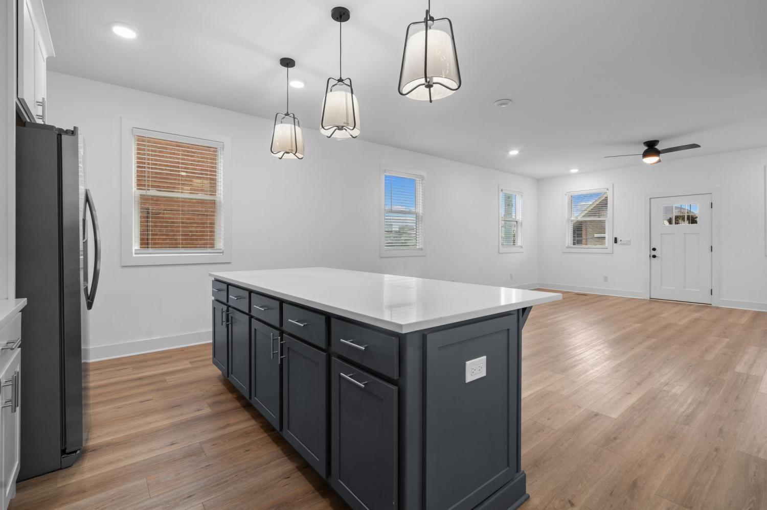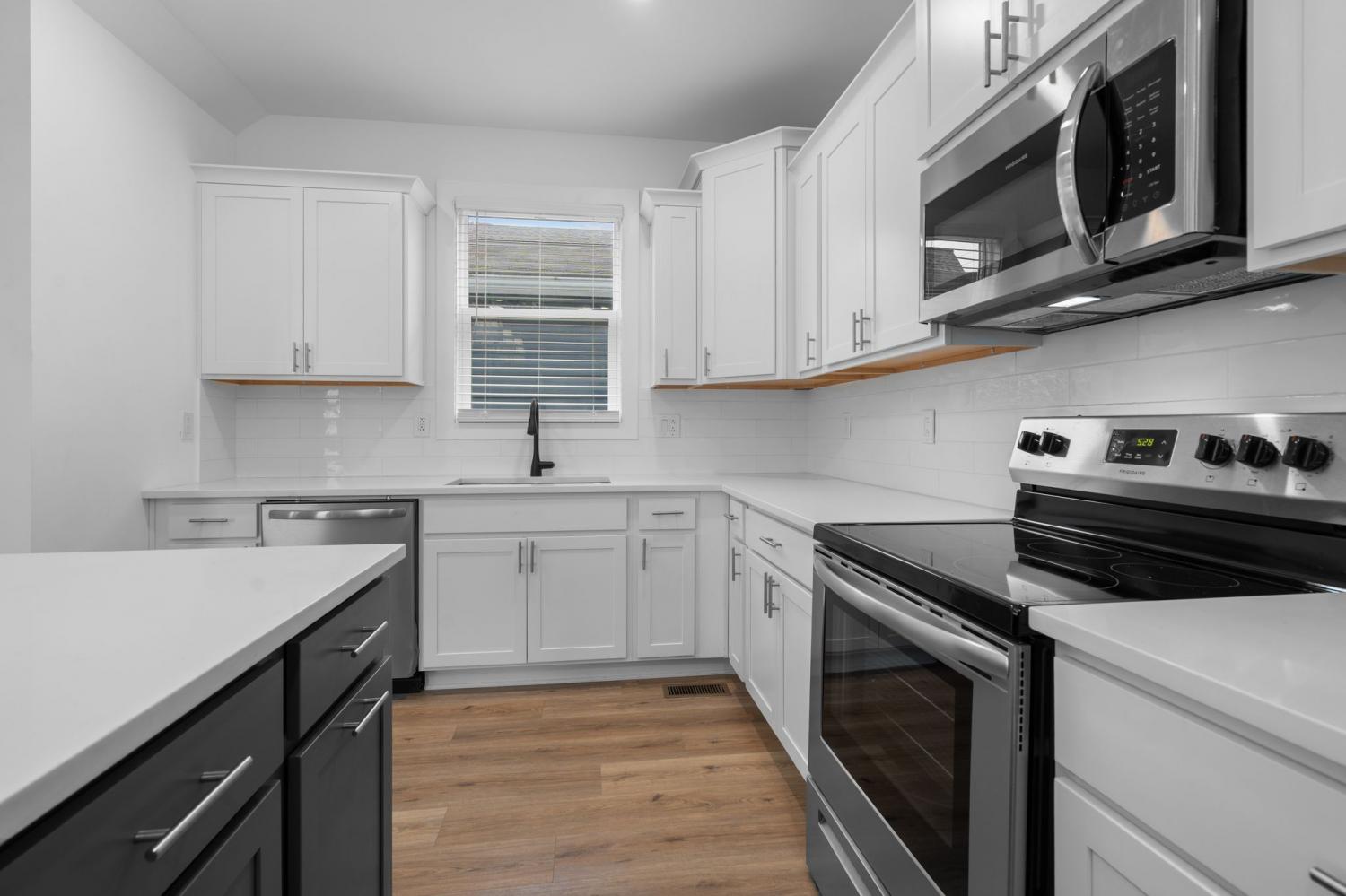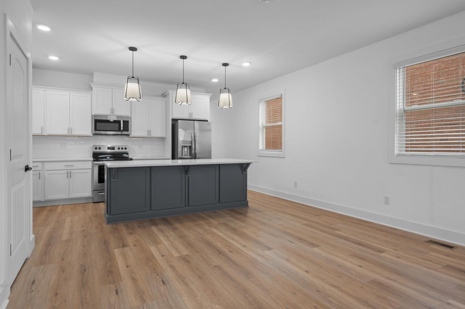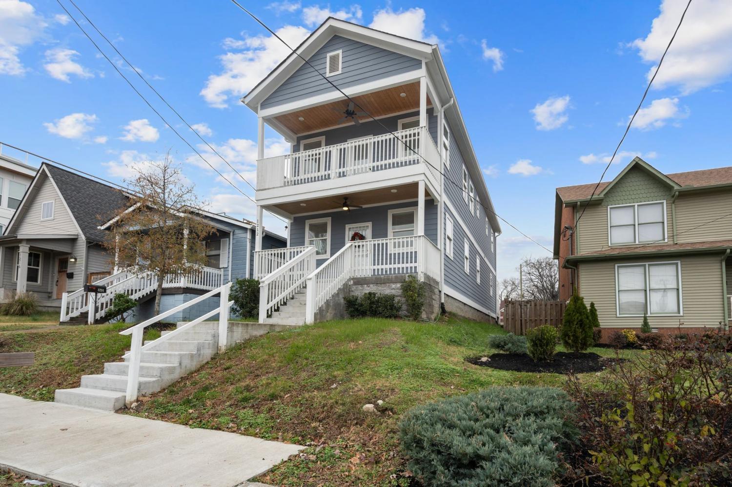 Downtown Views under $600,000... Fantastic new construction with 3 Bedrooms and 3 Full Baths. Front porch has a view as you enter the open layout of this amazing house. Large well lit living room, kitchen with quartz countertops, stunning cabinets, stainless steel appliances, large pantry. Main level bedroom with large walk in closet. Upstairs 2 bedrooms with a huge master suite with a balcony that has a must see view of downtown. Another bedroom and full bath up stairs. Upgraded cabinets and counter tops throughout. Nice yard with deck and room for a garage. Currently its a 2 space parking pad with alley access. Easy access to all of downtown, the gulch, Charlotte Avenue, Fisk and Meharry.