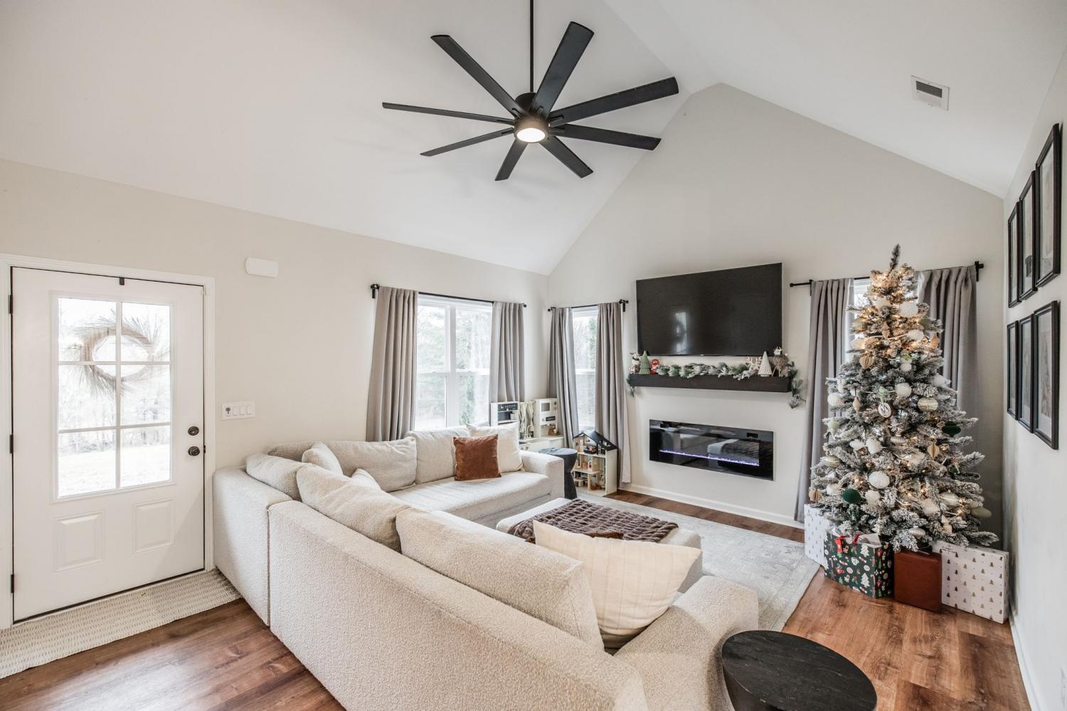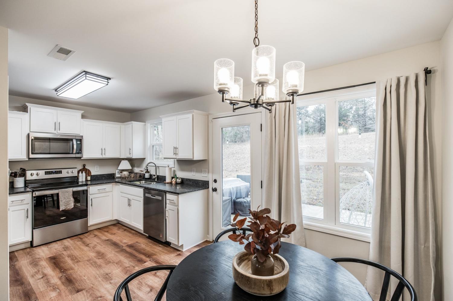 Step into this beautifully designed 3-bedroom, 2-bath home where every detail has been thoughtfully curated. The moment you walk in, you’re greeted by a soaring vaulted ceiling in the living room, complemented by an elegant electric fireplace that instantly sets the tone for warmth and style. The open-concept layout flows effortlessly into a stunning kitchen featuring granite countertops, stainless steel appliances, and modern finishes that make cooking and entertaining a joy. Gorgeous LVP flooring runs throughout, adding both durability and a high-end look. Each room is decorated with exceptional taste, giving the home a fresh, move-in-ready feel that’s sure to impress any buyer. Tucked away in a peaceful, private setting, the property offers a quiet retreat with a concrete patio perfect for relaxing or hosting guests. This home truly has the “wow” factor—well kept, beautifully styled, and designed for easy living. Homes like this don’t last long!