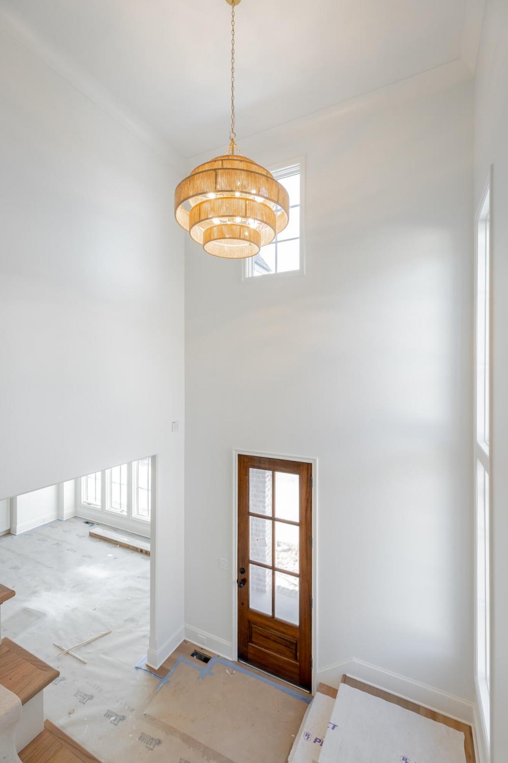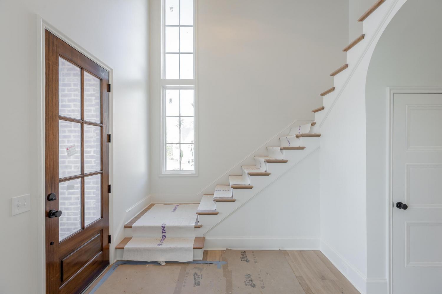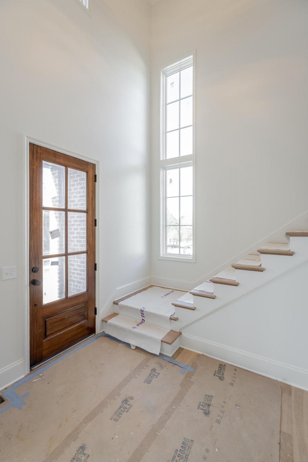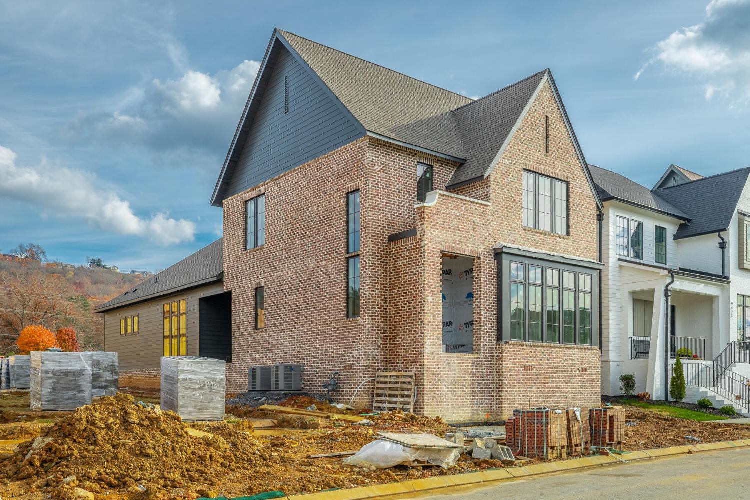 Enjoy effortless main-level living in The Townsend, Waters-Holland's most popular villa plan in Ooltewah's Grantham Square, complete with a spacious primary suite and an open-concept layout that frames stunning views of the community's largest pond. Classic brick and fiber-cement siding, wrought-iron accents, and a covered front vestibule create timeless curb appeal. An 8-foot-tall wood entry door with 3/4-light glass welcomes you into a dramatic, light-filled two-story foyer with soaring ceilings. The front-facing great room captivates with a full wall of windows overlooking the pond and expansive greenspace. Centered on a gas fireplace flanked by custom built-in cabinetry, the room feels both grand and inviting. Flowing seamlessly from the great room, the gourmet kitchen and dining area are anchored by an oversized center island ideal for casual meals and entertaining. Finishes include quartz countertops, locally crafted custom cabinetry, and premium Fisher & Paykel stainless appliances featuring a 36-inch gas range, integrated dishwasher, and Sharp microwave drawer. The kitchen sink is perfectly positioned beneath a window that overlooks the private side yard, while a hidden walk-in pantry offers abundant storage. Tucked away for privacy, the main-level primary suite boasts a large walk-in closet with custom built-ins and a spa-like en suite bath with dual vanity, oversized 6' x 4' tiled shower, private water closet, and linen closet. A guest powder room, full laundry room with cabinetry and sink, and direct garage access complete the first floor. Upstairs, two generously sized bedrooms each include walk-in closets and share two full baths—one en suite and one conveniently nearby. The front bedroom enjoys the same sweeping pond views as the great room below. A spacious loft provides flexible space for a home office, media room, or play area and offers easy walk-out attic access for additional storage.