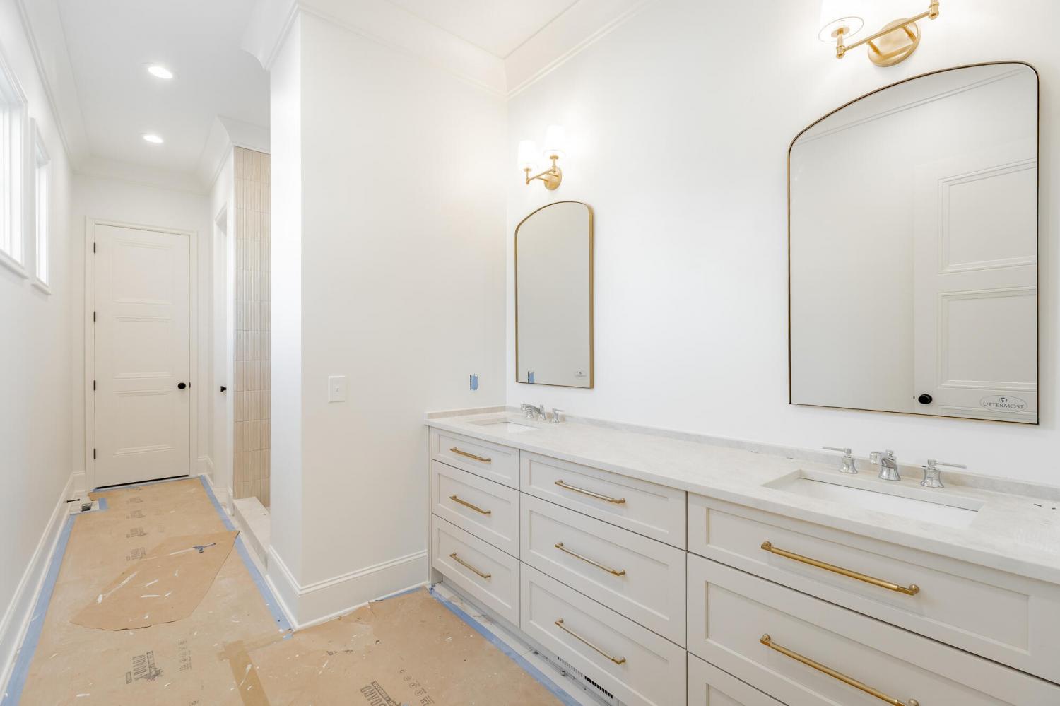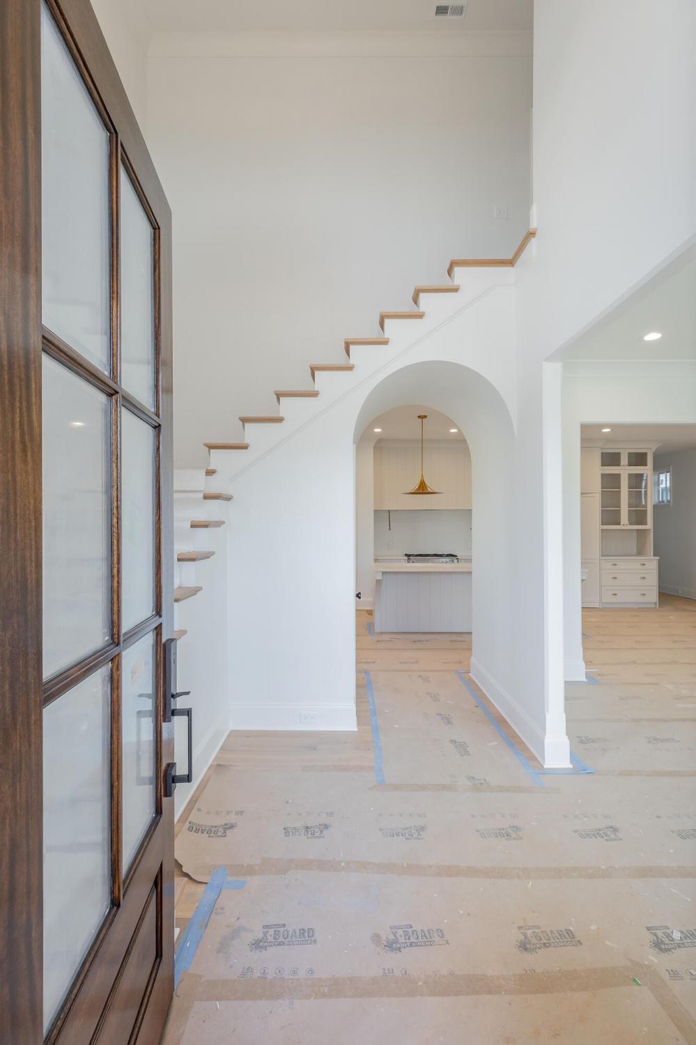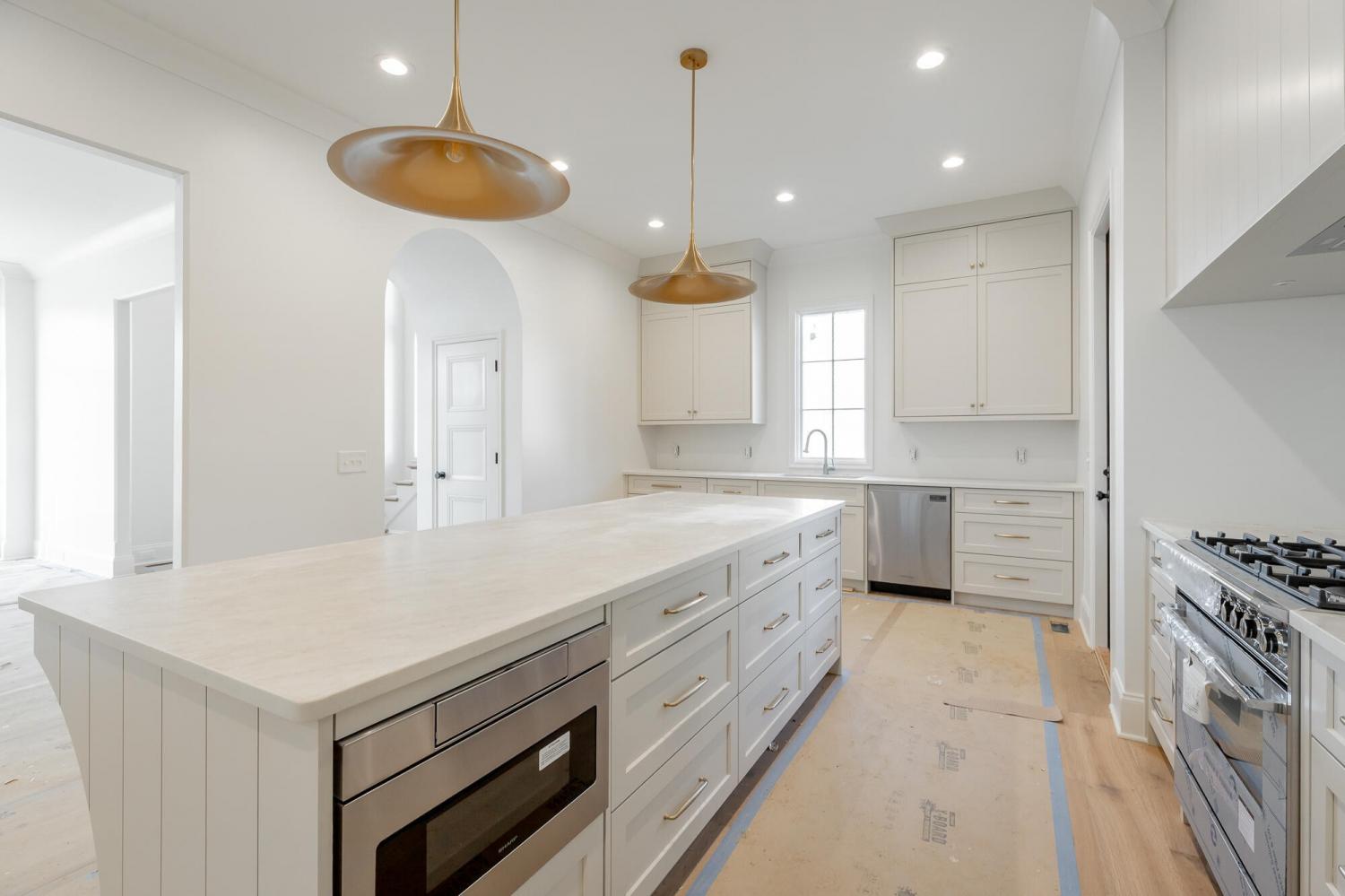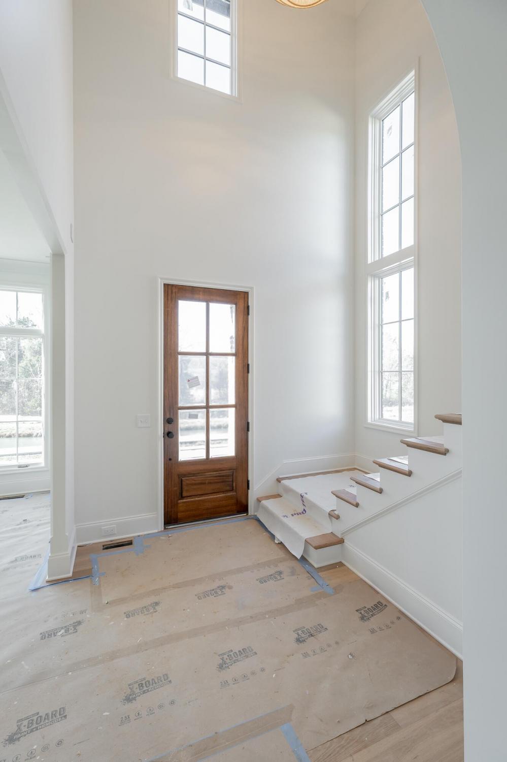Enjoy effortless main-level living in The Townsend, Waters-Holland's most popular villa plan in Ooltewah's Grantham Square, complete with a spacious primary suite and an open-concept layout that frames stunning views of the community's largest pond. Classic brick and fiber-cement siding, wrought-iron accents, and a covered front vestibule create timeless curb appeal. An 8-foot-tall wood entry door with 3/4-light glass welcomes you into a dramatic, light-filled two-story foyer with soaring ceilings. The front-facing great room captivates with a full wall of windows overlooking the pond and expansive greenspace. Centered on a gas fireplace flanked by custom built-in cabinetry, the room feels both grand and inviting. Flowing seamlessly from the great room, the gourmet kitchen and dining area are anchored by an oversized center island ideal for casual meals and entertaining. Finishes include quartz countertops, locally crafted custom cabinetry, and premium Fisher & Paykel stainless appliances featuring a 36-inch gas range, integrated dishwasher, and Sharp microwave drawer. The kitchen sink is perfectly positioned beneath a window that overlooks the private side yard, while a hidden walk-in pantry offers abundant storage. Tucked away for privacy, the main-level primary suite boasts a large walk-in closet with custom built-ins and a spa-like en suite bath with dual vanity, oversized 6' x 4' tiled shower, private water closet, and linen closet. A guest powder room, full laundry room with cabinetry and sink, and direct garage access complete the first floor. Upstairs, two generously sized bedrooms each include walk-in closets and share two full baths—one en suite and one conveniently nearby. The front bedroom enjoys the same sweeping pond views as the great room below. A spacious loft provides flexible space for a home office, media room, or play area and offers easy walk-out attic access for additional storage.