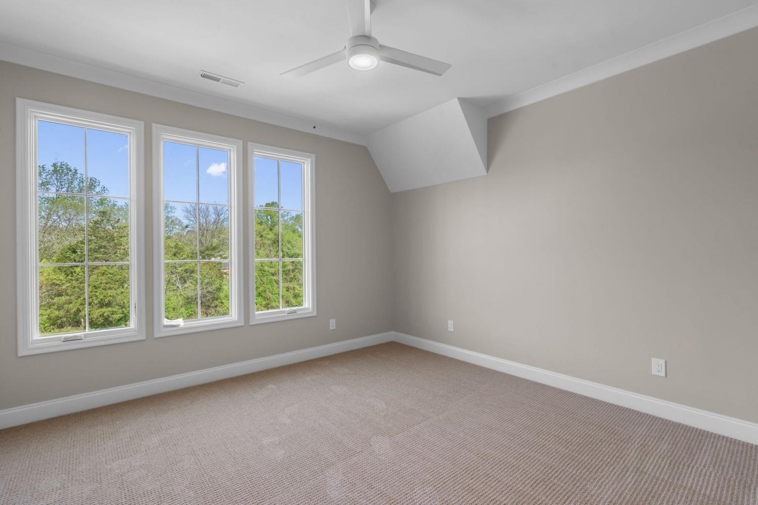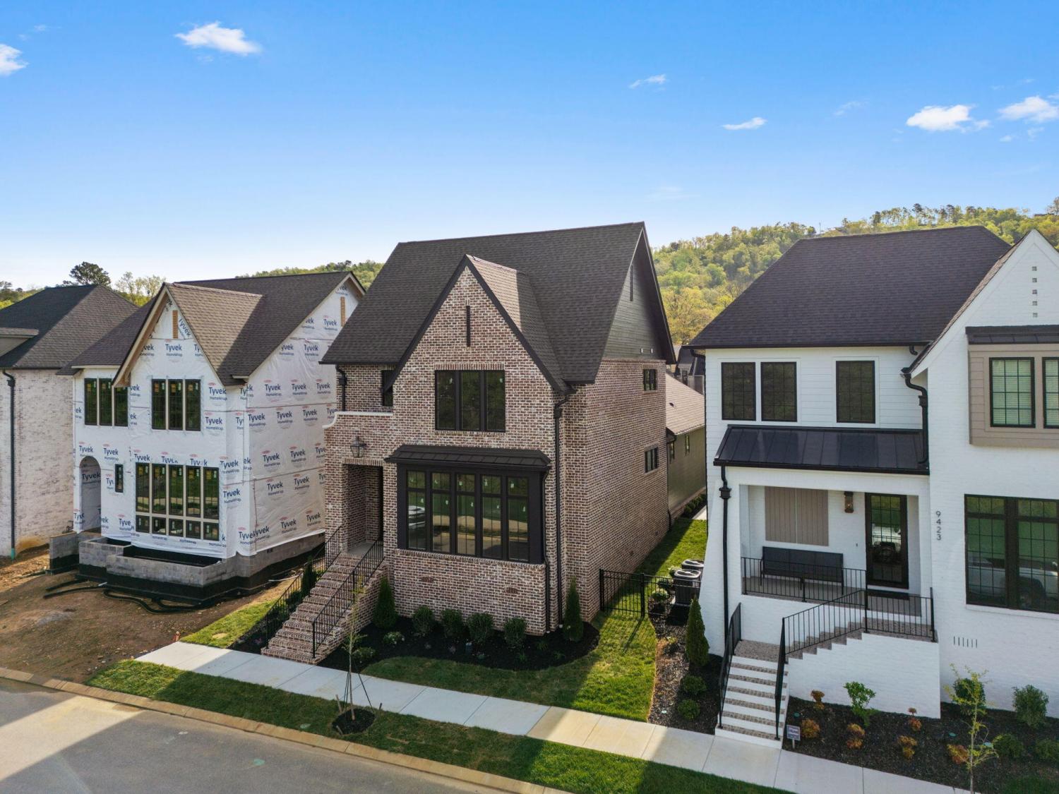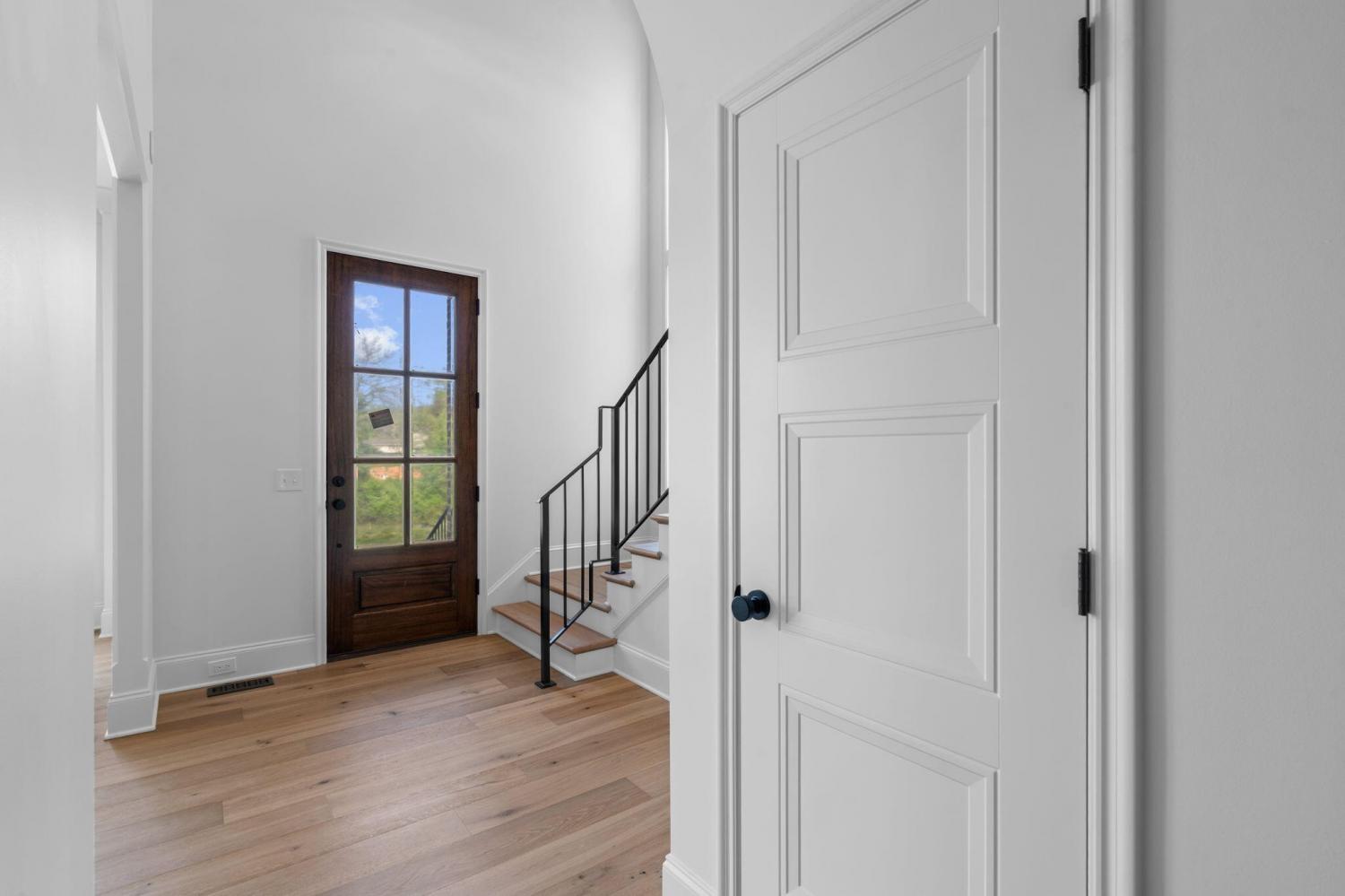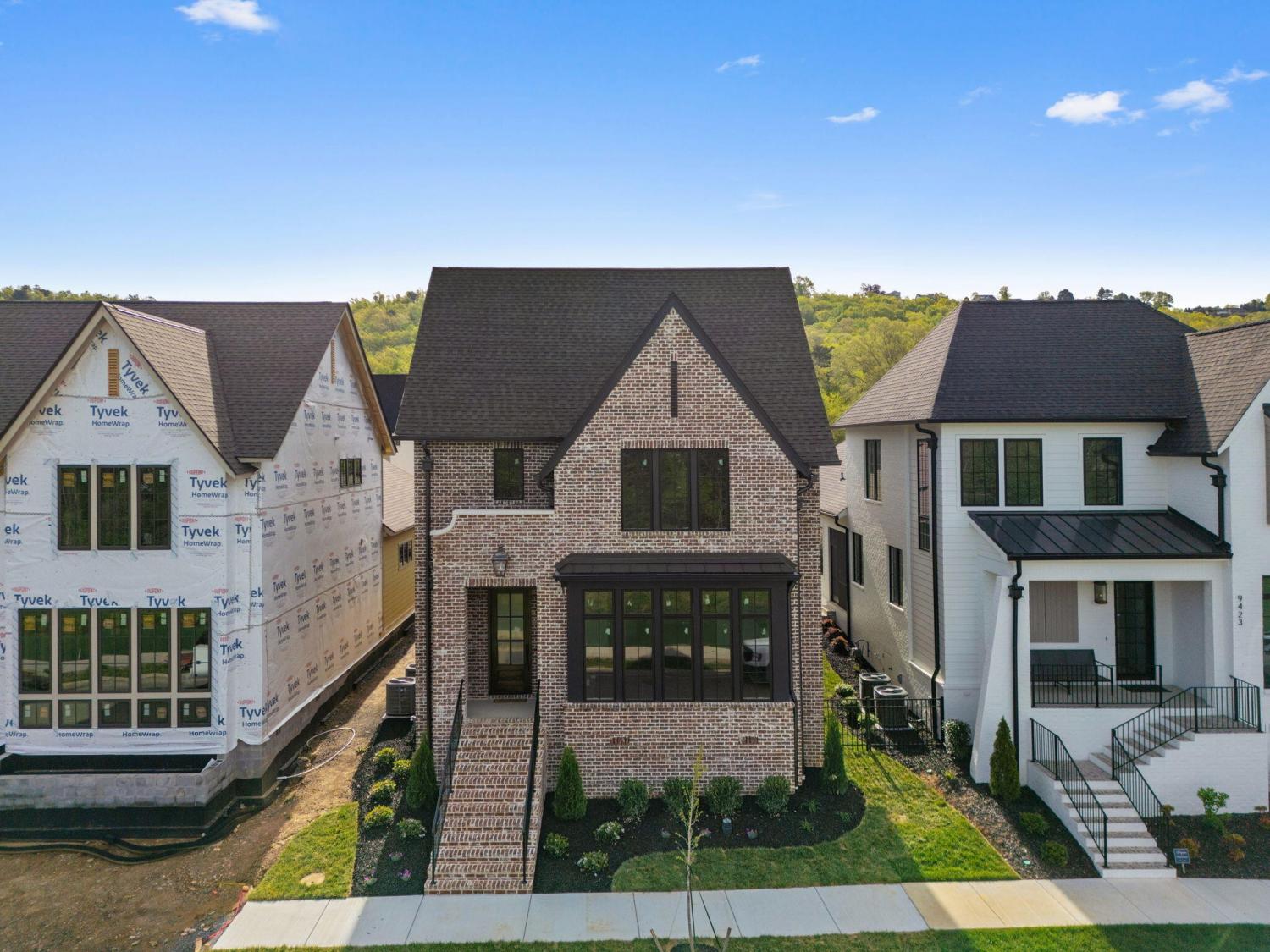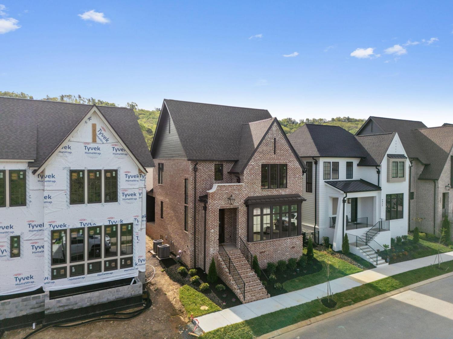 Meet our sales team very Sunday 2pm - 4pm! Enjoy effortless main-level living in The Townsend, Waters-Holland's most popular villa plan in Ooltewah's Grantham Square, complete with a spacious primary suite and an open-concept layout that frames stunning views of the community's largest pond. Classic brick and fiber-cement siding, wrought-iron accents, and a covered front vestibule create timeless curb appeal. An 8-foot-tall wood entry door with 3/4-light glass welcomes you into a dramatic, light-filled two-story foyer with soaring ceilings. The front-facing great room captivates with a full wall of windows overlooking the pond and expansive greenspace. Centered on a gas fireplace flanked by custom built-in cabinetry, the room feels both grand and inviting. Flowing seamlessly from the great room, the gourmet kitchen and dining area are anchored by an oversized center island ideal for casual meals and entertaining. Finishes include quartz countertops, locally crafted custom cabinetry, and premium Fisher & Paykel stainless appliances featuring a 36-inch gas range, integrated dishwasher, and Sharp microwave drawer. The kitchen sink is perfectly positioned beneath a window that overlooks the private side yard, while a hidden walk-in pantry offers abundant storage. Tucked away for privacy, the main-level primary suite boasts a large walk-in closet with custom built-ins and a spa-like en suite bath with dual vanity, oversized 6' x 4' tiled shower, private water closet, and linen closet. A guest powder room, full laundry room with cabinetry and sink, and direct garage access complete the first floor. Upstairs, two generously sized bedrooms each include walk-in closets and share two full baths--one en suite and one conveniently nearby. The front bedroom enjoys the same sweeping pond views as the great room below. A spacious loft provides flexible space for a home office, media room, or play area and offers easy walk-out attic access for additional storage.