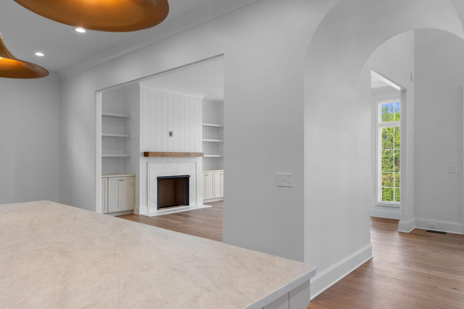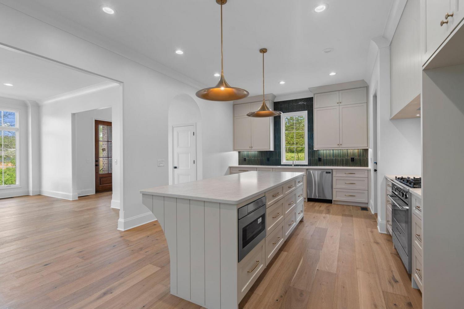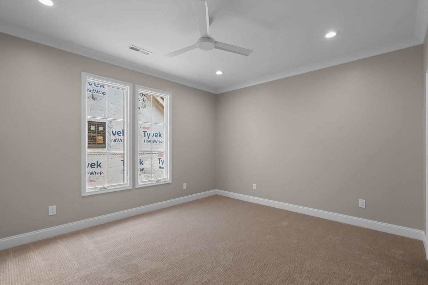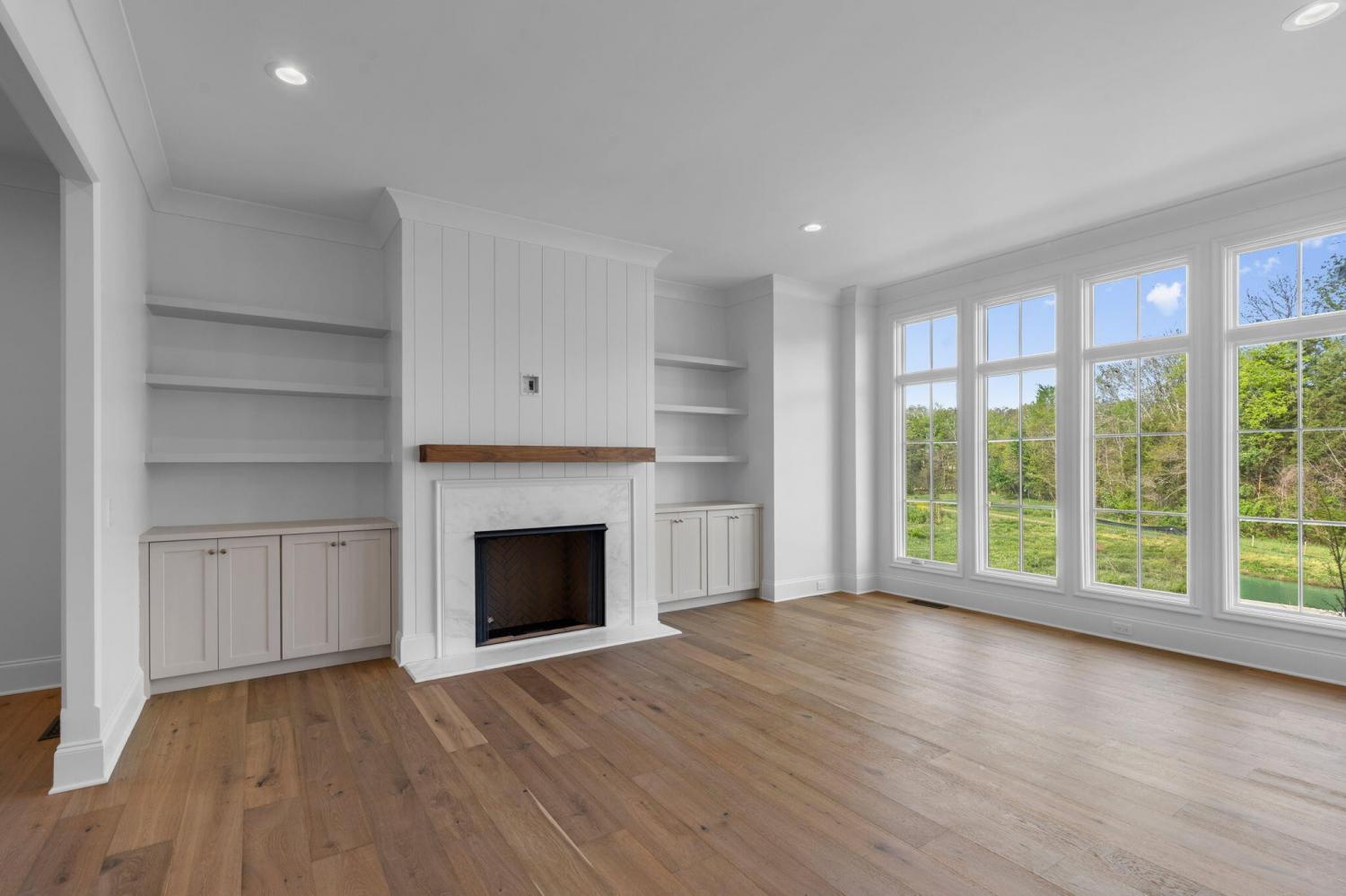 Meet our sales team very Sunday 2pm - 4pm! Enjoy effortless main-level living in The Townsend, Waters-Holland's most popular villa plan in Ooltewah's Grantham Square, complete with a spacious primary suite and an open-concept layout that frames stunning views of the community's largest pond. Classic brick and fiber-cement siding, wrought-iron accents, and a covered front vestibule create timeless curb appeal. An 8-foot-tall wood entry door with 3/4-light glass welcomes you into a dramatic, light-filled two-story foyer with soaring ceilings. The front-facing great room captivates with a full wall of windows overlooking the pond and expansive greenspace. Centered on a gas fireplace flanked by custom built-in cabinetry, the room feels both grand and inviting. Flowing seamlessly from the great room, the gourmet kitchen and dining area are anchored by an oversized center island ideal for casual meals and entertaining. Finishes include quartz countertops, locally crafted custom cabinetry, and premium Fisher & Paykel stainless appliances featuring a 36-inch gas range, integrated dishwasher, and Sharp microwave drawer. The kitchen sink is perfectly positioned beneath a window that overlooks the private side yard, while a hidden walk-in pantry offers abundant storage. Tucked away for privacy, the main-level primary suite boasts a large walk-in closet with custom built-ins and a spa-like en suite bath with dual vanity, oversized 6' x 4' tiled shower, private water closet, and linen closet. A guest powder room, full laundry room with cabinetry and sink, and direct garage access complete the first floor. Upstairs, two generously sized bedrooms each include walk-in closets and share two full baths--one en suite and one conveniently nearby. The front bedroom enjoys the same sweeping pond views as the great room below. A spacious loft provides flexible space for a home office, media room, or play area and offers easy walk-out attic access for additional storage.