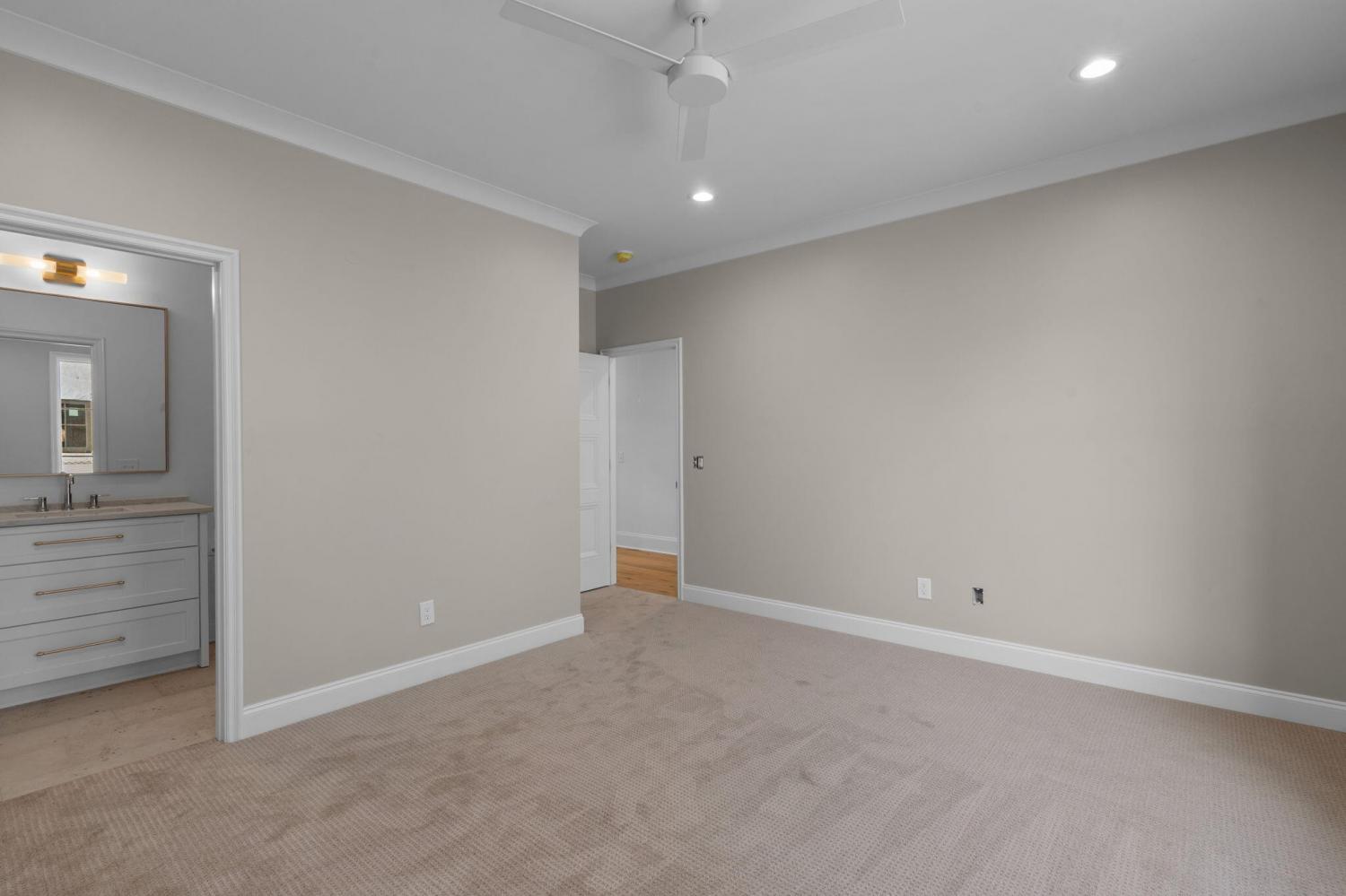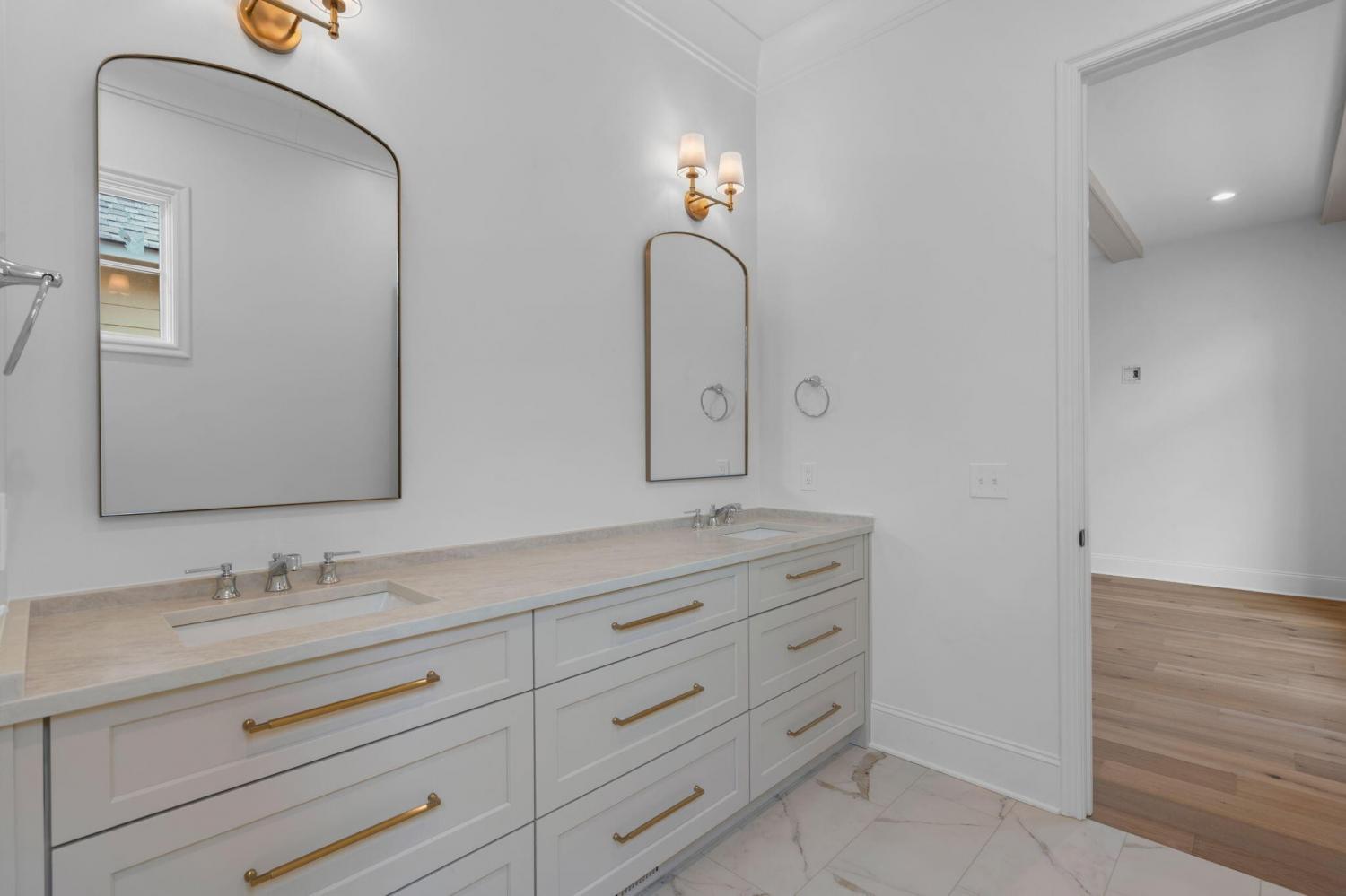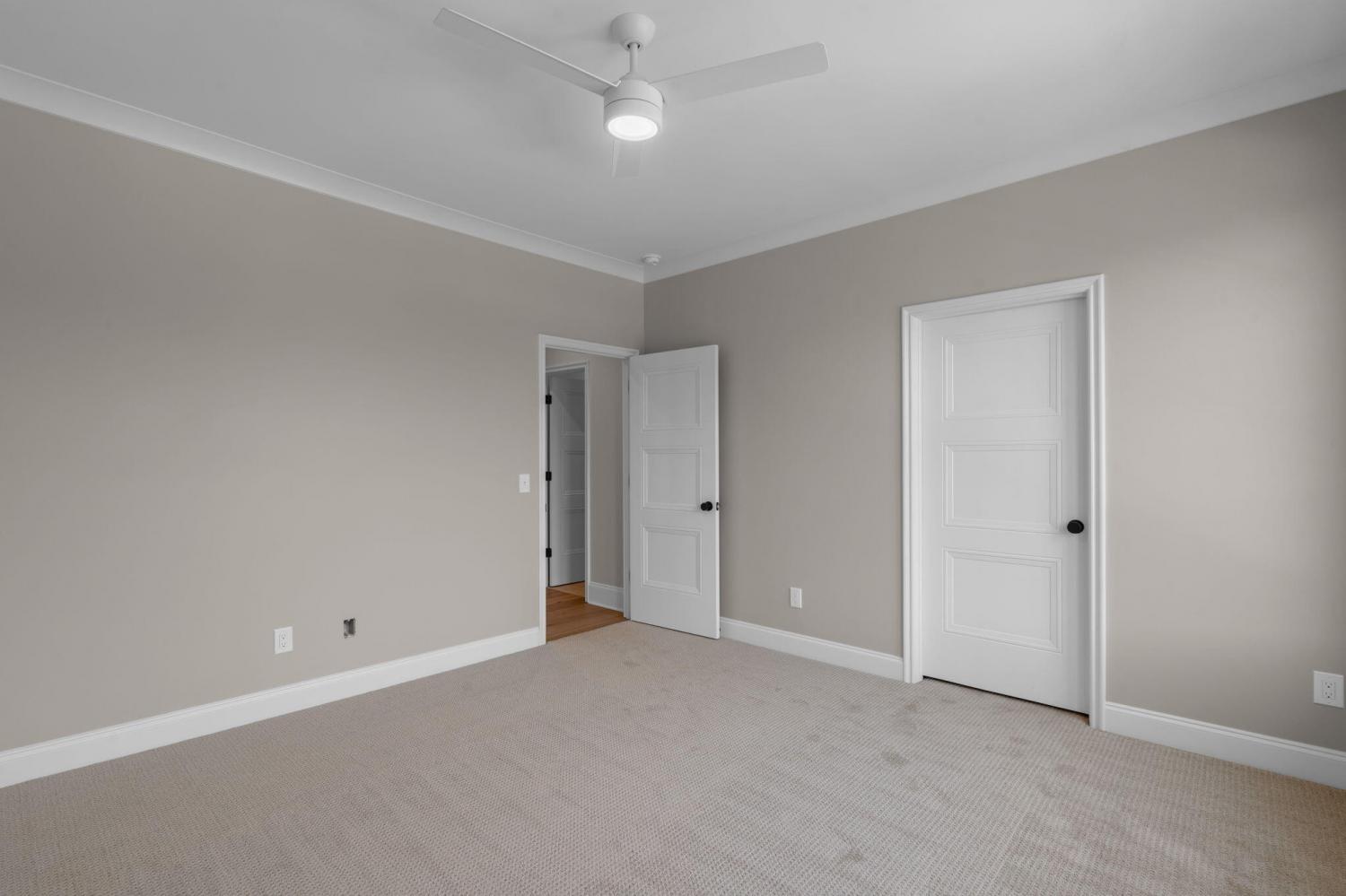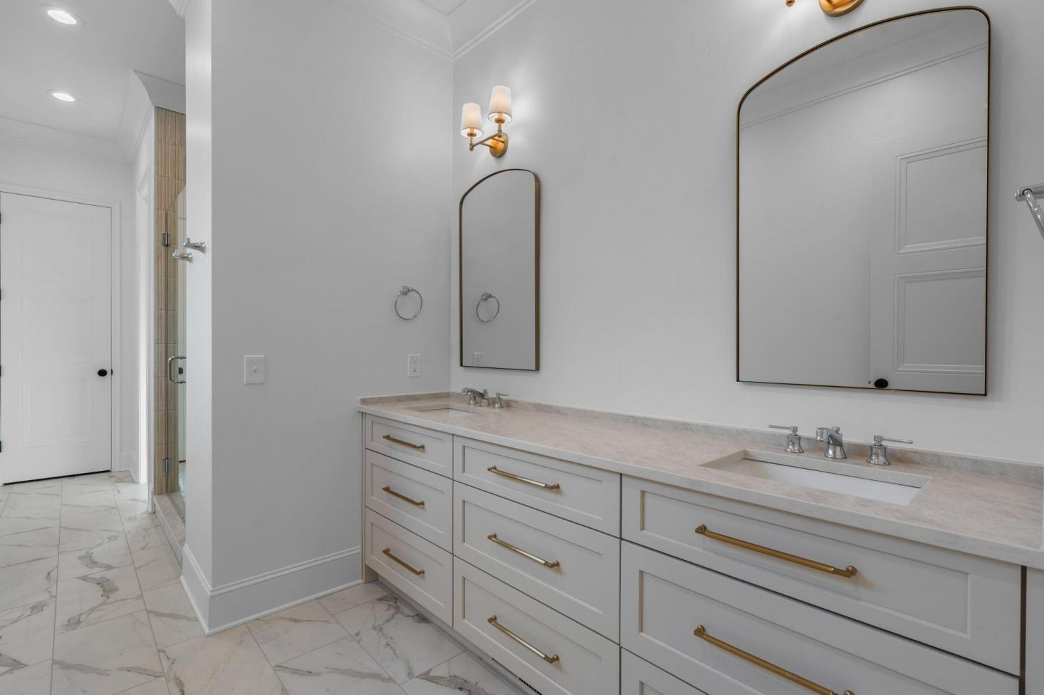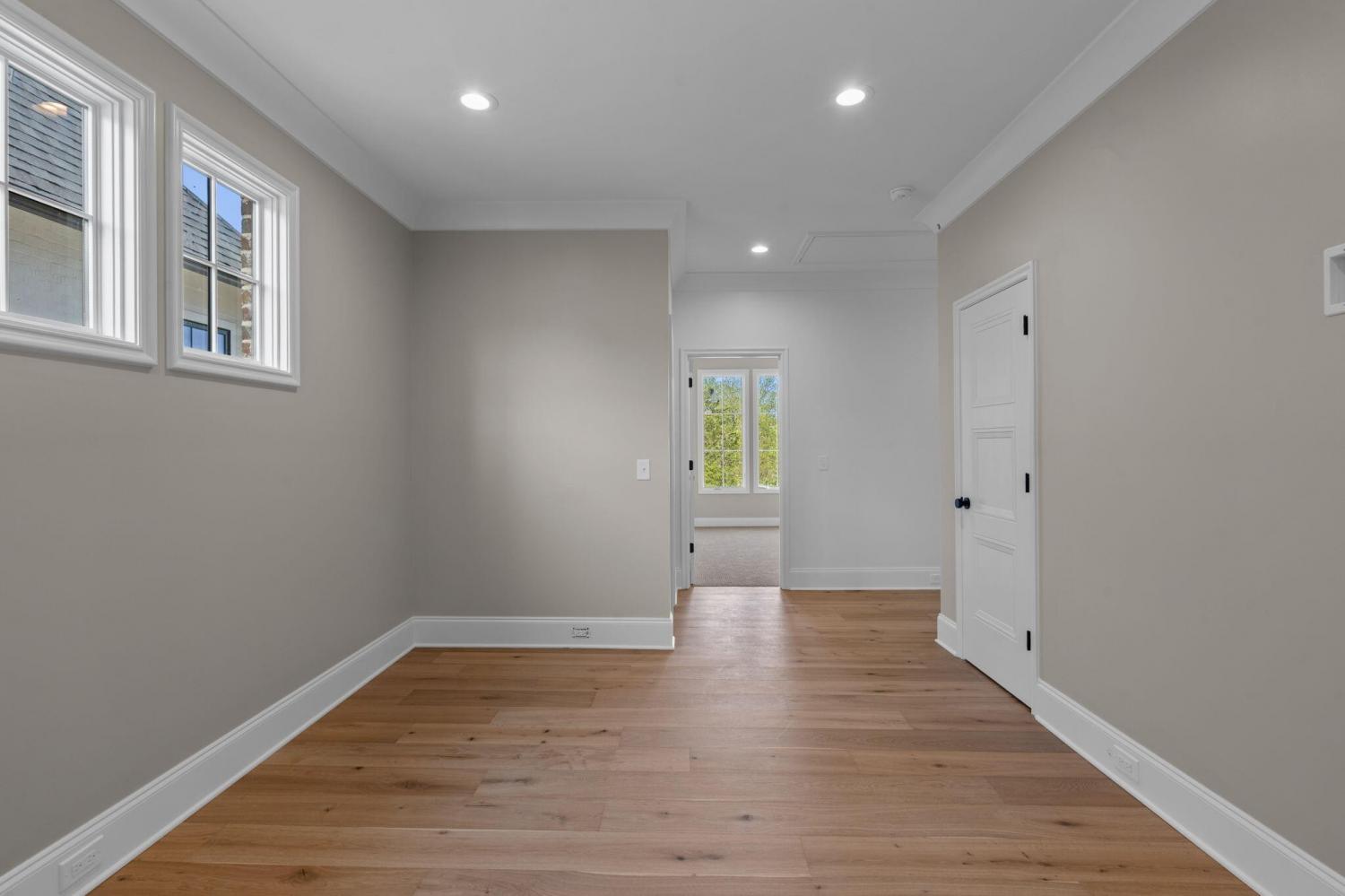 Meet our sales team very Sunday 2pm - 4pm! Enjoy effortless main-level living in The Townsend, Waters-Holland's most popular villa plan in Ooltewah's Grantham Square, complete with a spacious primary suite and an open-concept layout that frames stunning views of the community's largest pond. Classic brick and fiber-cement siding, wrought-iron accents, and a covered front vestibule create timeless curb appeal. An 8-foot-tall wood entry door with 3/4-light glass welcomes you into a dramatic, light-filled two-story foyer with soaring ceilings. The front-facing great room captivates with a full wall of windows overlooking the pond and expansive greenspace. Centered on a gas fireplace flanked by custom built-in cabinetry, the room feels both grand and inviting. Flowing seamlessly from the great room, the gourmet kitchen and dining area are anchored by an oversized center island ideal for casual meals and entertaining. Finishes include quartz countertops, locally crafted custom cabinetry, and premium Fisher & Paykel stainless appliances featuring a 36-inch gas range, integrated dishwasher, and Sharp microwave drawer. The kitchen sink is perfectly positioned beneath a window that overlooks the private side yard, while a hidden walk-in pantry offers abundant storage. Tucked away for privacy, the main-level primary suite boasts a large walk-in closet with custom built-ins and a spa-like en suite bath with dual vanity, oversized 6' x 4' tiled shower, private water closet, and linen closet. A guest powder room, full laundry room with cabinetry and sink, and direct garage access complete the first floor. Upstairs, two generously sized bedrooms each include walk-in closets and share two full baths--one en suite and one conveniently nearby. The front bedroom enjoys the same sweeping pond views as the great room below. A spacious loft provides flexible space for a home office, media room, or play area and offers easy walk-out attic access for additional storage.
