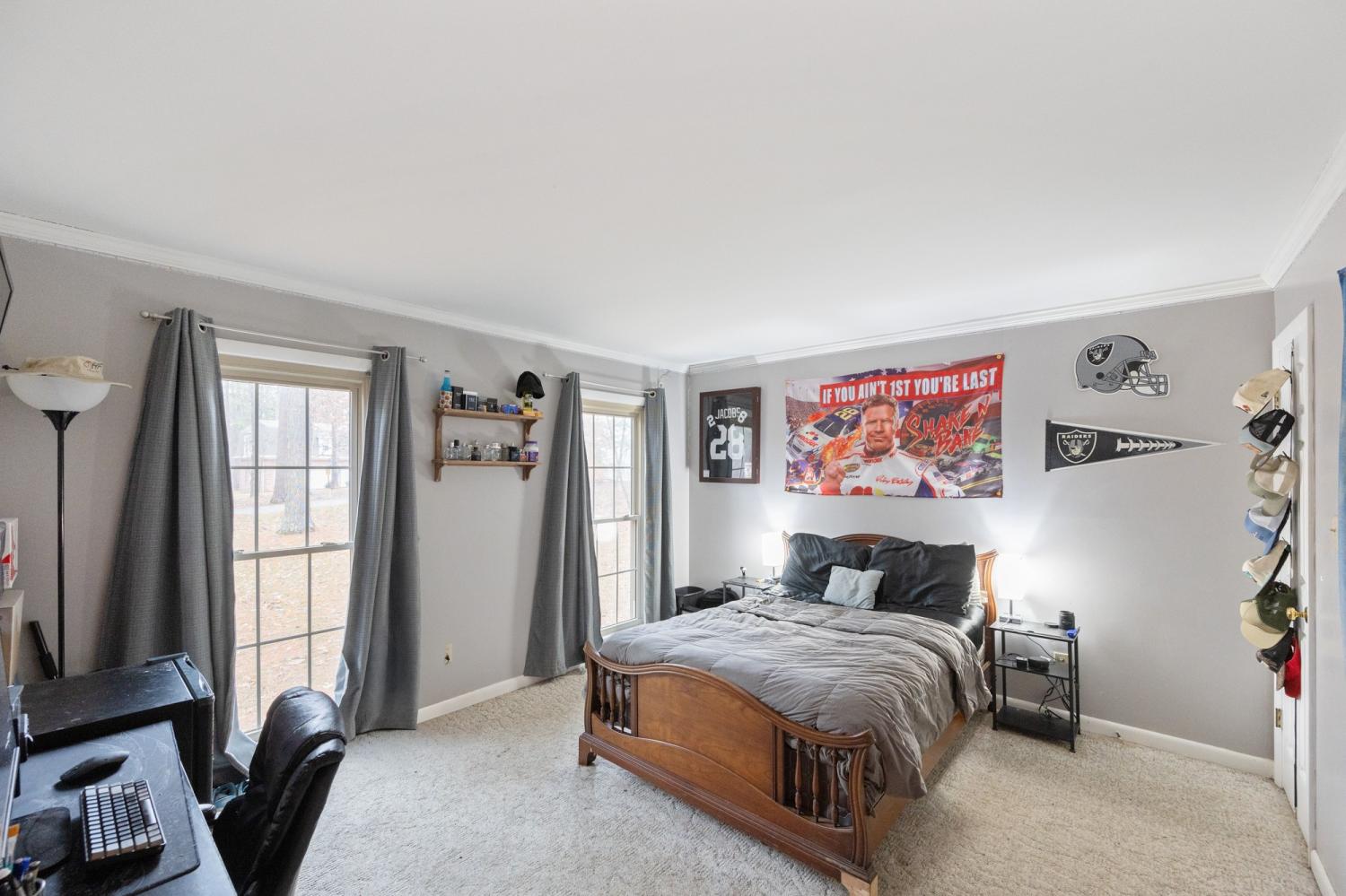 Welcome to this gorgeous brick colonial home sitting perfectly amongst mature pine trees, offering space, privacy, and timeless curb appeal. This 5-bedroom, 3.5-bath home sits on a beautiful, wooded lot and provides a perfect blend of traditional character and functional living. The front entry leads into spacious living areas designed for both everyday comfort and entertaining. With multiple living and gathering spaces, the layout offers flexibility for formal dining, a home office, or a cozy family room. The large, beautiful kitchen is thoughtfully designed for both everyday use and entertaining. It is well equipped with custom cabinet space along with gorgeous granite countertops! All bedrooms are quite large, especially the master. Walk-in shower inside the master bath. Full-finished basement provides ample space as an extra bedroom, living area, game room, etc. Make it what you want! Located in a wonderful, quiet neighborhood close to all amenities! Come tour this one today!