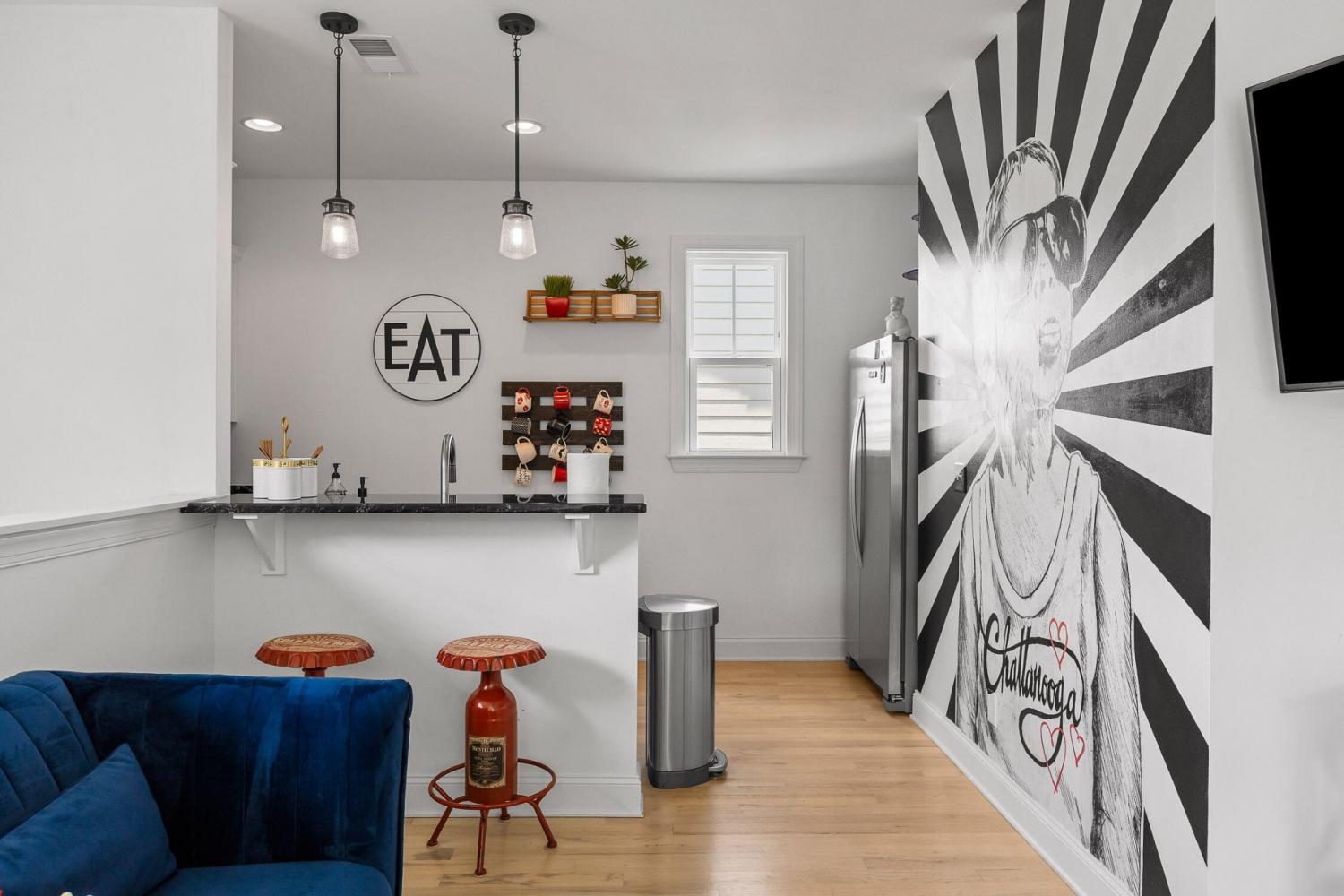 *Views you have to see in person with a rare attached garage apartment in the heart of St Elmo.* This exceptional custom home delivers sweeping Downtown Chattanooga views, timeless craftsmanship, and a layout that offers flexible living options or the opportunity to let Airbnb help cover your mortgage. Inside, you will love the convenience of a true primary suite on the main level, complete with beautiful tile work, granite countertops, and elevated finishes. A second full primary suite upstairs creates an ideal setup for multi generational living, long term guests, or simply giving everyone their own private retreat. The open layout is anchored by a centerpiece kitchen with crisp white cabinetry, a designer island, two oversized pantries, granite countertops, and stainless steel appliances. The main level feels bright, spacious, and perfect for both everyday living and entertaining. Upstairs, two additional well sized bedrooms offer generous closet space and great natural light. Red oak hardwood floors now run throughout the entire home, replacing the carpet shown in some older photos. Nine foot ceilings with crown molding and a grand gas fireplace add warmth and character throughout. A true two car garage, a rare find in St Elmo, adds everyday convenience and valuable storage. Located just a short walk to the vibrant St Elmo community and bikeable to Downtown Chattanooga, you will enjoy quick access to local restaurants, shops, the Riverwalk, and all the Lookout Mountain trails. Publix and Food City are just minutes away for everyday convenience. Whether you choose to use the apartment for guests, family, or short term rental flexibility, this home offers an unmatched combination of views, versatility, and location. Opportunities like this rarely come to market in St Elmo and when they do they do not last. If you have been waiting for the one this is your sign to schedule a tour before someone else beats you to it.