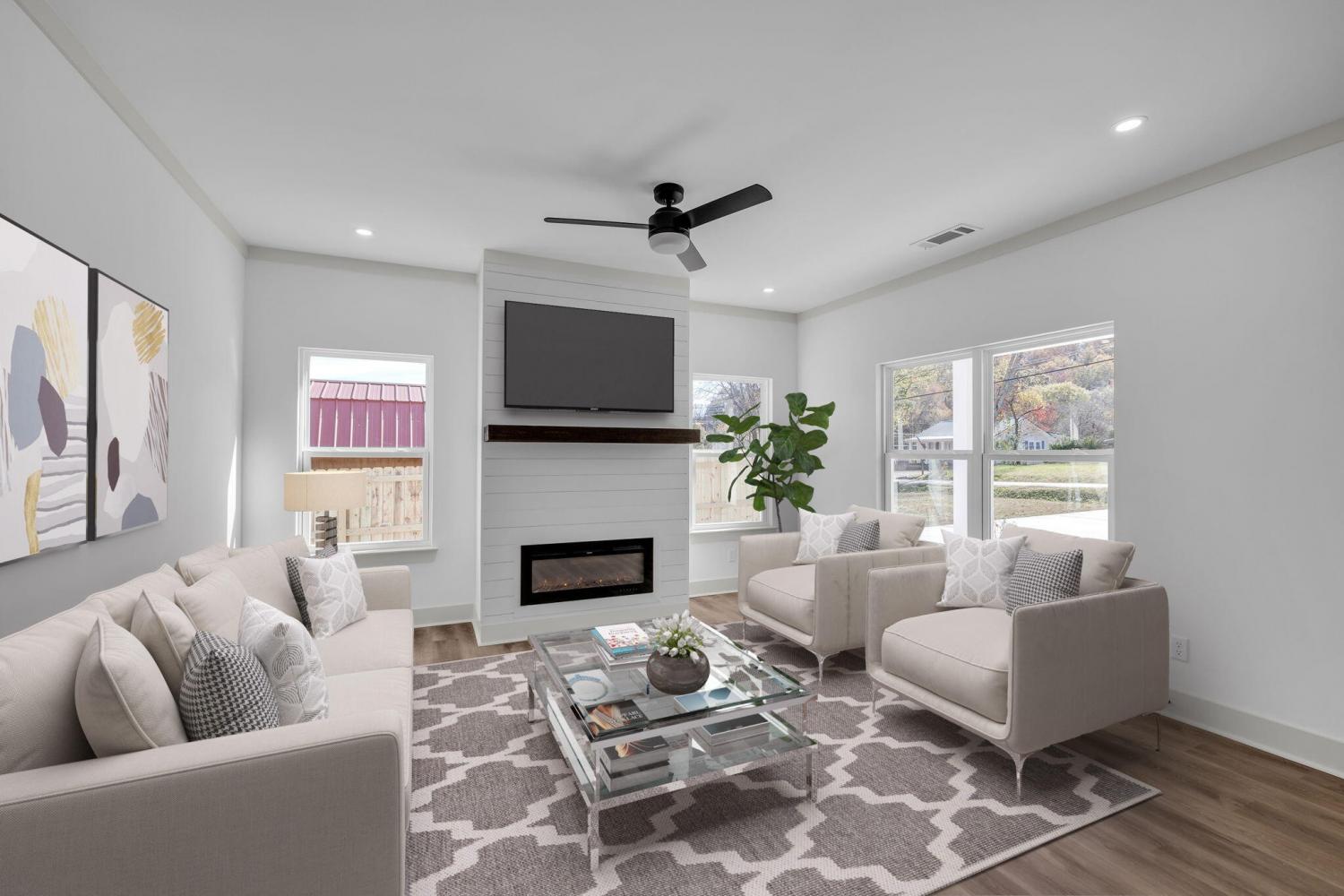 Open house this Saturday from 1PM to 3PM! A beautifully finished new home in a growing and historic community—this is your opportunity to be part of the next chapter in East Chattanooga's incredible transformation. Located just minutes from Downtown Chattanooga, the airport, Hixson, East Brainerd, Hwy 58, the lake, and the 12-mile South Chickamauga Creek Greenway, this brand-new home offers unbeatable convenience paired with modern urban living. Whether you love outdoor recreation or easy access to city amenities, this location puts everything within reach. Come be part of the exciting revitalization of East Chattanooga and the rebirth of Glass Street—an initiative officially announced by the City of Chattanooga for January 2025. Once the vibrant center of life for the Glass Farms, Boyce, and Avondale communities, the area is now blending historic charm with new energy, growth, and opportunity. Inside, the open floorplan and 9' ceilings create a bright, airy atmosphere flooded with natural light from large windows throughout. The living room features a stylish shiplap-accented fireplace, providing a warm focal point for the space. The spacious kitchen stands out with abundant cabinetry, a pantry, granite countertops, tile backsplash, a large island with breakfast bar seating, and stainless steel appliances—making everyday living and entertaining effortless. A hallway leads to the laundry area, two guest bedrooms, and a full guest bath equipped with tile flooring, an oil-rubbed bronze tub/shower combo, and timeless finishes. The primary suite offers privacy and comfort with generous natural light and direct access to the backyard. The ensuite bath includes a double vanity with undercount porcelain sinks, quartz countertops, an oversized tiled shower, a separate toilet room, and a walk-in closet. Step outside into the large backyard and oversized front porch—ideal for outdoor living, gardening, or creating your own personalized retreat.