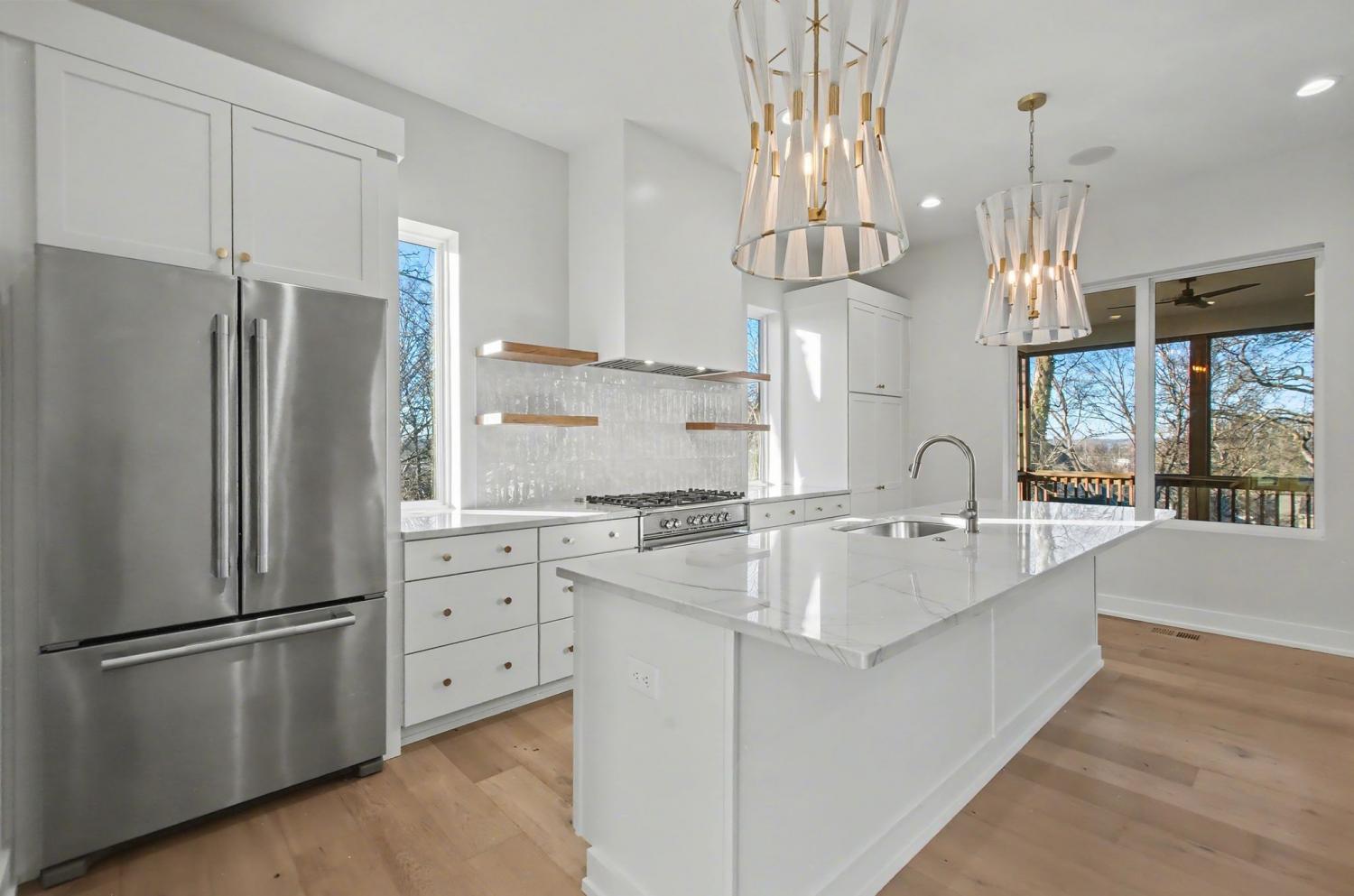 Stunning Home in One of Nashville’s Most Desired Neighborhoods! This beautifully designed property offers high-end finishes throughout. The chef’s kitchen features stainless steel appliances, a gas cooktop, an oversized pantry, and a generous island that opens to the dining and living areas complete with a cozy fireplace. Enjoy peaceful mornings and relaxing evenings on the dreamy screened-in deck. The main level includes the primary suite and a secondary bedroom, with the primary offering its own washer/dryer connection. All bedrooms are en suite, and the spacious bonus room can easily serve as a fifth bedroom, complete with its own full bath. Expansive windows flood the home with natural light and offer treetop and panoramic western views, with remote-control blinds on select windows. Additional highlights include an oversized two-car garage, a fenced backyard with an electric gate and a parking pad that accommodates 4–6 cars—plus convenient on-street parking for quick, one-step entry!