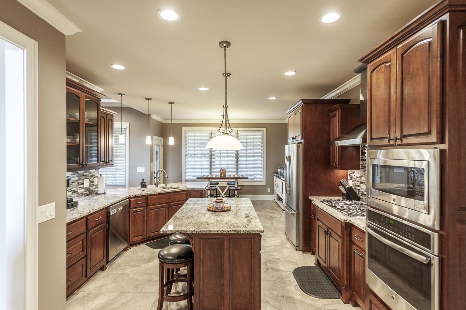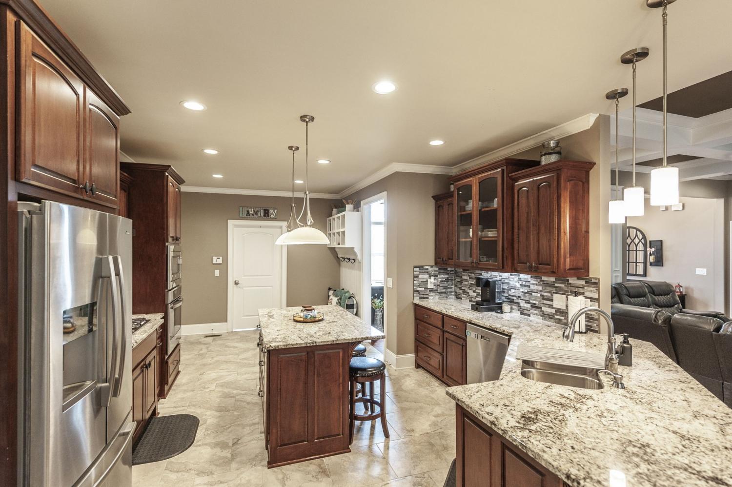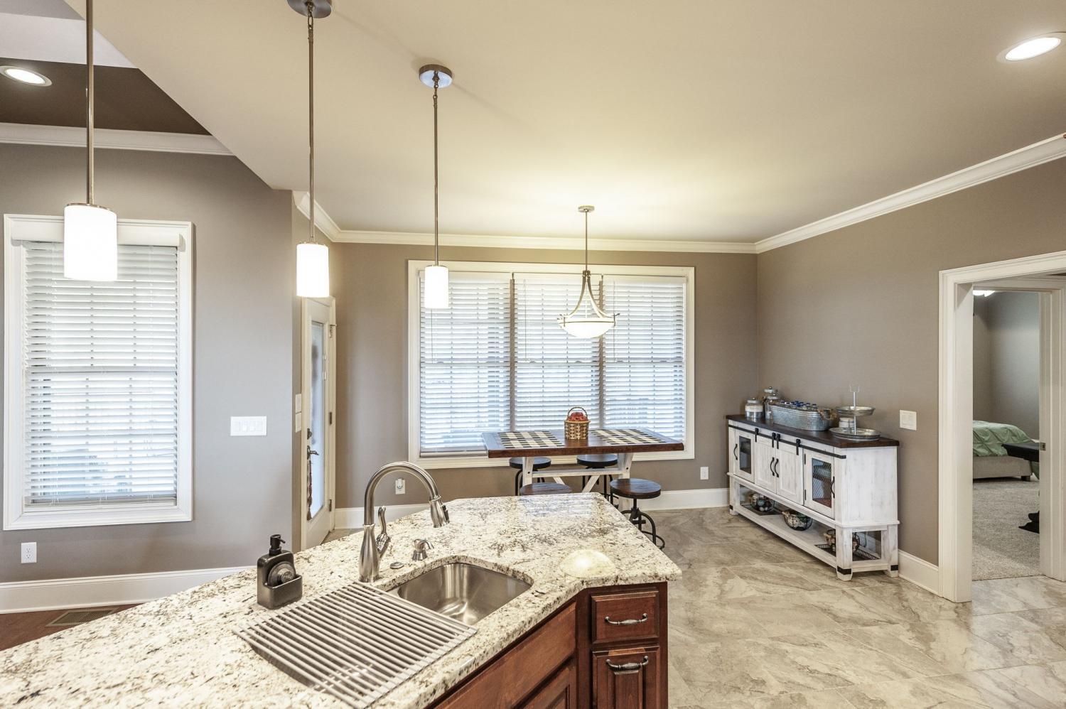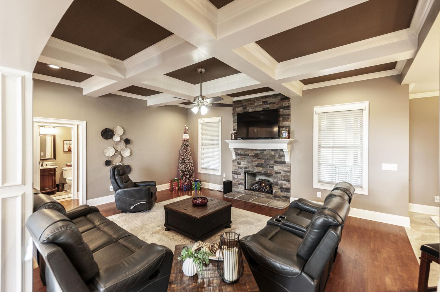 Don't miss this rare opportunity to own a Custom built 3 Bedroom 2.5 bath, all brick home in a Golf Community**Situated on a large corner lot that backs up to wooded acreage**Nearly 3100 sq.Ft. of OPEN Concept Living Space with special ceilings throughout**All on 1 level except for Bonus Room**Inviting Foyer with a barrel ceiling and ambient lighting** GREAT RM has coffered ceiling, hardwood floors, beautiful stone gas fireplace**Large eat-in KITCHEN with a CUBBIE space, tile floors, island, bar seating, granite countertops, tile backsplash, beautiful custom maple cabinets, gas cooktop with stainless steel hood & stainless appliances & a walk-in PANTRY, Plenty of room to cook and entertain at the same time**Right off of the Kitchen is the SEPARATE LAUNDRY ROOM with cabinets, built-in ironing board, folding table and an area to hang up clothes**Formal DINING ROOM open to the Great Rm**SUPER large BONUS ROOM with plenty of room to add a Home Theatre, Also features a walk-in attic space**X-Large OWNER'S SUITE is separate from the secondary bedrooms, has double trey ceiling, new carpet, private door going out to the deck**Bath yourself in luxury when you step into the OWNER'S BATHROOM with heated tile floor, a HUGE shower, separate soaking tub, double vanities & a walk-in closet**Spacious SECONDARY BEDROOMS are separated by a Jack-n-Jill bathroom and each bedroom have their own walk-in closet**You will LOVE the big partially covered deck which will accommodate the largest of gatherings**PRIVATE BACKYARD is fenced in**Small yearly HOA fee($300.00)**Close proximity to the Station Camp Schools**Be sure and check out the TALL storage space under the house with concrete floor.......It is a perfect tornado shelter**Definitely put on your LIST to SEE!!....