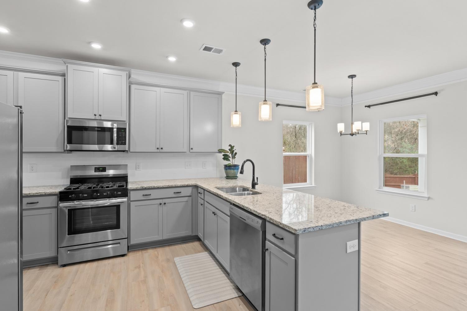 Beautifully maintained home on a quiet cul-de-sac lot featuring a privacy-fenced backyard that backs up to a wooded common area for added seclusion. Enjoy outdoor living on the covered patio, complete with raised planters and a swing set. Inside, the home offers a spacious layout a large entry foyer with wainscoting, contemporary lighting, crown molding, recessed lighting, and tilt-in windows throughout. The kitchen boasts stainless steel appliances, a gas stove, granite countertops, and a walk-in pantry. Generously sized bedrooms include huge walk-in closets. All baths have gorgeous marble counters. The house has been freshly painted. Dual zone HVAC system with smart thermostats. Home has been wired with Ethernet for computers and other devices. Tankless water heater and outdoor gas hookup for grills or heaters. Additional highlights include double drapery rods and a two-car garage. Move-in ready with stylish finishes and wonderful privacy—this one has it all!