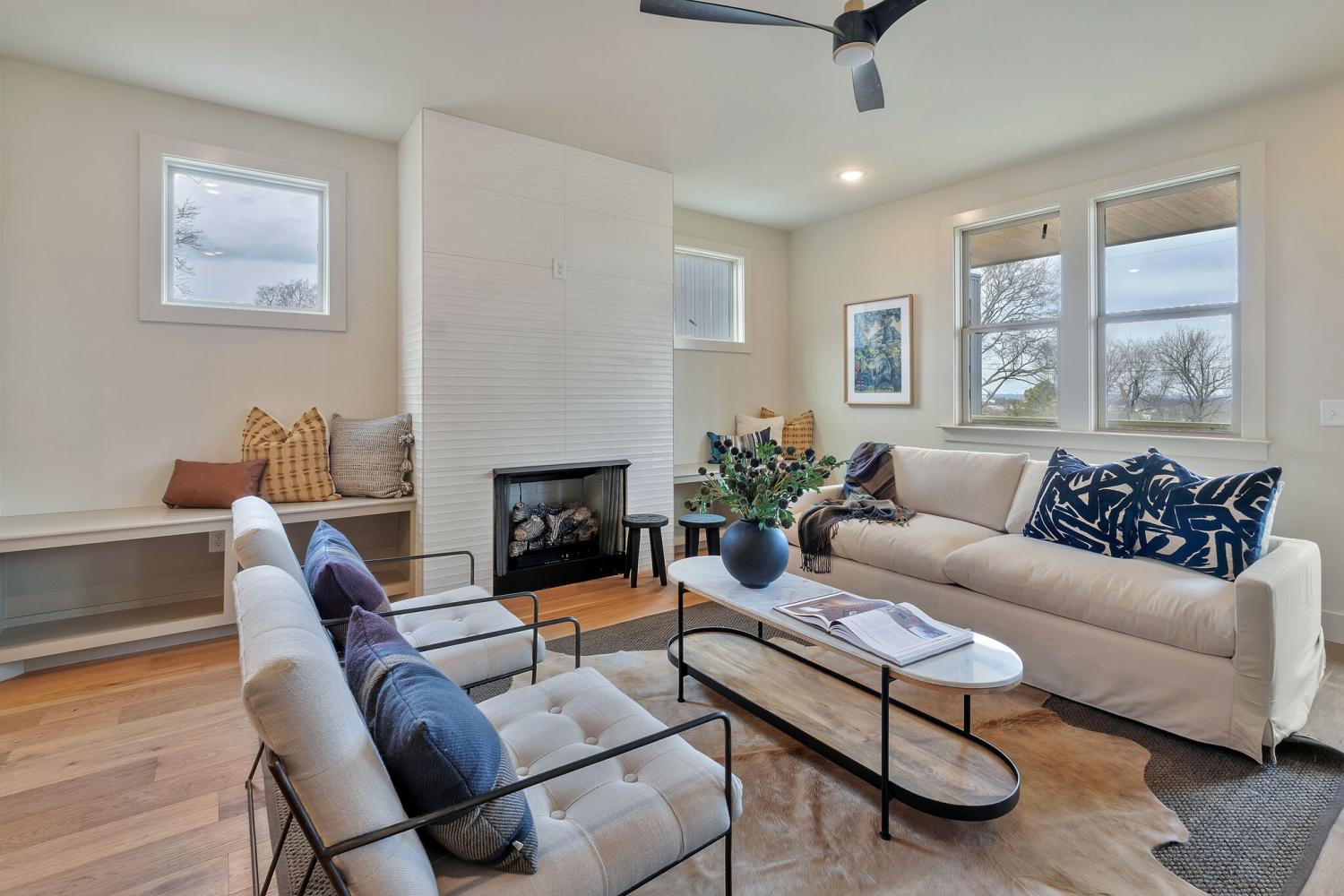Modern style meets everyday convenience in this newer construction home, perfectly positioned just minutes from Downtown Nashville. Thoughtfully designed with clean lines and an effortless flow, this residence offers a sophisticated backdrop for both comfortable living and stylish entertaining. The heart of the home is the spacious, open kitchen—complete with stainless steel appliances, generous storage, and a layout that makes gathering feel natural. The main living spaces are bright and inviting, extending seamlessly to a covered back porch where you can unwind with rare, unobstructed views of the Nashville skyline. It’s a vantage point that continues upstairs into the primary bedroom, creating a backdrop that feels undeniably special. Throughout the home, you’ll find well-appointed bedrooms, spacious closets, and details that balance form and function. Outside, the fenced backyard and detached two-car garage add both privacy and practicality, while the covered patio offers another cozy space to enjoy Tennessee evenings. With its blend of modern design, skyline views, and a location that delivers easy urban access with a sense of suburban calm, this home is the perfect place to settle in without settling at all.