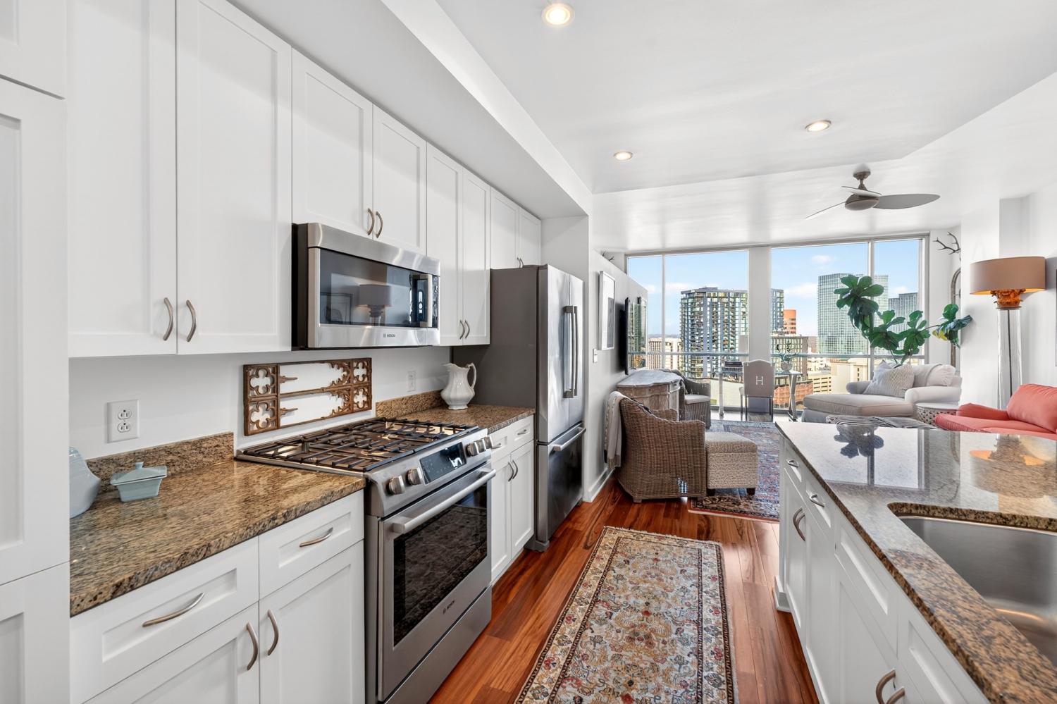 Turnkey, move-in-ready condo in one of Midtown’s most coveted luxury high-rises. This residence offers soaring ceilings, floor-to-ceiling windows, and an open, functional layout perfect for both day-to-day living and elevated entertaining. The interior is fully upgraded with built-ins throughout, upgraded lighting, an upgraded laundry room, and all-new Bosch appliances. The bedroom features a custom closet, automated bedside lighting, and direct access to a private balcony with Midtown and skyline views. Furniture is negotiable for an easy, seamless transition.The Adelicia delivers one of the strongest amenity packages in the city: Olympic-size heated lap pool, landscaped pool deck, 3,000 sq. ft. fitness center with yoga/Pilates studio, 24/7 concierge and security, controlled-access parking, residents’ lounge with catering kitchen, outdoor grills and fire features, private park, and on-site dog park. This condo includes one assigned parking space plus a 9x5 storage unit—rare for Midtown.