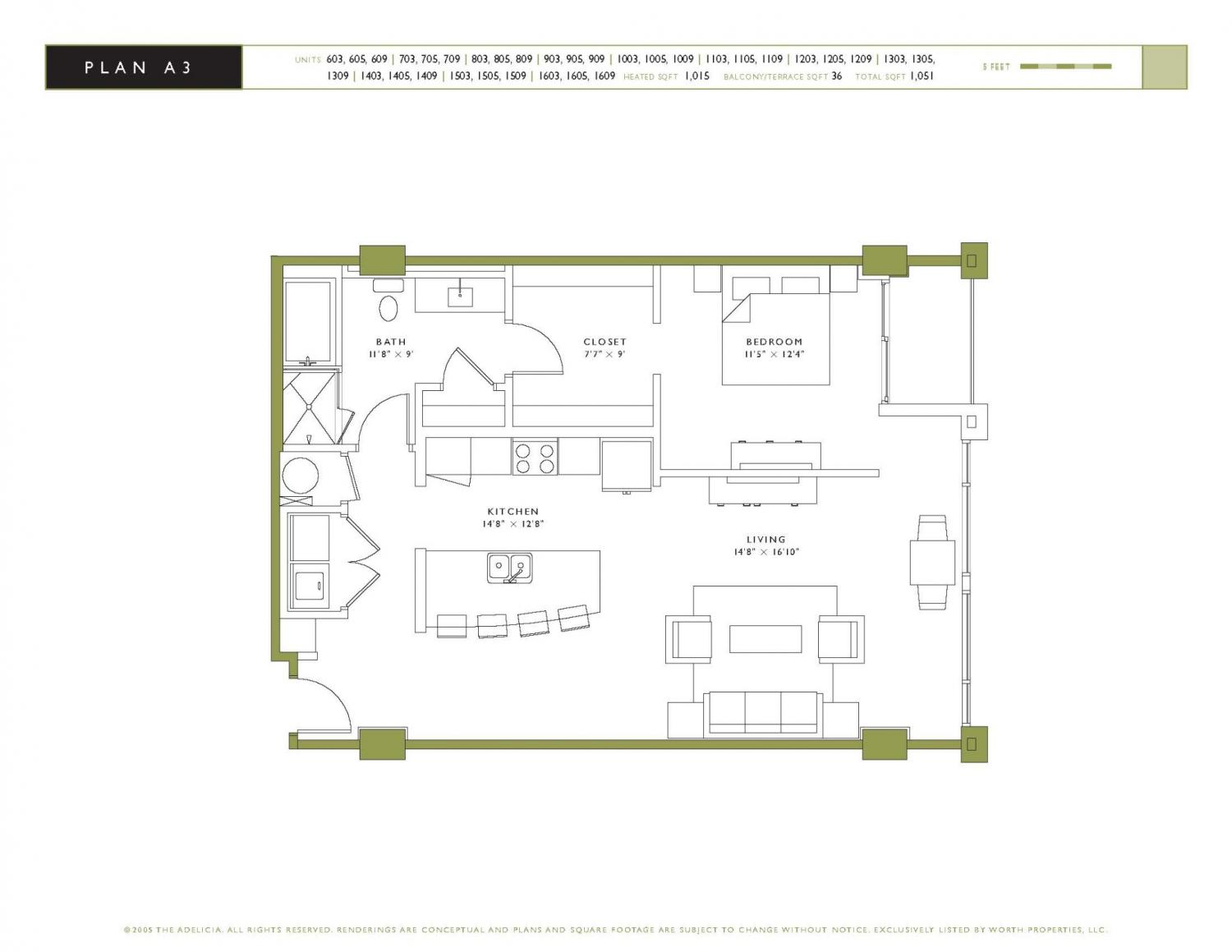 Living Area : 1014 Sq. Ft.