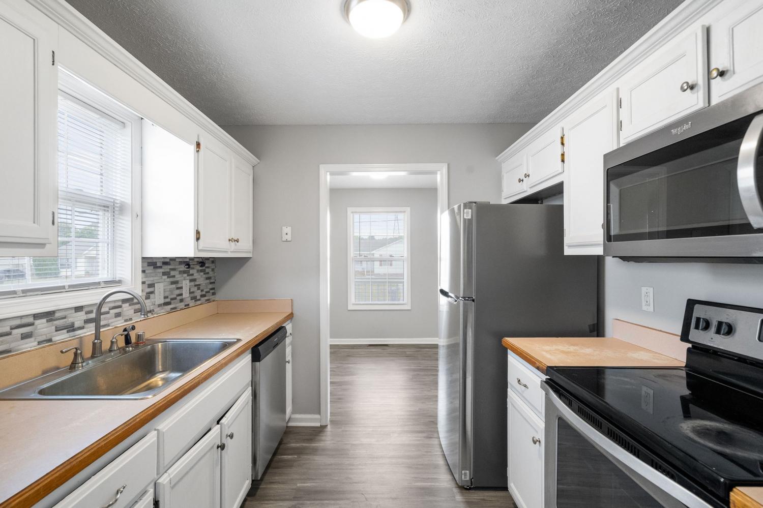 339 Pioneer Drive is a beautiful, newly renovated home for rent in Oak Grove, KY - just minutes from I-24 and Fort Campbell Blvd. when you enter the front door, you'll be in the living room. Through the living room is the hallway leading to the bedrooms and bathroom. To the right of the living room is the dining area. The dining area has a window to allow the room with natural light! To the left of the dining area is the galley-style kitchen. The kitchen comes equipped with a stove, fridge, dishwasher and microwave. Adjoining the kitchen is the utility room that houses the washer and dryer connections. Back through the living room and into the hallway, you'll have one bedroom on your right, one bedroom on your left and a full bathroom in the center. The full bathroom has a single sink vanity with an extended countertop to allow for extra storage space and a shower/tub combo. The primary bedroom is spacious enough for a bedroom set and has a private full bathroom. The full bathroom has a standing shower and single sink vanity with a wall-to-wall countertop. This residence also features a back deck and fenced backyard! Pet Policy: Pets are accepted with an approved pet screening, $350 non-refundable pet fee per pet and $25/monthly pet rent per pet. All pets MUST be approved by pet screening before they can be introduced to the property. *Photos of properties are for general representation and floor plan purposes only. Paint color, appliances, flooring and other interior fixtures may be different. A viewing of the actual residence can be scheduled upon approved application. *