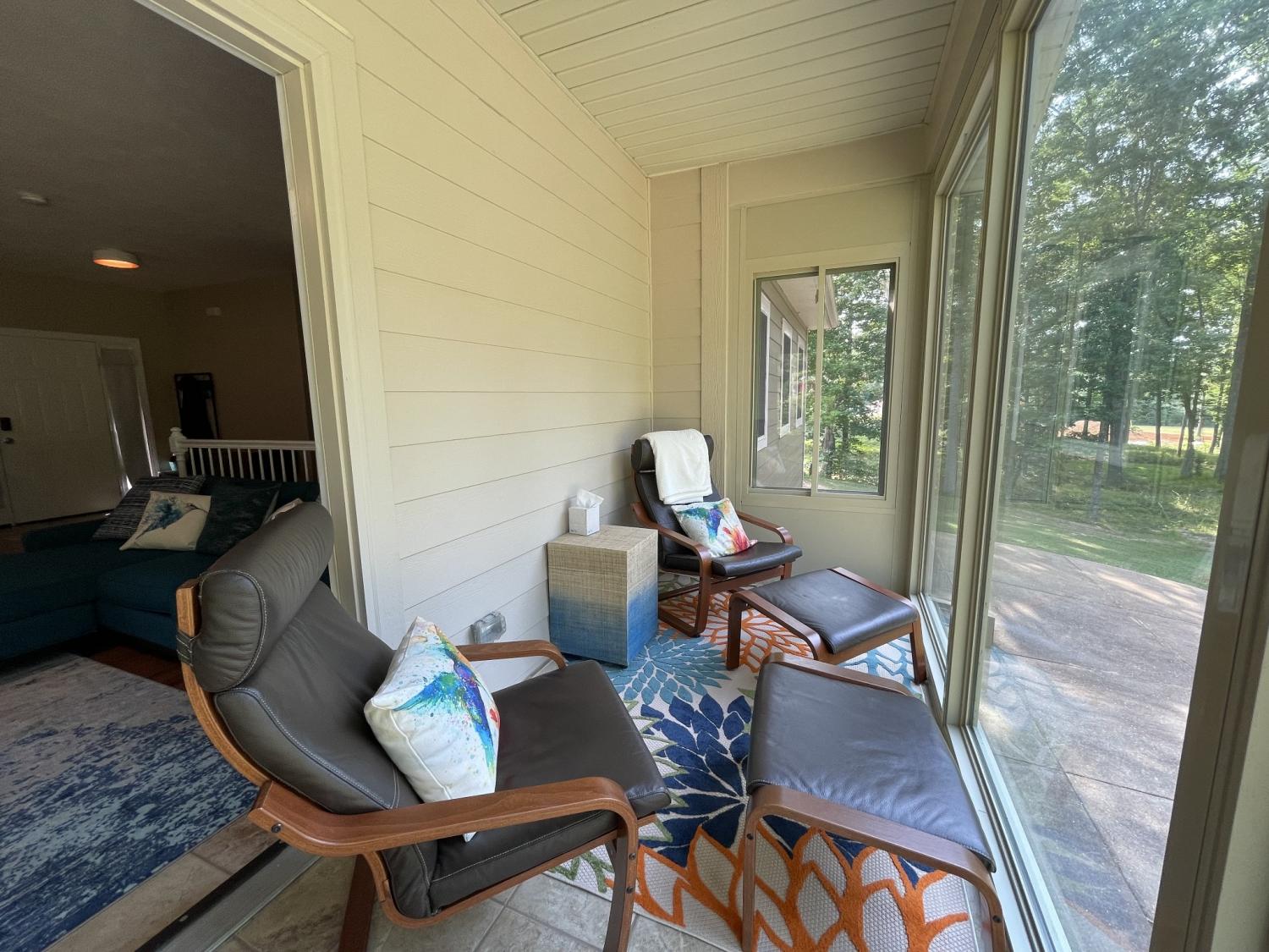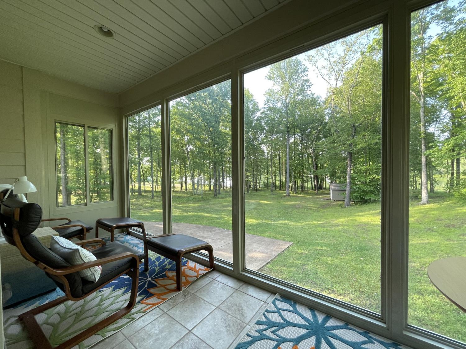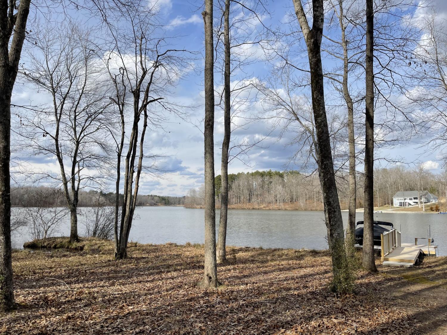 Owner/Agent. Welcome to your peaceful lakefront retreat! This beautifully maintained 2-bedroom, 2-bath home offers main-level living with stunning views of a Jimmy Houston-endorsed fishing lake, known for crappie, bluegill, largemouth bass, shellcrackers, and catfish. Nestled on a full acre in a quiet, gated community, this home is the perfect getaway or full-time residence. Enjoy an open-concept layout with the sunroom flowing into the kitchen and living room—ideal for entertaining or simply soaking in the serene views. The primary bedroom overlooks the water, giving you a front-row seat to nature’s beauty each morning. Downstairs, a spacious rec/bonus room and walk-out basement connect to a heated and cooled 2-car garage—great for hobby space or additional living area. Wildlife lovers will feel right at home, with regular sightings of deer, wild turkey, bald eagles, ducks, and more. Additional features include a gas tankless water heater, gas stove, and gas fireplace. Walk-in closets, extra large pantry and laundry all on the main floor as well. An 8-person Bennington S-Line pontoon boat with 2 electric trolling motors is also available for sale—with only a minimum number of hours on it. Or included, if a full price offer is made. The property includes a private dock and storage shed. Whether you're sipping coffee in the sunroom, fishing off your private dock, or cruising the lake, this home is designed for relaxation. It has served as a cherished personal haven, and now it’s ready for someone new to enjoy. This home is Not in a flood zone and does Not require flood insurance Buyer & buyer's agent to verify all pertinent information. Must be with a realtor to see property since it's in a gated community. Please contact me if you do not have a realtor as I'm happy to show it.