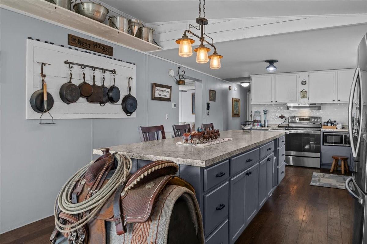 Escape to your own private homestead ranch! Sitting on nearly 24 acres of Greenbelt land, this property offers the freedom you’ve been looking for. The land is a rich blend of woods and pasture that currently produces hay, fenced and ready for your animals. The property is loaded with outbuildings: a 3-bay 30x40 horse barn (w/ electric & water), pole barn, chicken coop, and two 8x12 storage sheds. Nature lovers will appreciate the creek in the front yard, the mature hardwoods (timber value), and a dry pond area with indications of a natural spring. Inside, the home on a permanent foundation is ranch style and spacious. You’ll love the enormous 11-foot kitchen island, updated stainless steel appliances, and the efficiency of the smart-controlled wood pellet stove. With walk-in closets, built in storage, and plenty of space, it’s move-in ready. Whether you are looking for a permanent farm or a place to land while you build a custom estate in the back pasture, this property offers endless possibilities.