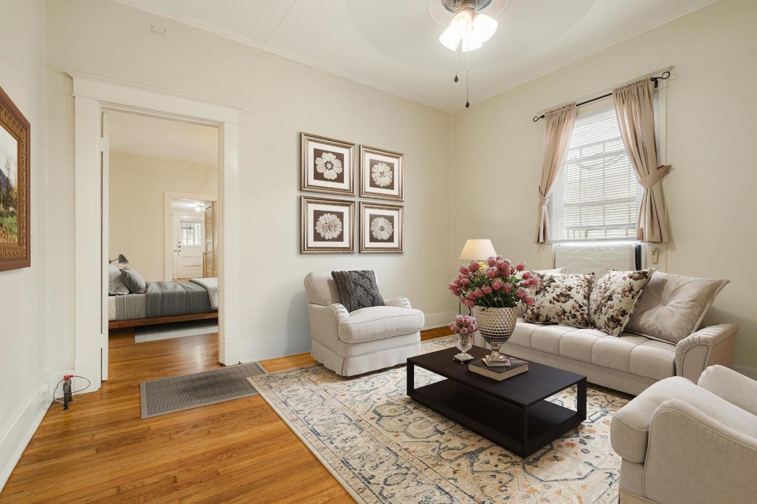 Charming duplex in the heart of the Cooper Young Entertainment district. Close enough to walk to all the restaurants and shops the area has to offer but due to the unusual street configuration you don't have to deal with traffic or overflow parking. Both units are newly renovated with new carpeting and hardwood floors. The larger unit is upstairs/downstairs with vent less gas log fireplace and full sized washer and dryer. The smaller unit is shotgun style unit with laundry room including full sized washer and dryer. Home includes all window treatments and patio furniture.