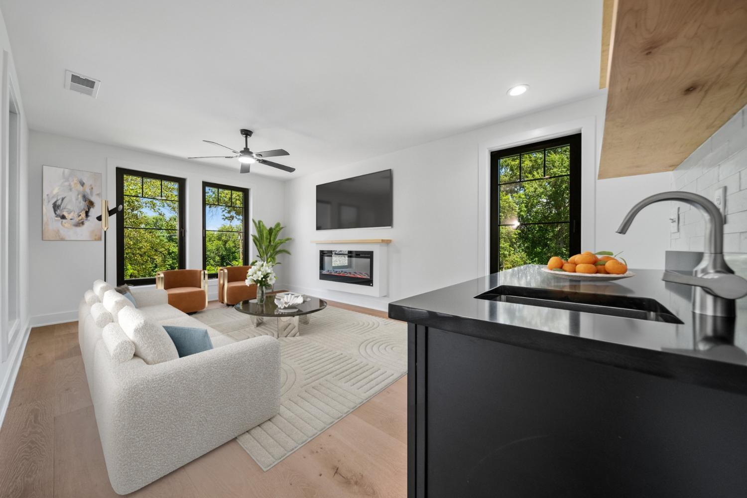 Modern Elegance Meets Urban Charm in Whispering Hills – Brand New Construction. Zoned for Crieve Hall Elementary. Welcome to your dream home in the heart of Nashville’s sought-after Whispering Hills neighborhood. This stunning new construction offers the perfect blend of luxury, design, and functionality across three thoughtfully crafted levels. Step inside to be greeted by the warm sophistication of white oak flooring that flows seamlessly throughout the open-concept layout. Natural light floods the space through Wingate German-engineered windows with tempered glass (tilt-able for easy maintenance), marrying sleek design with superior safety and energy efficiency. This 4-bedroom, 3 full bath, 2 half bath home features Capitol Lighting fixtures that add a touch of designer flair to every room. The meticulously designed kitchen is fully equipped with GE Café appliances and Kraus plumbing fixtures, combining style and performance for culinary enthusiasts and entertainers alike. The showstopper? A wall of accordion doors opening up to your spacious rooftop patio with unobstructed views, perfect for evening cookouts, casual gatherings, or simply soaking Tennessee's beauty. With a 2-car garage, ample storage, and elegant finishes at every turn, this home is built for comfort and crafted for style. Don’t miss your opportunity to own a piece of modern luxury in one of Nashville’s most charming and conveniently located neighborhoods. Home features aggregate driveways for permeability and heat mitigation as well as a fresh air system that circulates fresh air throughout the homes every 4 hours for ECO-Friendly living.