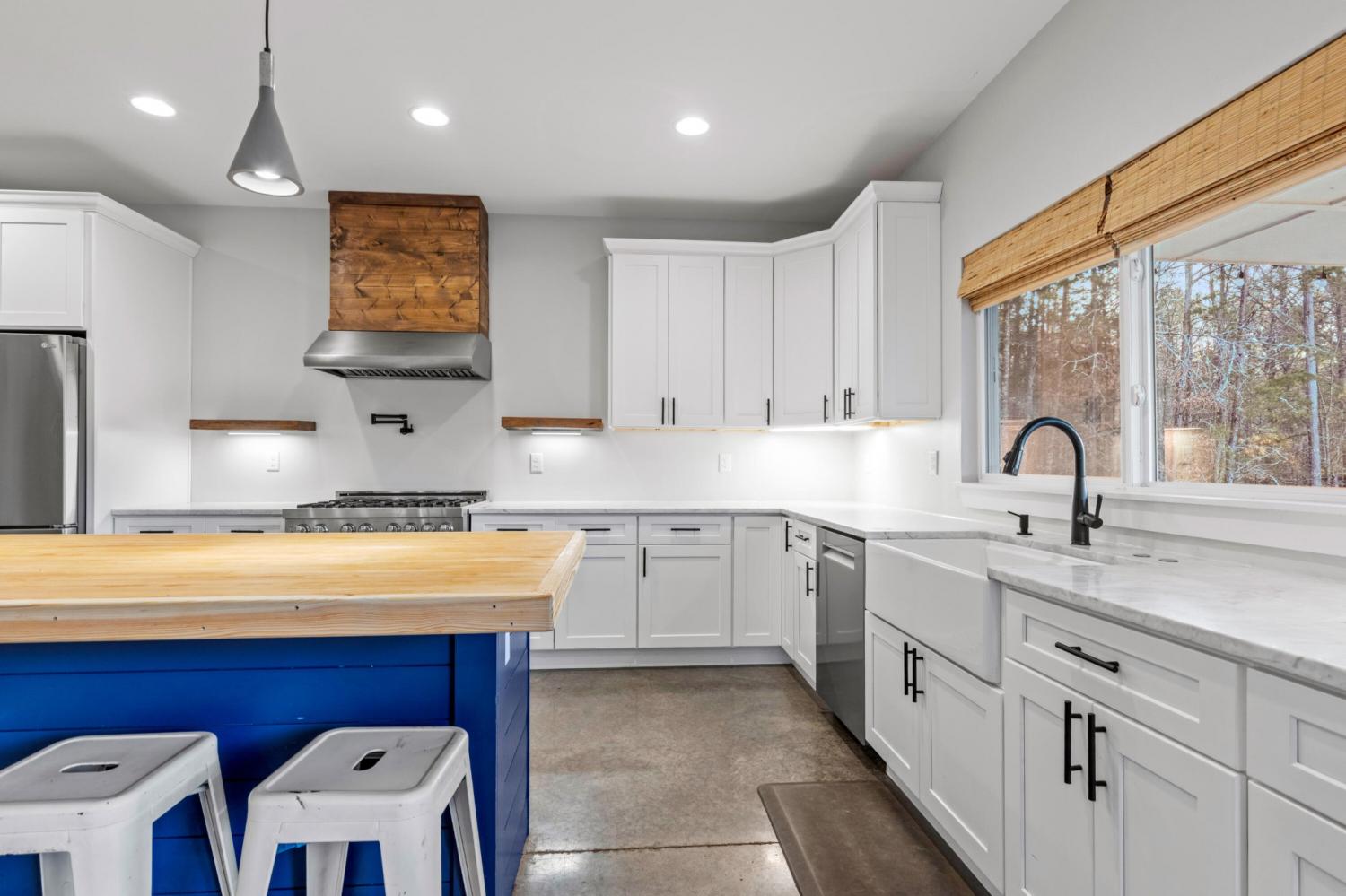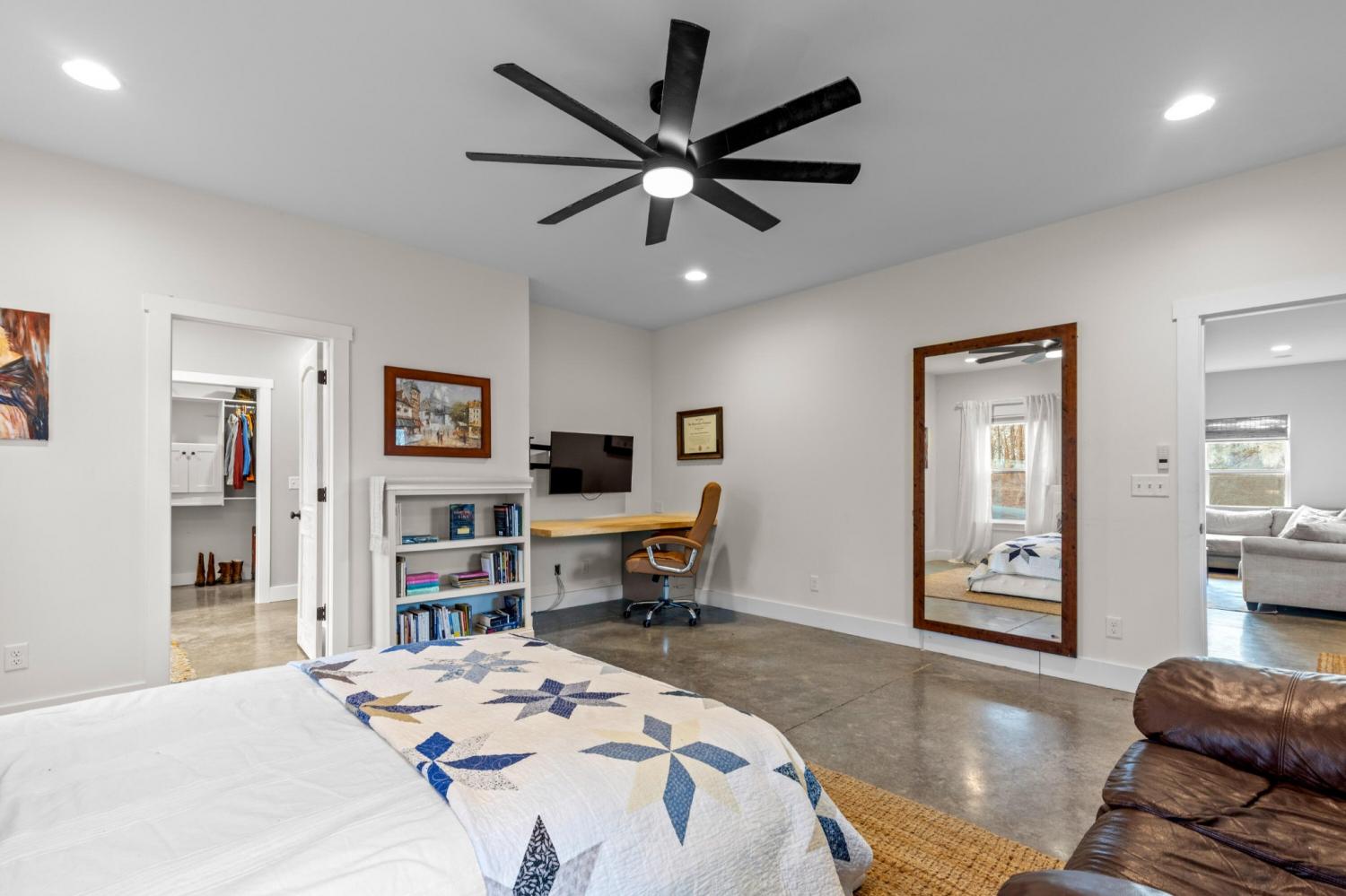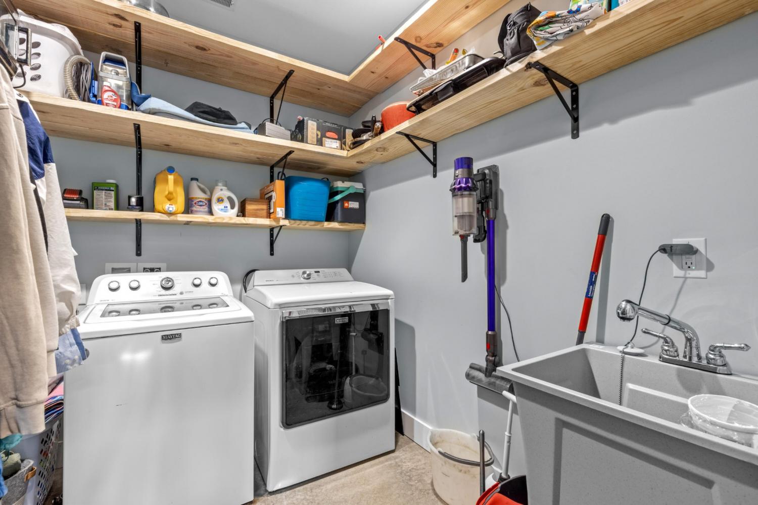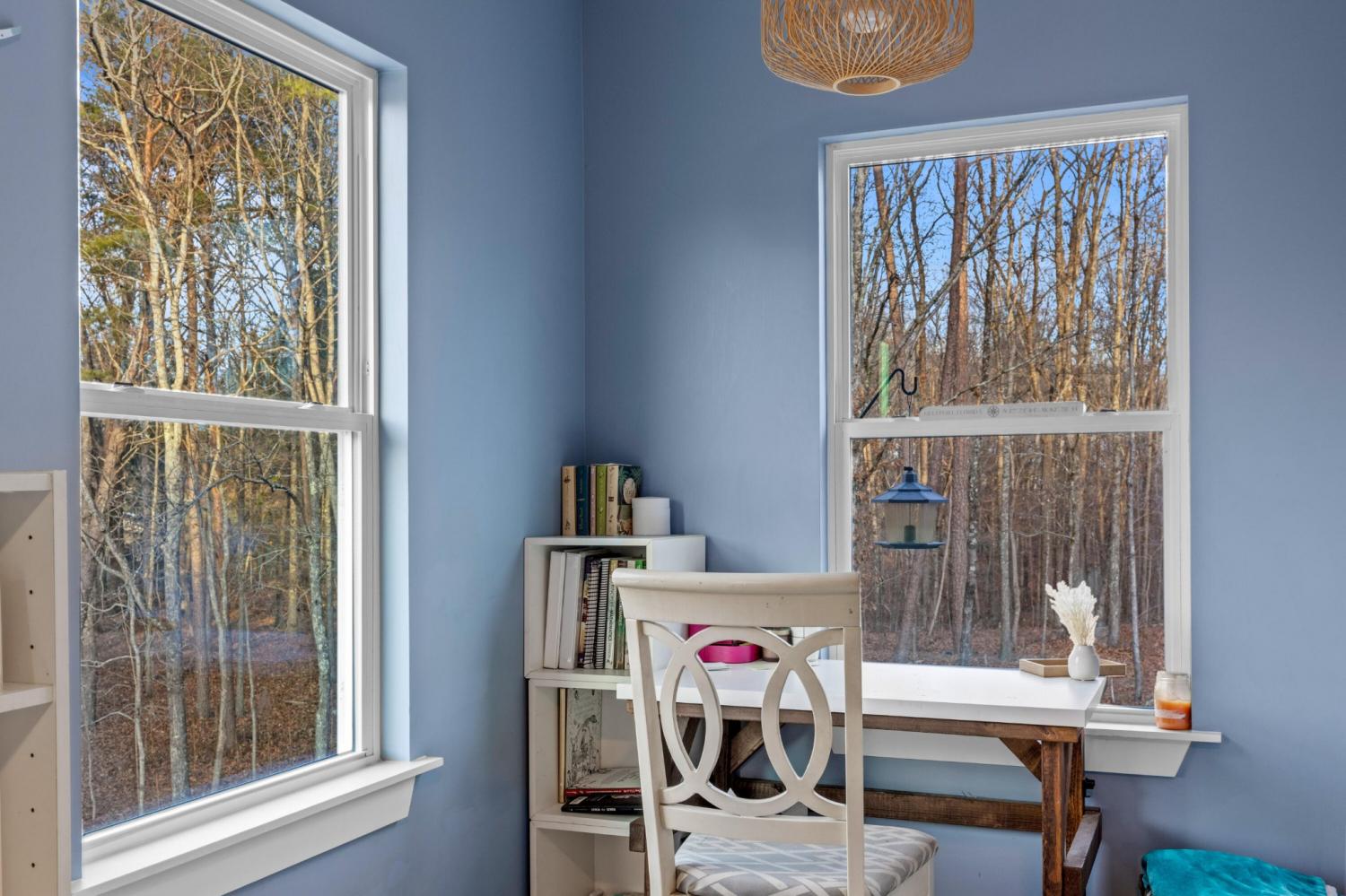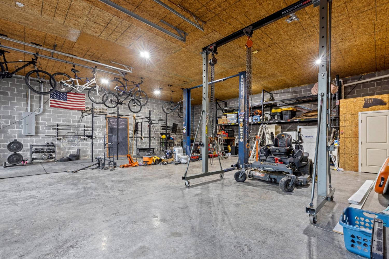 Set on nearly 5.5 acres of flat, usable land in Chickamauga, this custom semi-barndominium style home offers the perfect blend of thoughtful design, flexibility, and long-lasting quality in a peaceful rural setting with convenient access to everyday amenities. The land is enhanced by a young orchard featuring approximately six-year-old apple, peach, pear, plum, and mulberry trees, along with thornless blackberry and blueberry bushes, adding both charm and future harvest potential to the property. Open main-level living areas showcase quality finishes and a striking double-sided fireplace that anchors the living room and flows seamlessly into the kitchen, creating a warm and inviting space for everyday living and entertaining. A functional mudroom, a laundry room on each level of the home, and a spacious primary suite on the main floor add ease and comfort to daily life. The primary suite is designed as a true retreat, featuring a double vanity, walk-in closet with built-in storage, and a luxurious walk-in double shower with seating. Upstairs, a second living space provides flexibility for a media room, play area, or home office. The main home offers five bedrooms, four and a half baths, and approximately 3,360 square feet of well-planned living space, all under a durable metal roof for low-maintenance, long-term peace of mind. Adding exceptional versatility, the three-bay shop-style garage features 10-foot doors on each bay, built two cars deep, along with a convenient half bath. Above the garage is a separate 640-square-foot living suite complete with one bedroom, one bath, a full kitchen, laundry, living area, and a connected deck. With a private entrance and dedicated parking, this space is ideal for guests, multigenerational living, or rental income. The level acreage offers ample room for recreation or future structures, making this property a rare opportunity to enjoy space, function, and flexibility in a beautiful rural setting.