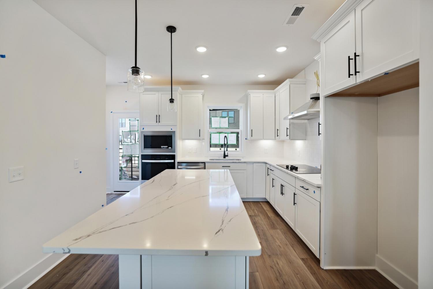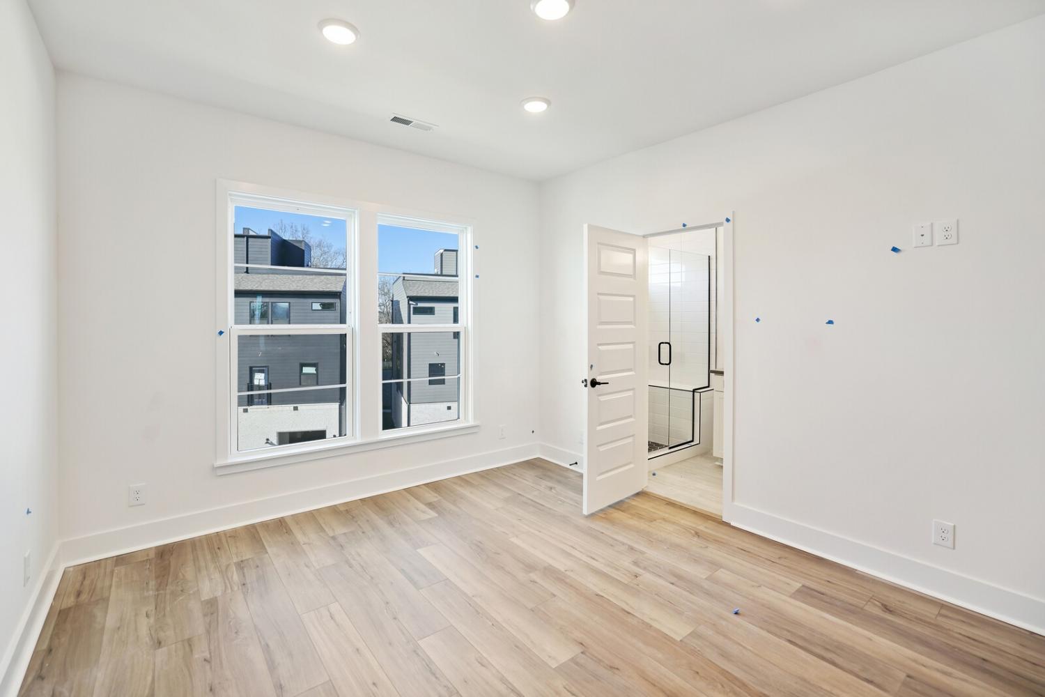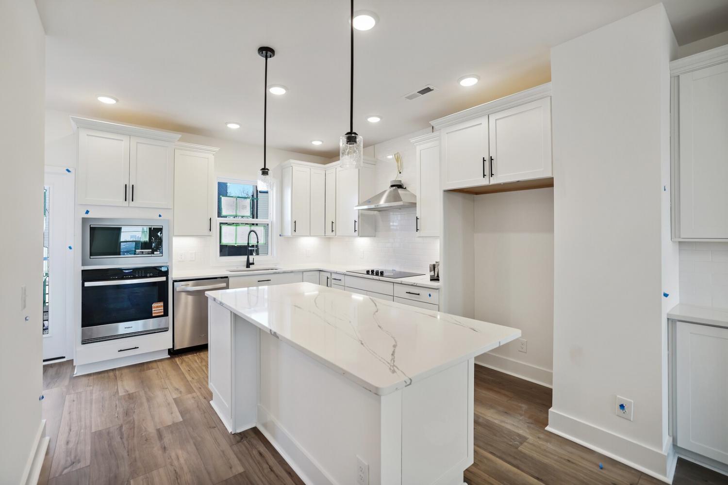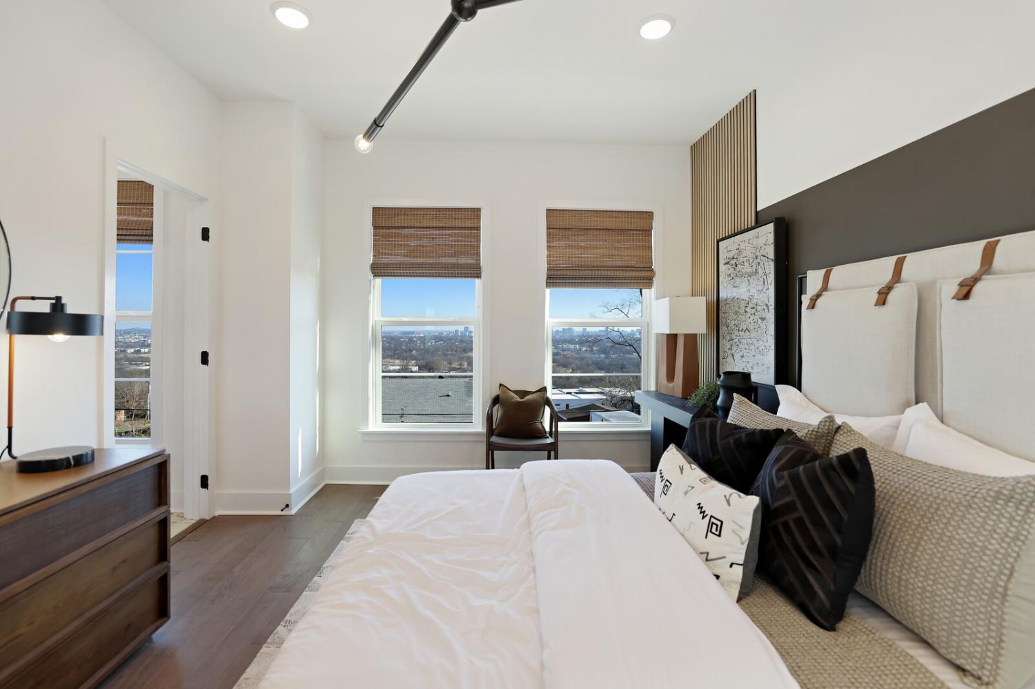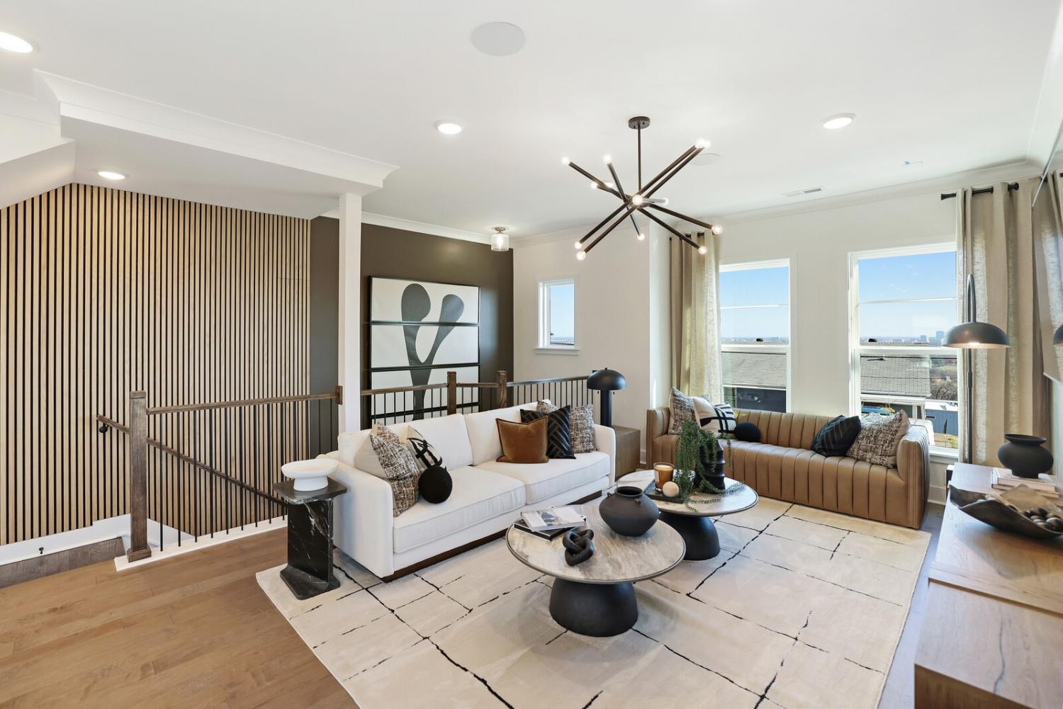 Welcome to this stunning Terravista floorplan, offering 2 bedrooms, 2.5 bathrooms, and 1,624 sq ft of beautifully designed modern living. Thoughtfully crafted with style and functionality in mind, this home features a tandem 2-car garage with extra storage, luxury vinyl plank flooring throughout, and modern matte black fixtures that elevate every room. Step into the open-concept living area, where natural light pours across the space and highlights the striking white-and-black palette with wood panel accents, a true modern designer moment. The eat-in dining area sits surrounded by windows, creating a bright and inviting spot for meals or morning coffee. The gourmet kitchen is a showstopper with quartz countertops, a spacious island, stainless steel appliances, stylish tile backsplash, and additional café cabinetry for extra storage. Upstairs, both bedrooms offer en-suite bathrooms, each featuring a frameless glass shower and contemporary finishes. The laundry is conveniently located on the same level as the bedrooms, making everyday living even easier. Enjoy unforgettable evenings and sweeping views of Music City from your private rooftop terrace, the perfect spot for relaxing or entertaining. Situated in a private location with accessible parking, this home also provides easy access to the community nature trail, ideal for morning walks or weekend strolls. With thoughtful upgrades, beautiful finishes, and a rooftop retreat, this home delivers elevated modern living just minutes from the best of Nashville. Up to 1% lender credit on the loan amount when buyer uses Seller's Preferred Lender.