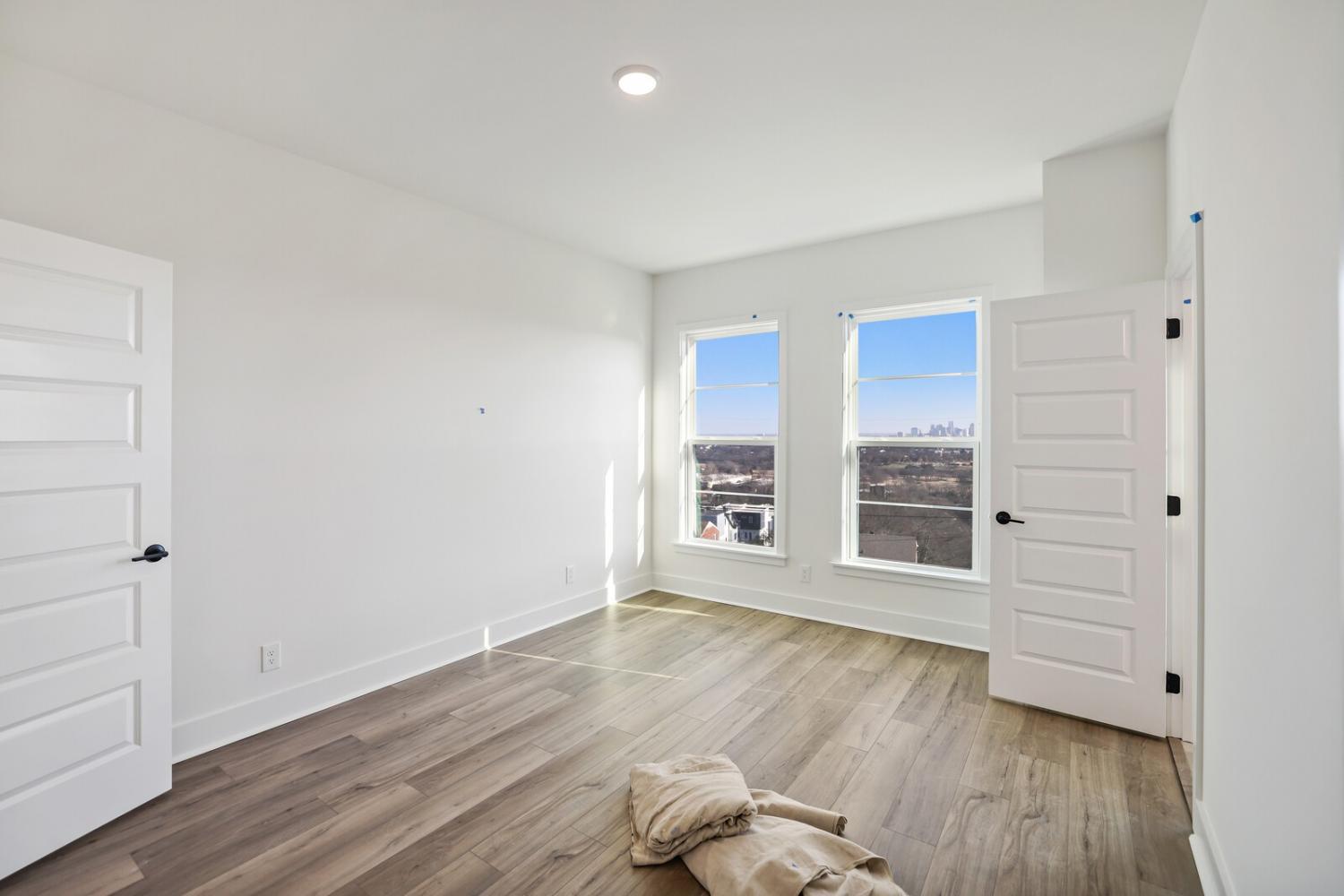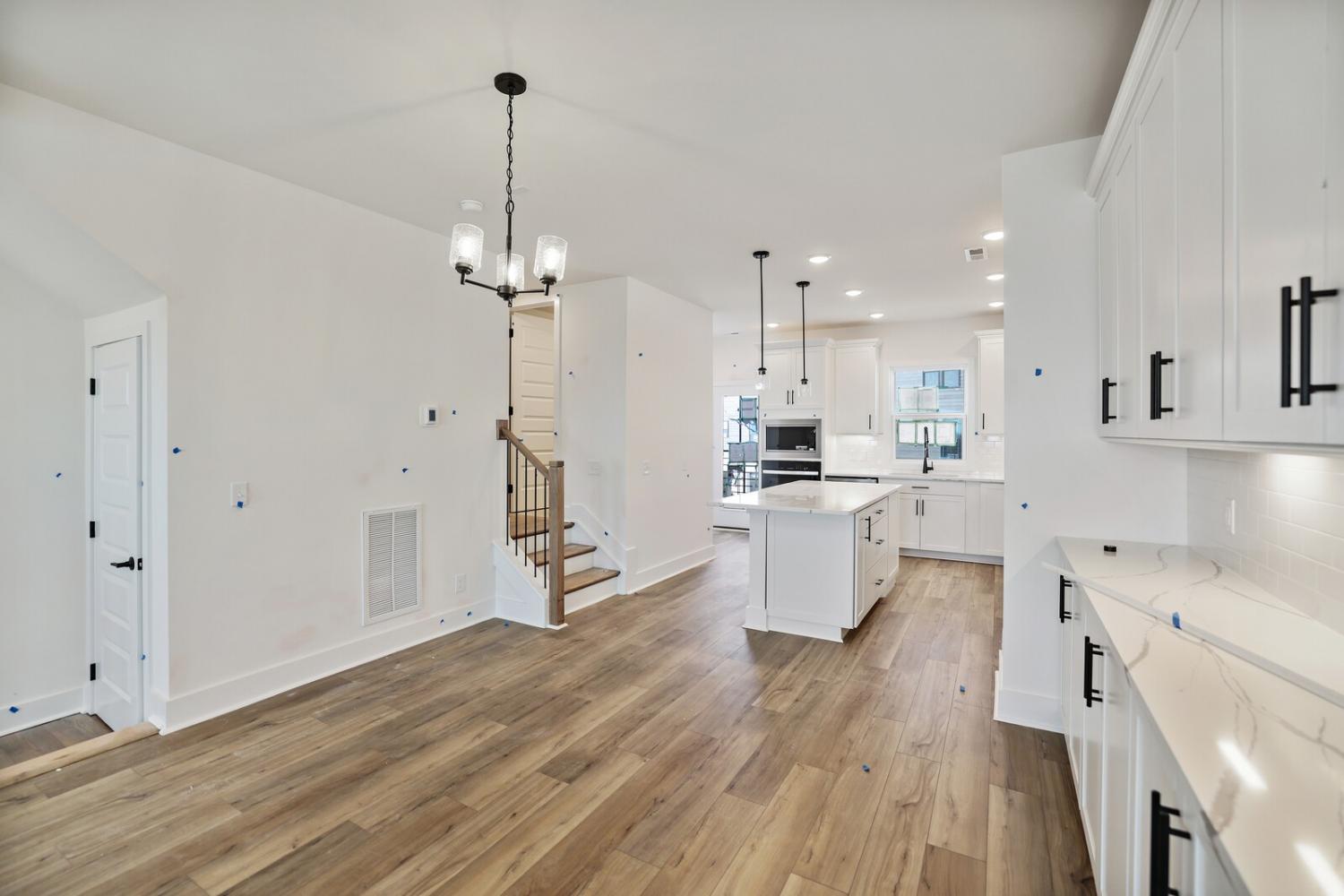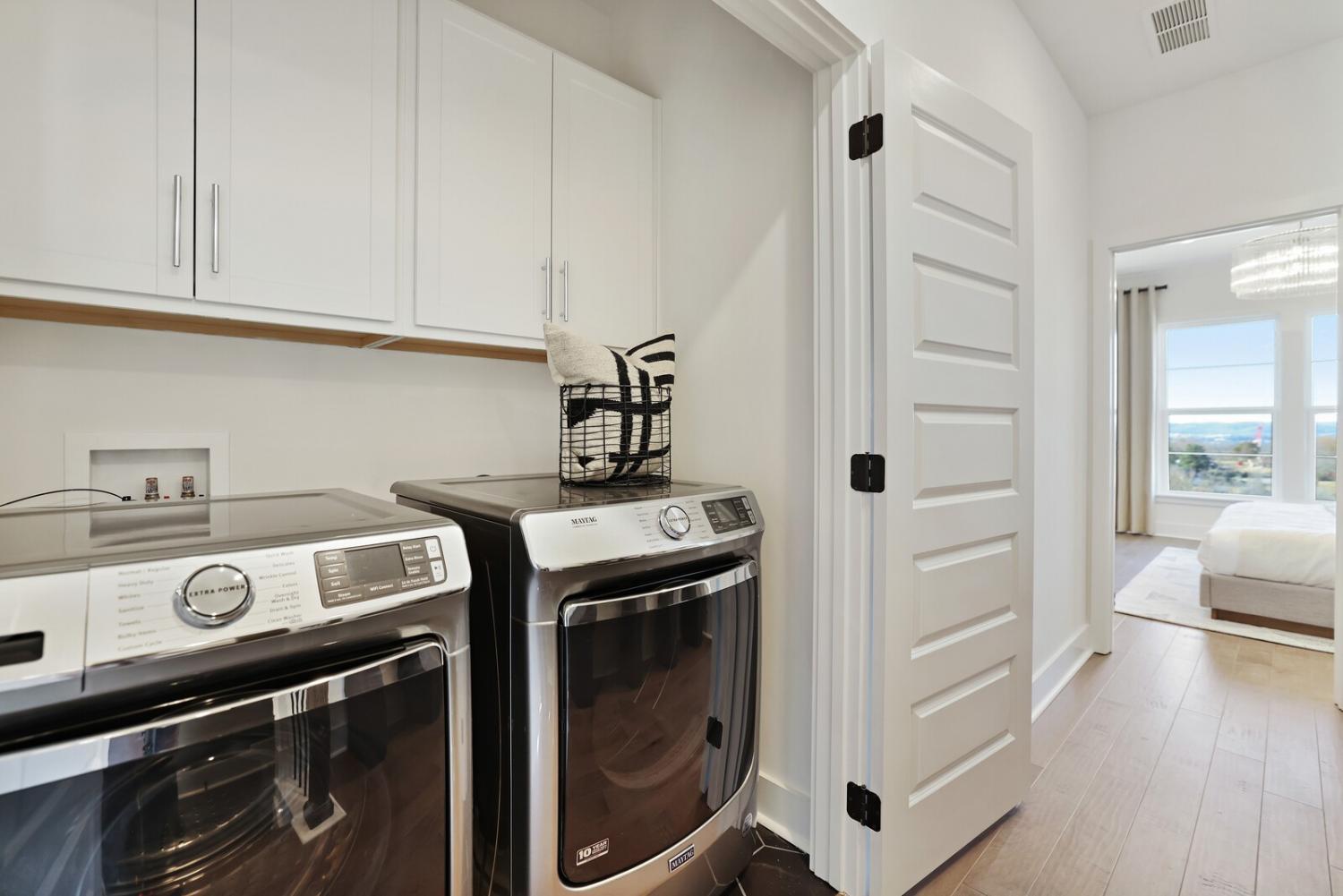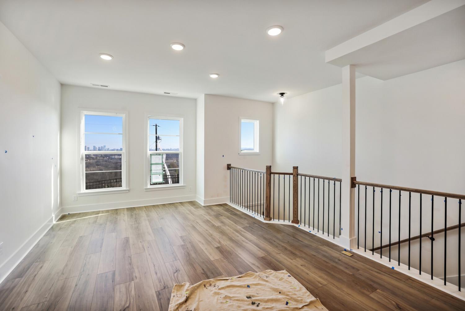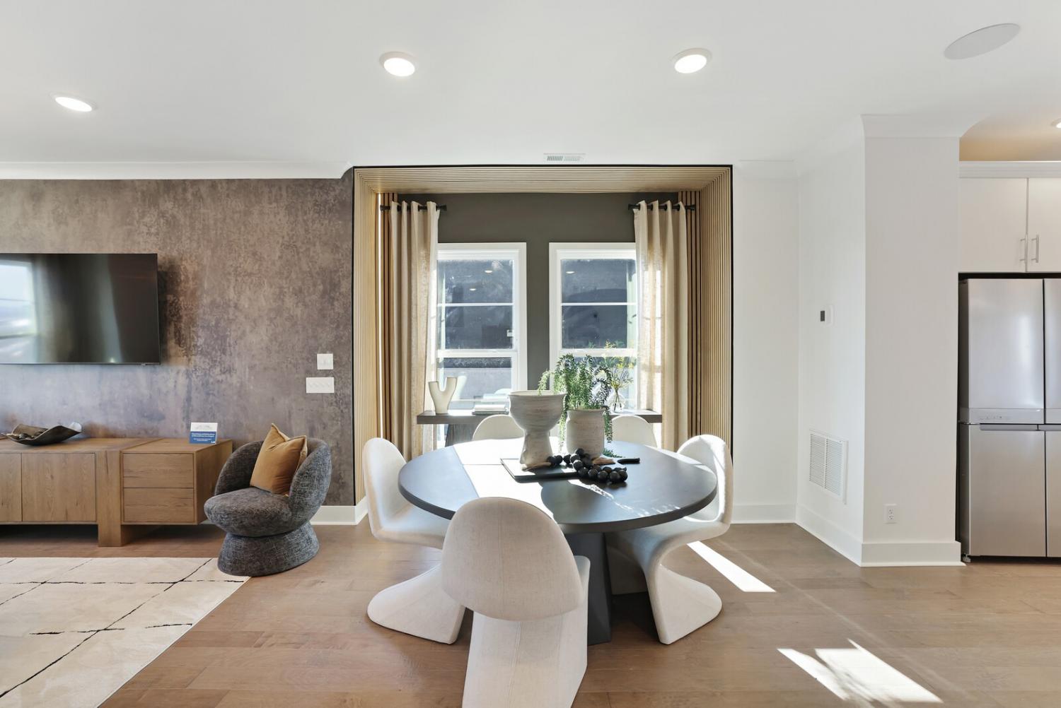 Welcome to this stunning Terravista floorplan, offering 2 bedrooms, 2.5 bathrooms, and 1,624 sq ft of beautifully designed modern living. Thoughtfully crafted with style and functionality in mind, this home features a tandem 2-car garage with extra storage, luxury vinyl plank flooring throughout, and modern matte black fixtures that elevate every room. Step into the open-concept living area, where natural light pours across the space and highlights the striking white-and-black palette with wood panel accents, a true modern designer moment. The eat-in dining area sits surrounded by windows, creating a bright and inviting spot for meals or morning coffee. The gourmet kitchen is a showstopper with quartz countertops, a spacious island, stainless steel appliances, stylish tile backsplash, and additional café cabinetry for extra storage. Upstairs, both bedrooms offer en-suite bathrooms, each featuring a frameless glass shower and contemporary finishes. The laundry is conveniently located on the same level as the bedrooms, making everyday living even easier. Enjoy unforgettable evenings and sweeping views of Music City from your private rooftop terrace, the perfect spot for relaxing or entertaining. Situated in a private location with accessible parking, this home also provides easy access to the community nature trail, ideal for morning walks or weekend strolls. With thoughtful upgrades, beautiful finishes, and a rooftop retreat, this home delivers elevated modern living just minutes from the best of Nashville. Up to 1% lender credit on the loan amount when buyer uses Seller's Preferred Lender.
