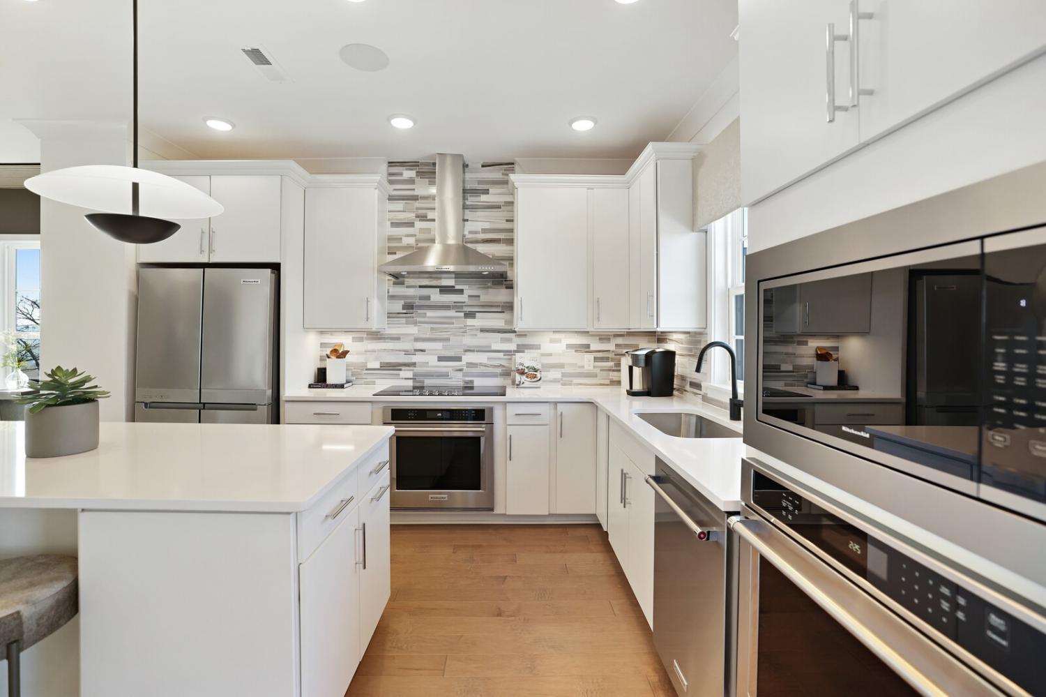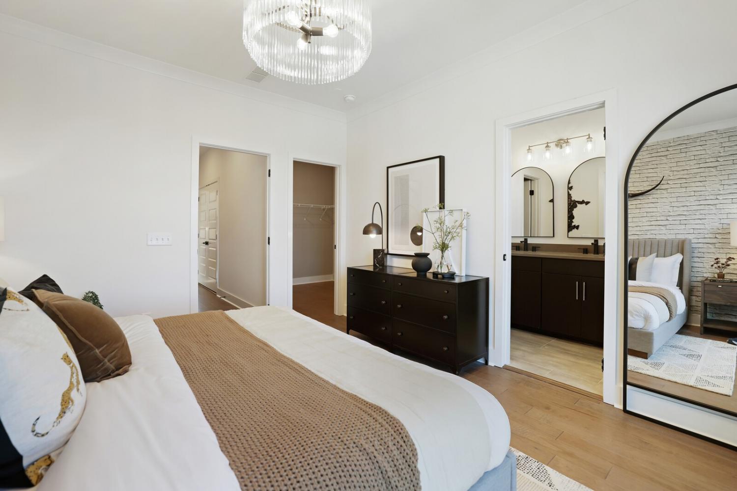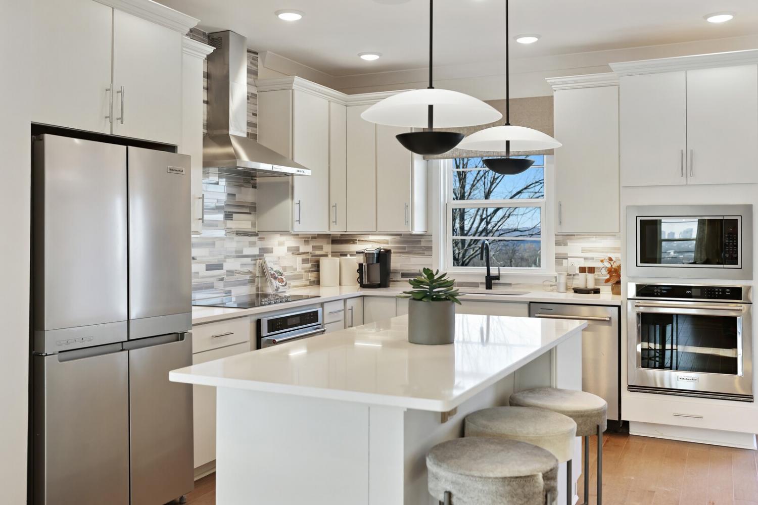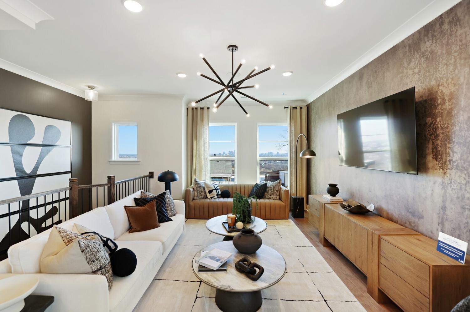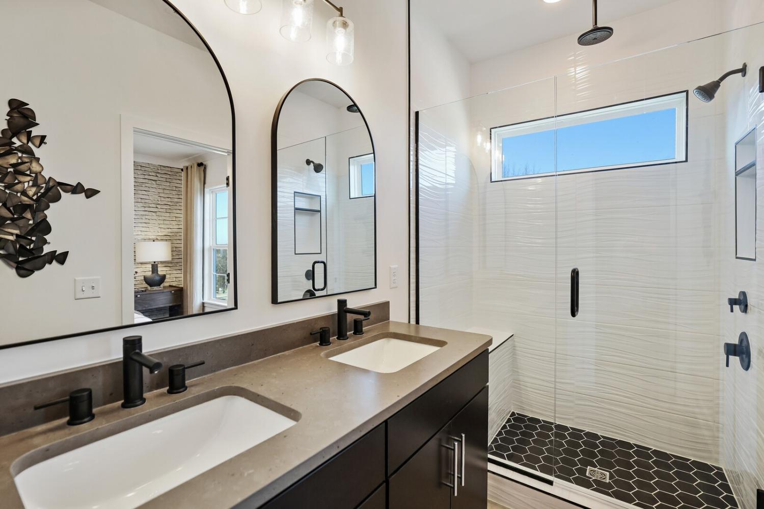 Welcome to this stunning Terravista floorplan, offering 2 bedrooms, 2.5 bathrooms, and 1,624 sq ft of beautifully designed modern living. Thoughtfully crafted with style and functionality in mind, this home features a tandem 2-car garage with extra storage, luxury vinyl plank flooring throughout, and modern matte black fixtures that elevate every room. Step into the open-concept living area, where natural light pours across the space and highlights the striking white-and-black palette with wood panel accents, a true modern designer moment. The eat-in dining area sits surrounded by windows, creating a bright and inviting spot for meals or morning coffee. The gourmet kitchen is a showstopper with quartz countertops, a spacious island, stainless steel appliances, stylish tile backsplash, and additional café cabinetry for extra storage. Upstairs, both bedrooms offer en-suite bathrooms, each featuring a frameless glass shower and contemporary finishes. The laundry is conveniently located on the same level as the bedrooms, making everyday living even easier. Enjoy unforgettable evenings and sweeping views of Music City from your private rooftop terrace, the perfect spot for relaxing or entertaining. Situated in a private location with accessible parking, this home also provides easy access to the community nature trail, ideal for morning walks or weekend strolls. With thoughtful upgrades, beautiful finishes, and a rooftop retreat, this home delivers elevated modern living just minutes from the best of Nashville. Up to 1% lender credit on the loan amount when buyer uses Seller's Preferred Lender.