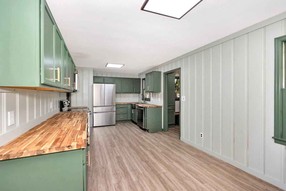 Beautifully remodeled 1893 sf full brick rancher with 4BR/2BA on almost an acre in Hazel Green. The living room and three bedrooms have wood flooring while the master bedroom and wet areas have LVP. Kitchen has been remodeled with new cabinetry and stainless steel appliances and sink. Cabinetry in pantry and laundry room coordinate with the eat- in kitchen. Large Master bedroom with ensuite 3/4 bath with updated tile shower. Attached carport, gravel driveway and detached 24x16 garage offer several options for parking. The large back yard has a heavy duty 6ft privacy fence. Convenient drive to Huntsville/Redstone!